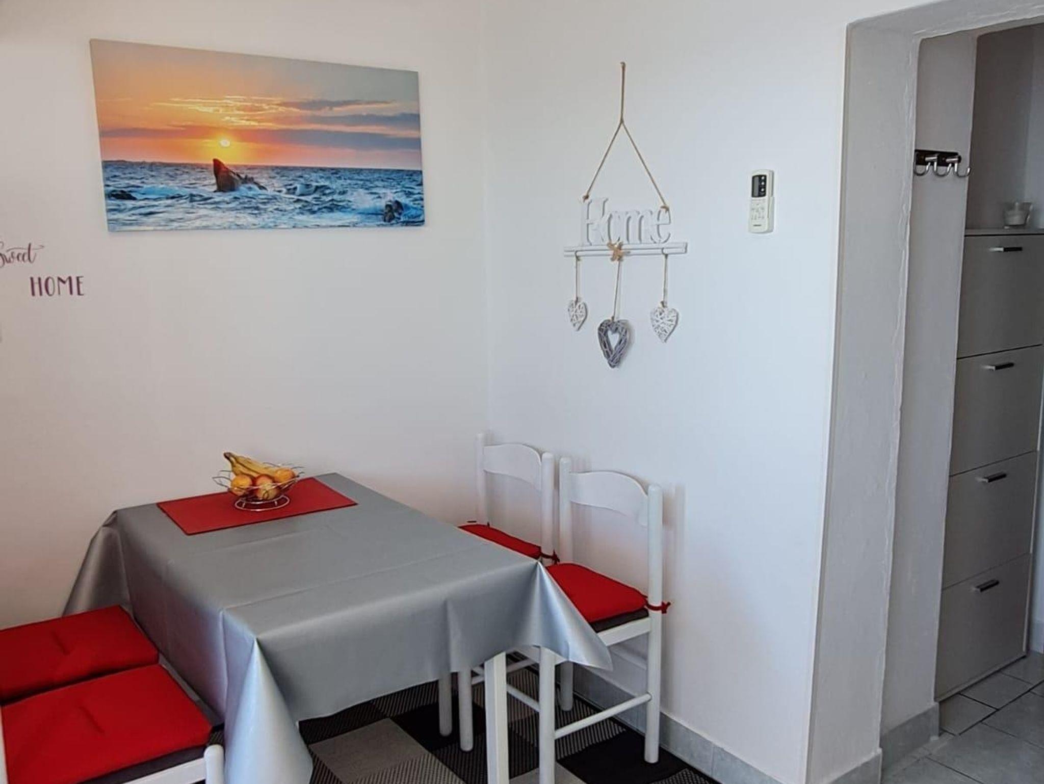 Ferienwohnung bietet Platz für 4 Gäste. Die Betten sind in Schlafzimmern, die es 2 gibt, innerhalb einer Gesamtfläche von 36m2, angeordnet. Die Gäste haben eine eigene Terrasse zur Verfügung, auf der sie in warmen Sommernächten genießen können. Das Apartment bietet Meerblick. Es ist erlaubt, Speisen auf dem Gemeinschafts-Grill vorzubereiten. In der Unterkunftseinheit besteht die Möglichkeit des Mitbringens von Haustieren gegen Aufpreis. IM PREIS INBEGRIFFEN: Kurtaxe, Endreinigung, Klimatisierung, Parkplatz, Internet, Wäschewaschen, Bootsanlegeplatz, tragbarer Grill. VERBINDLICHE ZUSÄTZLICHE KOSTEN: Aufzahlung für Kurzaufenthalte (prozentualer Zuschlag pro Nächtigungsanzahl: 30% - 1, 20% - 2, 10% - 3). UNVERBINDLICHE ZUSÄTZLICHE KOSTEN: Haustiere (5,00 € pro Nacht), Zusatzbett (5,00 € pro Nacht). Die Verfügbarkeit zusätzlicher Dienstleistungen in Ihrem reservierten Termin und die Preise derselben (falls nicht aufgeführt) müssen im Voraus überprüft werden. Zusätzliche Dienstleistungen die in der Zahlungsaufforderung nicht aufgeführt sind werden direkt beim Vermieter bezahlt, angenommen der Gast nutzt auch diese.