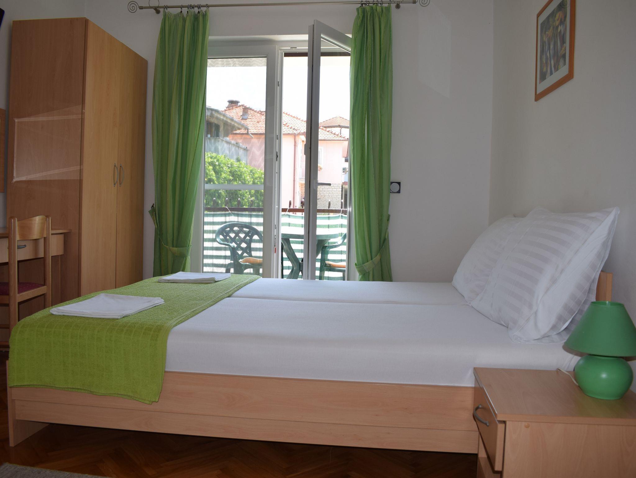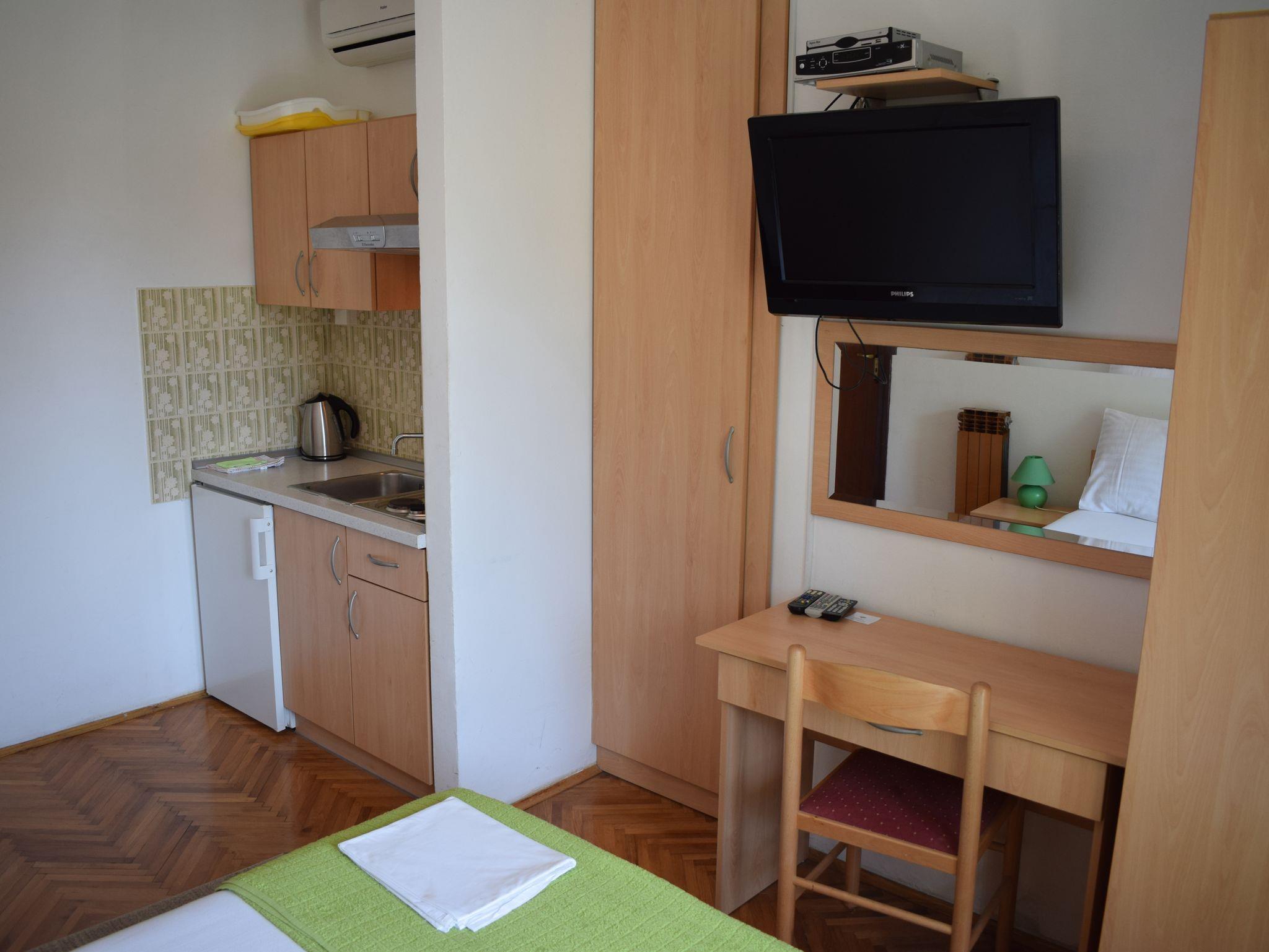 Studio bietet Platz für 2 Gäste. Die Betten sind in Schlafzimmern, die es 1 gibt, innerhalb einer Gesamtfläche von 16m2, angeordnet. Die Gäste haben einen eigenen Balkon zur Verfügung, auf der sie in warmen Sommernächten genießen können. Es ist erlaubt, Speisen auf dem Gemeinschafts-Grill vorzubereiten. IM PREIS INBEGRIFFEN: Kurtaxe, Endreinigung, Klimatisierung, Internet. VERBINDLICHE ZUSÄTZLICHE KOSTEN: Aufzahlung für Kurzaufenthalte (prozentualer Zuschlag pro Nächtigungsanzahl: 30% - 1, 20% - 2, 10% - 3). Die Verfügbarkeit zusätzlicher Dienstleistungen in Ihrem reservierten Termin und die Preise derselben (falls nicht aufgeführt) müssen im Voraus überprüft werden. Zusätzliche Dienstleistungen die in der Zahlungsaufforderung nicht aufgeführt sind werden direkt beim Vermieter bezahlt, angenommen der Gast nutzt auch diese. Ermäßigung auf den Grundpreis: Gratistag 14=13 (bei einem Aufenthalt von 14 Tagen oder mehr erhalten Sie einen Gratistag für den Aufenthalt bis 31.12.26).
