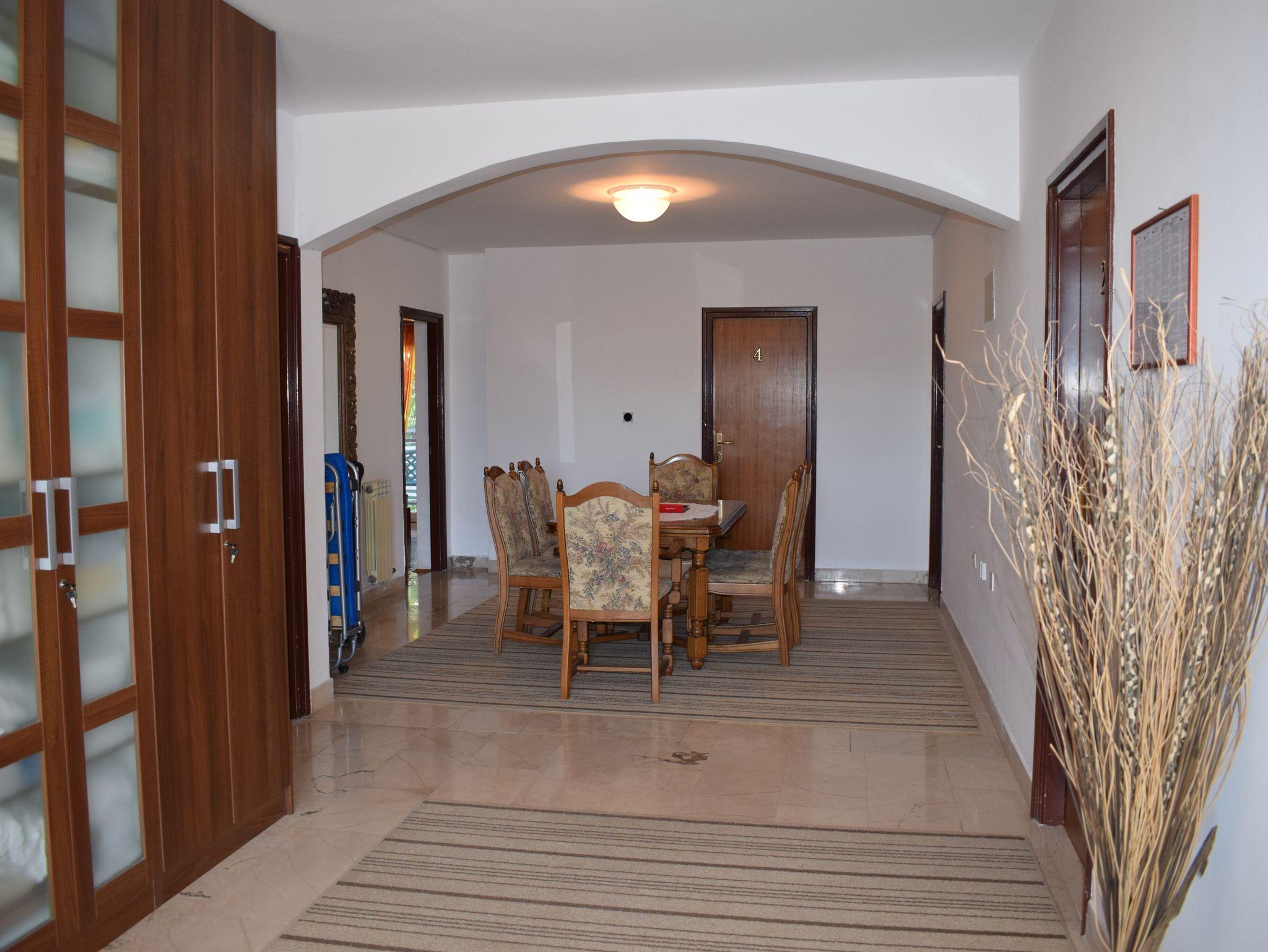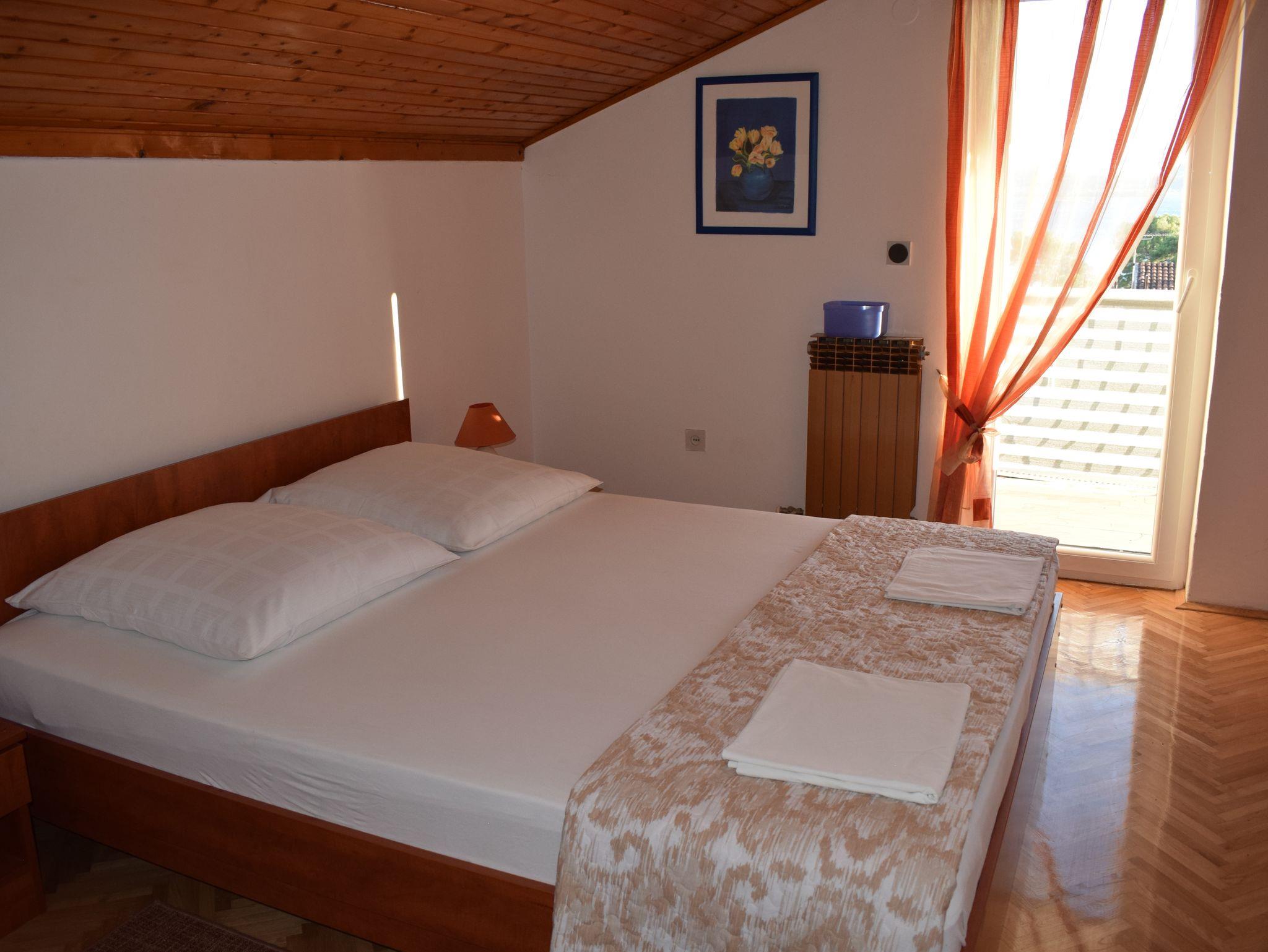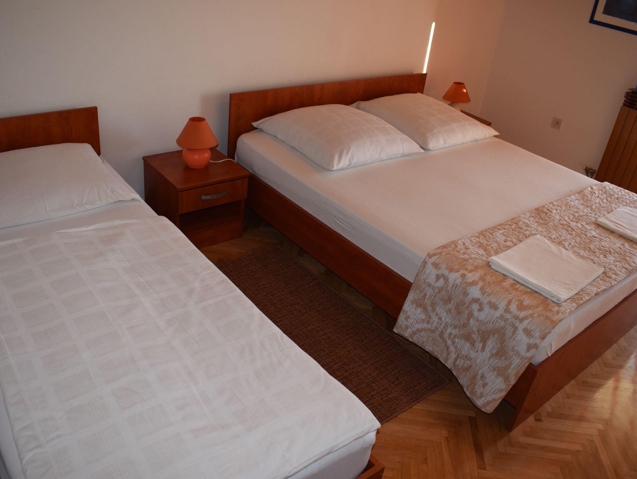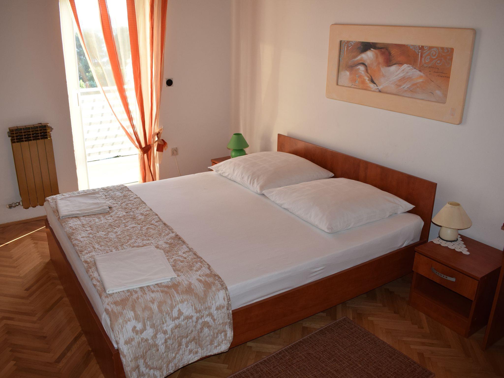 Studio bietet Platz für 5 Gäste. Die Betten sind in Schlafzimmern, die es 1 gibt, und in Wohnzimmer, innerhalb einer Gesamtfläche von 57m2, angeordnet. Die Gäste haben einen eigenen Balkon zur Verfügung, auf der sie in warmen Sommernächten genießen können. Das Studio-Apartment bietet Meerblick. Es ist erlaubt, Speisen auf dem Gemeinschafts-Grill vorzubereiten. IM PREIS INBEGRIFFEN: Kurtaxe, Endreinigung, Klimatisierung, Internet. VERBINDLICHE ZUSÄTZLICHE KOSTEN: Aufzahlung für Kurzaufenthalte (prozentualer Zuschlag pro Nächtigungsanzahl: 30% - 1, 20% - 2, 10% - 3). Die Verfügbarkeit zusätzlicher Dienstleistungen in Ihrem reservierten Termin und die Preise derselben (falls nicht aufgeführt) müssen im Voraus überprüft werden. Zusätzliche Dienstleistungen die in der Zahlungsaufforderung nicht aufgeführt sind werden direkt beim Vermieter bezahlt, angenommen der Gast nutzt auch diese. Ermäßigung auf den Grundpreis: Gratistag 14=13 (bei einem Aufenthalt von 14 Tagen oder mehr erhalten Sie einen Gratistag für den Aufenthalt bis 31.12.26).