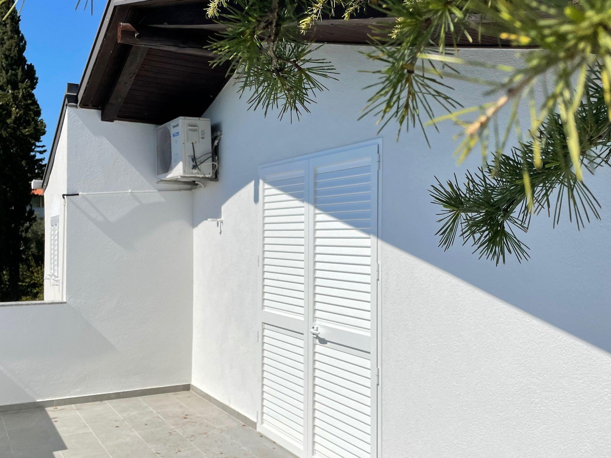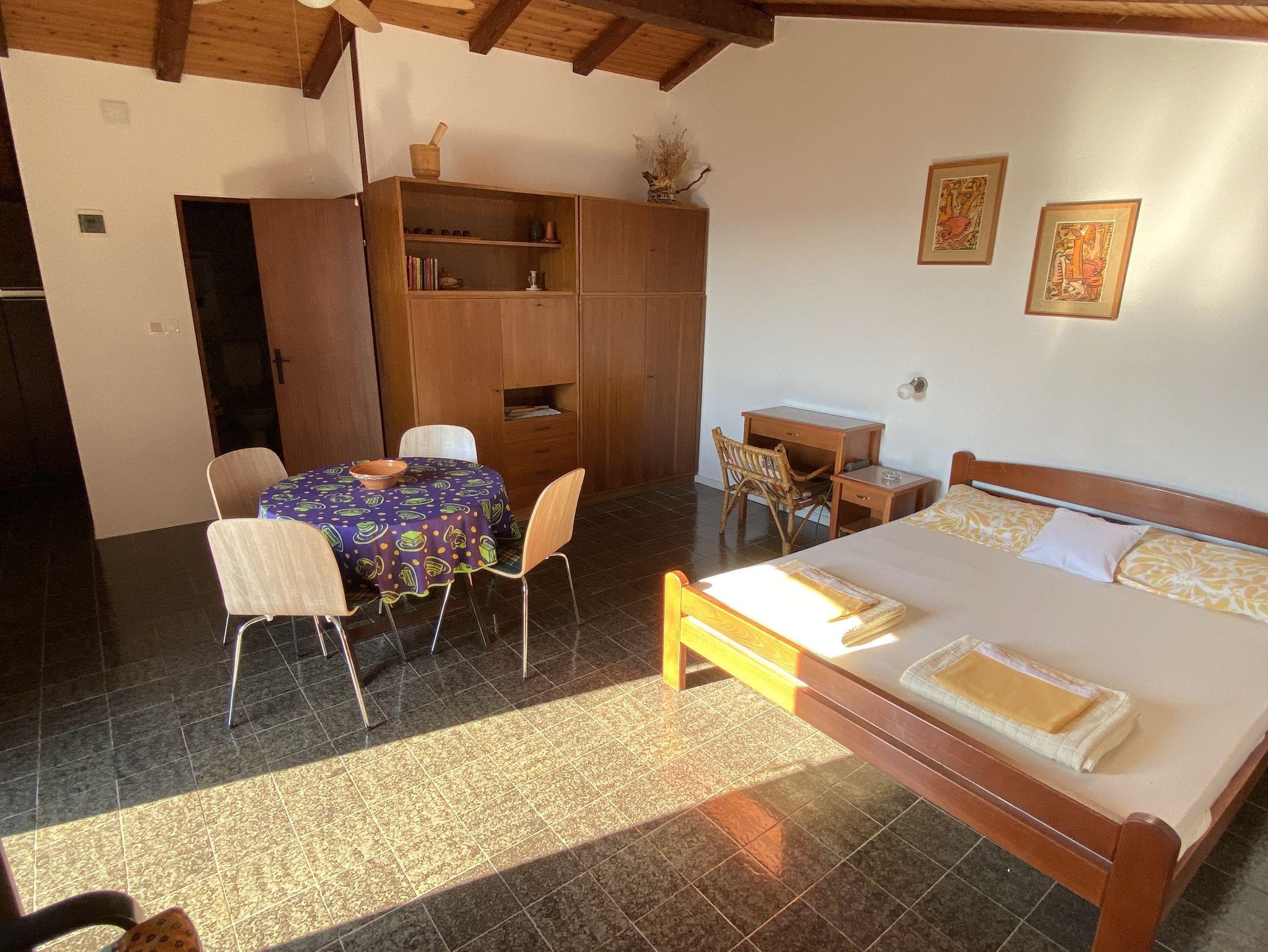 Ferienwohnung bietet Platz für 4 Gäste. Die Betten sind in Schlafzimmern, die es 1 gibt, und in Wohnzimmer, innerhalb einer Gesamtfläche von 38m2, angeordnet. Die Gäste haben eine eigene Terrasse zur Verfügung, auf der sie in warmen Sommernächten genießen können. Das Apartment bietet Meerblick. Es ist erlaubt, Speisen auf dem Gemeinschafts-Grill vorzubereiten. IM PREIS INBEGRIFFEN: Kurtaxe, Endreinigung, Klimatisierung, Parkplatz, Internet, Bootsanlegeplatz, Bügeleisen, Föhn, Sonnenschirm, Liegestühle. VERBINDLICHE ZUSÄTZLICHE KOSTEN: Aufzahlung für Kurzaufenthalte (prozentualer Zuschlag pro Nächtigungsanzahl: 30% - 1, 20% - 2, 10% - 3). Die Verfügbarkeit zusätzlicher Dienstleistungen in Ihrem reservierten Termin und die Preise derselben (falls nicht aufgeführt) müssen im Voraus überprüft werden. Zusätzliche Dienstleistungen die in der Zahlungsaufforderung nicht aufgeführt sind werden direkt beim Vermieter bezahlt, angenommen der Gast nutzt auch diese.
