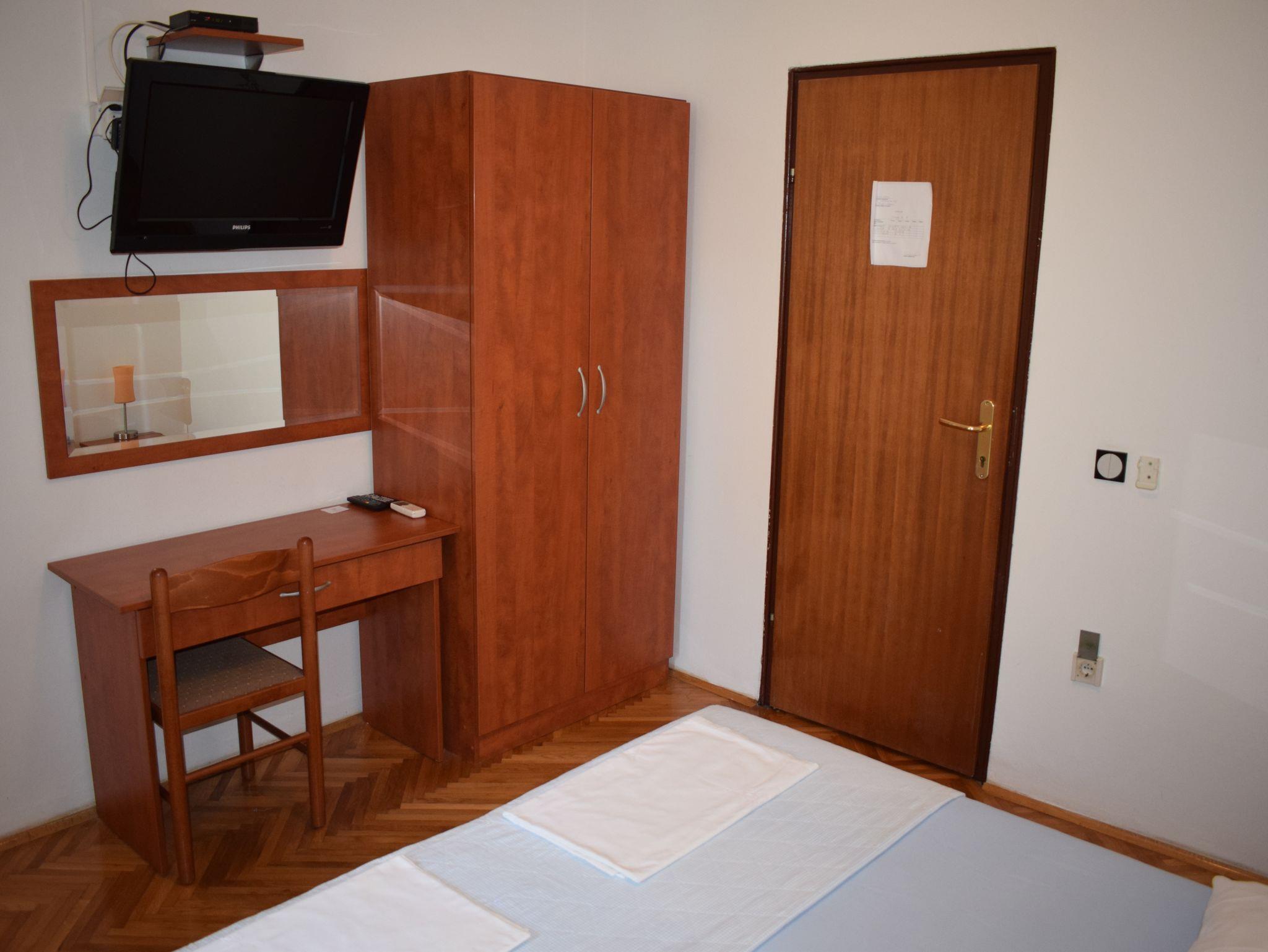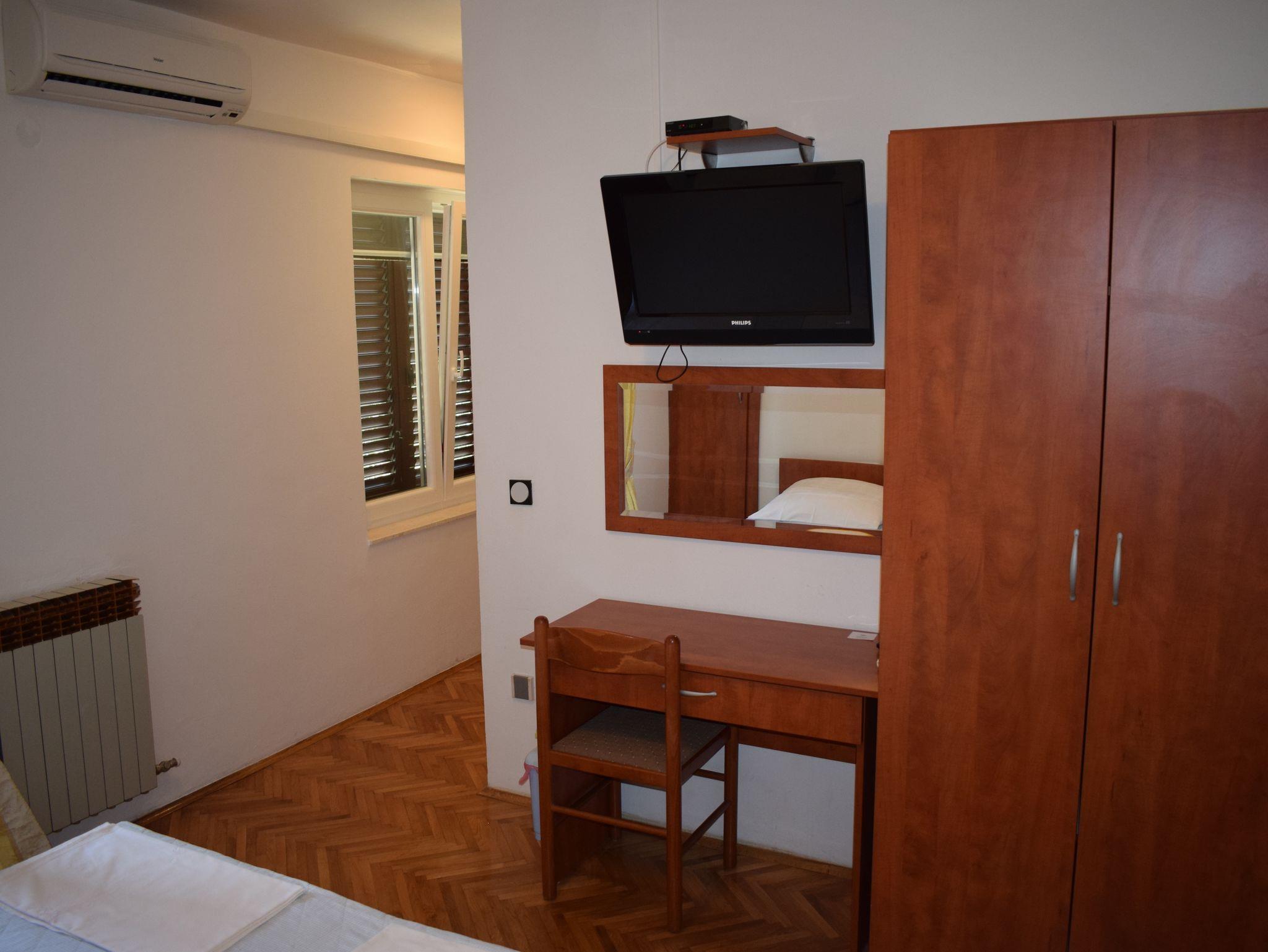 Studio bietet Platz für 2 Gäste. Die Betten sind in Schlafzimmern, die es 1 gibt, innerhalb einer Gesamtfläche von 18m2, angeordnet. Die Gäste haben einen eigenen Balkon zur Verfügung, auf der sie in warmen Sommernächten genießen können. Es ist erlaubt, Speisen auf dem Gemeinschafts-Grill vorzubereiten. IM PREIS INBEGRIFFEN: Kurtaxe, Endreinigung, Klimatisierung, Internet. VERBINDLICHE ZUSÄTZLICHE KOSTEN: Aufzahlung für Kurzaufenthalte (prozentualer Zuschlag pro Nächtigungsanzahl: 30% - 1, 20% - 2, 10% - 3). Die Verfügbarkeit zusätzlicher Dienstleistungen in Ihrem reservierten Termin und die Preise derselben (falls nicht aufgeführt) müssen im Voraus überprüft werden. Zusätzliche Dienstleistungen die in der Zahlungsaufforderung nicht aufgeführt sind werden direkt beim Vermieter bezahlt, angenommen der Gast nutzt auch diese. Ermäßigung auf den Grundpreis: Gratistag 14=13 (bei einem Aufenthalt von 14 Tagen oder mehr erhalten Sie einen Gratistag für den Aufenthalt bis 31.12.26).