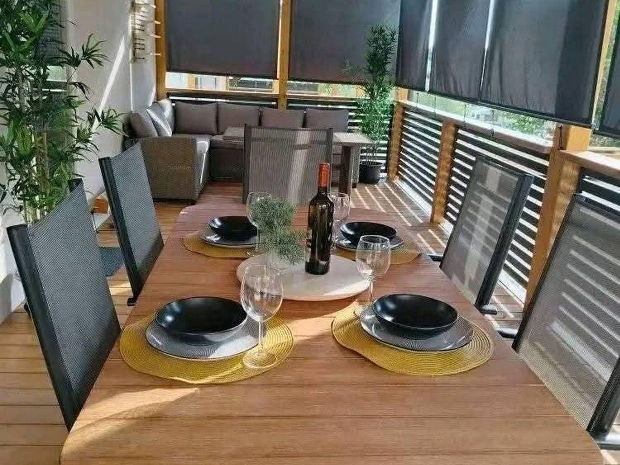 Ferienwohnung bietet Platz für 7 Gäste. Die Betten sind in Schlafzimmern, die es 2 gibt, und in Wohnzimmer, innerhalb einer Gesamtfläche von 31m2, angeordnet. Die Gäste haben eine eigene Terrasse zur Verfügung, auf der sie in warmen Sommernächten genießen können. Für vollen Genuss und Entspannung gibt es einen privaten Grill für Gäste dieser Unterkunft. In der Unterkunftseinheit besteht die Möglichkeit des Mitbringens von Haustieren gegen Aufpreis. IM PREIS INBEGRIFFEN: Endreinigung, Klimatisierung, Parkplatz, Internet, Bügeleisen, Bügelbrett, Föhn. VERBINDLICHE ZUSÄTZLICHE KOSTEN: Kurtaxe (Erwachsene 0,93 € - 1,50 € Nacht/Person, Kinderermäßigung 12 - 17 Jahre). UNVERBINDLICHE ZUSÄTZLICHE KOSTEN: Haustiere (5,00 € pro Nacht). Die Verfügbarkeit zusätzlicher Dienstleistungen in Ihrem reservierten Termin und die Preise derselben (falls nicht aufgeführt) müssen im Voraus überprüft werden. Zusätzliche Dienstleistungen die in der Zahlungsaufforderung nicht aufgeführt sind werden direkt beim Vermieter bezahlt, angenommen der Gast nutzt auch diese. Ermäßigung auf den Grundpreis: Gratistag 14=13 (bei einem Aufenthalt von 14 Tagen oder mehr erhalten Sie einen Gratistag für den Aufenthalt bis 31.12.26).