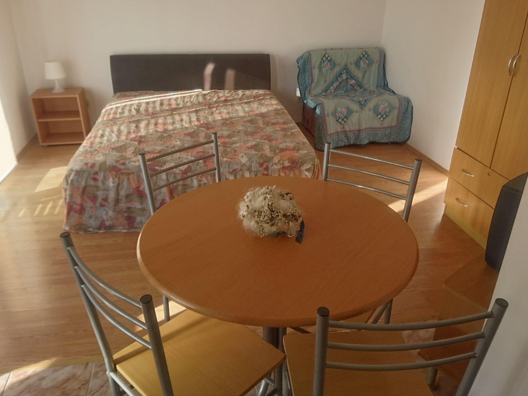Studio bietet Platz für 2 Gäste. Die Betten sind in Schlafzimmern, die es 1 gibt, innerhalb einer Gesamtfläche von 23m2, angeordnet. Die Gäste haben eine eigene Terrasse zur Verfügung, auf der sie in warmen Sommernächten genießen können. Es ist erlaubt, Speisen auf dem Gemeinschafts-Grill vorzubereiten. IM PREIS INBEGRIFFEN: Kurtaxe, Endreinigung, Klimatisierung, Parkplatz, Internet, Kinderbett, 1 Bett für Kinder (im Preis enthalten). VERBINDLICHE ZUSÄTZLICHE KOSTEN: Aufzahlung für Kurzaufenthalte (prozentualer Zuschlag pro Nächtigungsanzahl: 30% - 1, 20% - 2, 10% - 3). Die Verfügbarkeit zusätzlicher Dienstleistungen in Ihrem reservierten Termin und die Preise derselben (falls nicht aufgeführt) müssen im Voraus überprüft werden. Zusätzliche Dienstleistungen die in der Zahlungsaufforderung nicht aufgeführt sind werden direkt beim Vermieter bezahlt, angenommen der Gast nutzt auch diese.