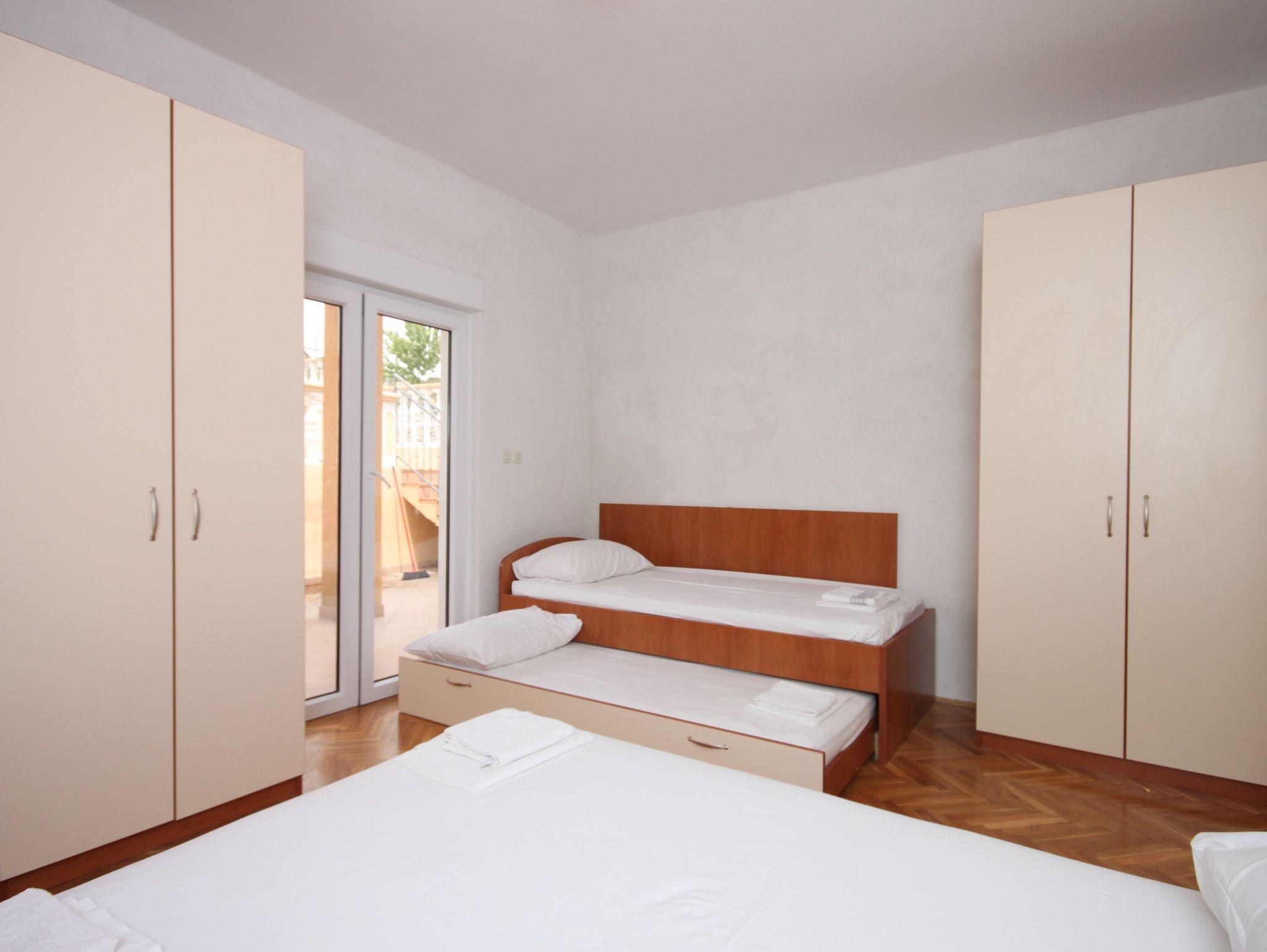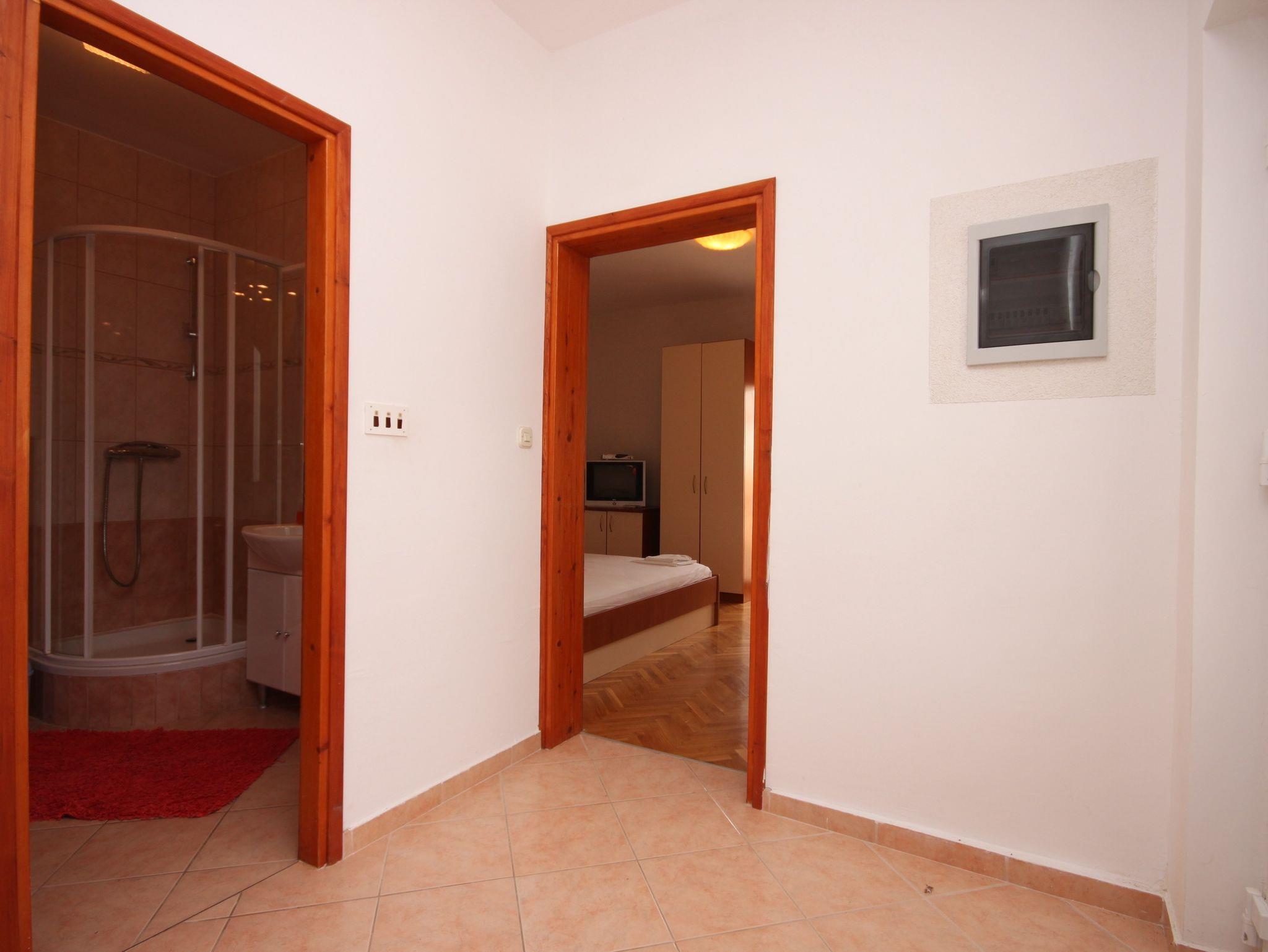 Ferienwohnung bietet Platz für 4 Gäste. Die Betten sind in Schlafzimmern, die es 1 gibt, innerhalb einer Gesamtfläche von 32m2, angeordnet. Die Gäste haben eine eigene Terrasse zur Verfügung, auf der sie in warmen Sommernächten genießen können. Es ist erlaubt, Speisen auf dem Gemeinschafts-Grill vorzubereiten. In der Unterkunftseinheit besteht die Möglichkeit des Mitbringens von Haustieren gegen Aufpreis. IM PREIS INBEGRIFFEN: Kurtaxe, Endreinigung, Klimatisierung, Parkplatz, Internet, Kinderbett, tragbarer Grill. VERBINDLICHE ZUSÄTZLICHE KOSTEN: Aufzahlung für Kurzaufenthalte (prozentualer Zuschlag pro Nächtigungsanzahl: 30% - 1, 20% - 2, 10% - 3). UNVERBINDLICHE ZUSÄTZLICHE KOSTEN: Bootsanlegeplatz (10,00 € pro Nacht), Haustiere (5,00 € pro Nacht), Zusatzbett (5,00 € pro Nacht). Die Verfügbarkeit zusätzlicher Dienstleistungen in Ihrem reservierten Termin und die Preise derselben (falls nicht aufgeführt) müssen im Voraus überprüft werden. Zusätzliche Dienstleistungen die in der Zahlungsaufforderung nicht aufgeführt sind werden direkt beim Vermieter bezahlt, angenommen der Gast nutzt auch diese.