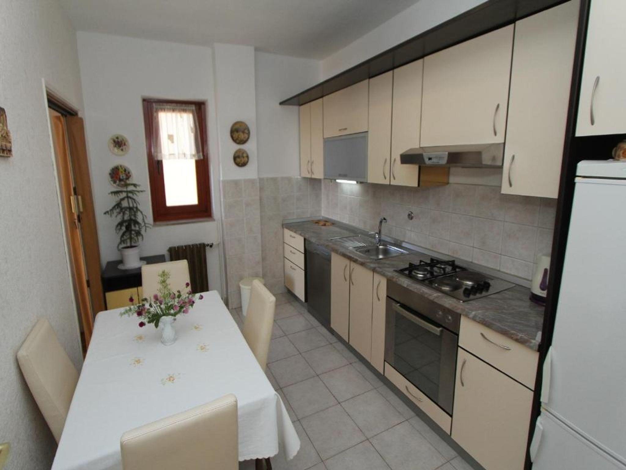 Ferienwohnung bietet Platz für 5 Gäste. Die Betten sind in Schlafzimmern, die es 2 gibt, innerhalb einer Gesamtfläche von 56m2, angeordnet. Die Gäste haben einen eigenen Balkon zur Verfügung, auf der sie in warmen Sommernächten genießen können. Das Apartment bietet Meerblick. Es ist erlaubt, Speisen auf dem Gemeinschafts-Grill vorzubereiten. In der Unterkunftseinheit besteht die Möglichkeit des Mitbringens von Haustieren gegen Aufpreis. IM PREIS INBEGRIFFEN: Kurtaxe, Endreinigung, Klimatisierung, Parkplatz, Internet. VERBINDLICHE ZUSÄTZLICHE KOSTEN: Aufzahlung für Kurzaufenthalte (prozentualer Zuschlag pro Nächtigungsanzahl: 30% - 1, 20% - 2, 10% - 3). UNVERBINDLICHE ZUSÄTZLICHE KOSTEN: Haustiere (10,00 € pro Nacht). Die Verfügbarkeit zusätzlicher Dienstleistungen in Ihrem reservierten Termin und die Preise derselben (falls nicht aufgeführt) müssen im Voraus überprüft werden. Zusätzliche Dienstleistungen die in der Zahlungsaufforderung nicht aufgeführt sind werden direkt beim Vermieter bezahlt, angenommen der Gast nutzt auch diese.