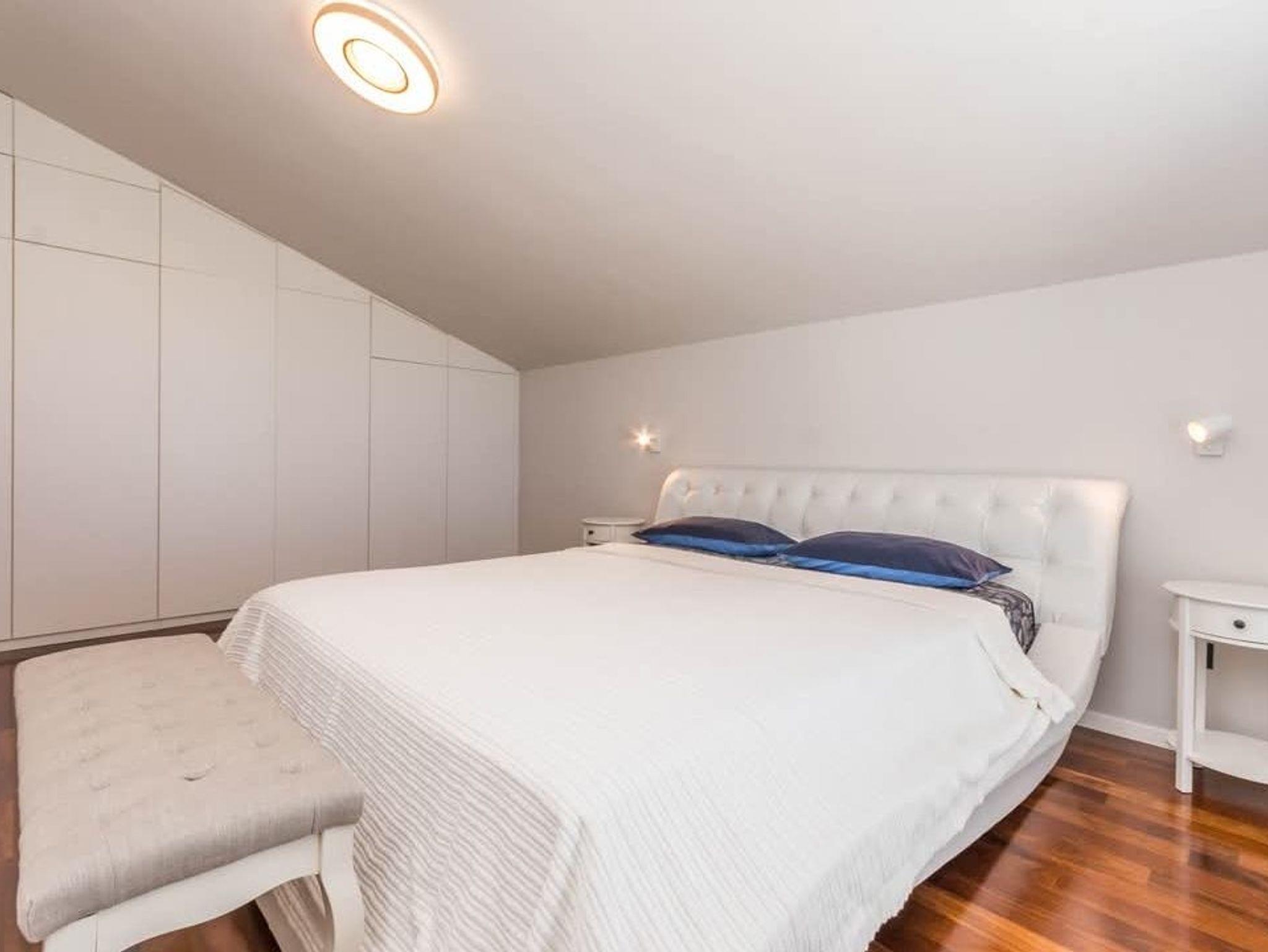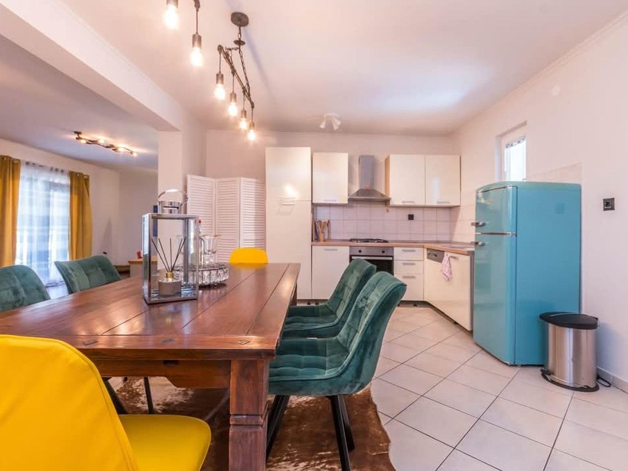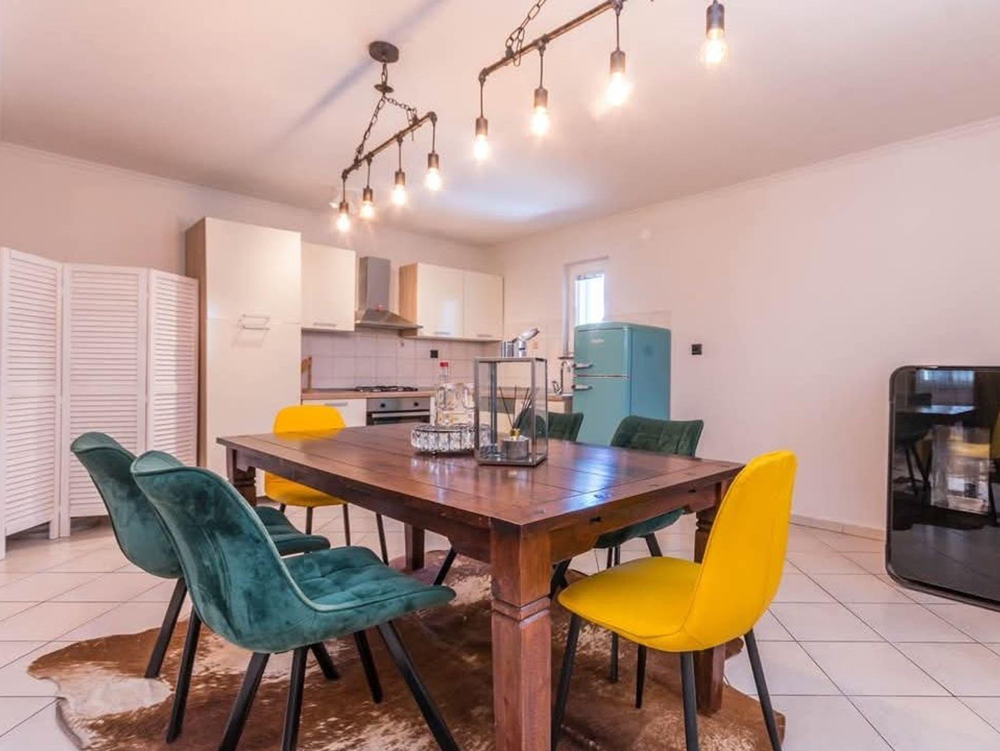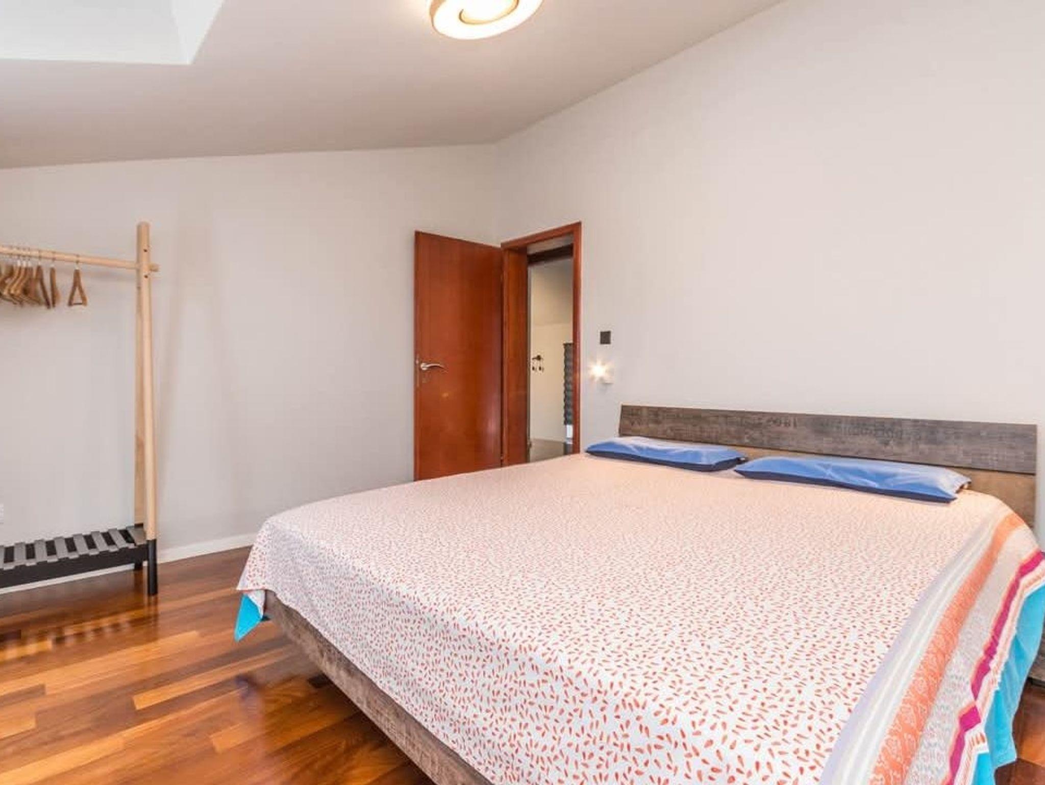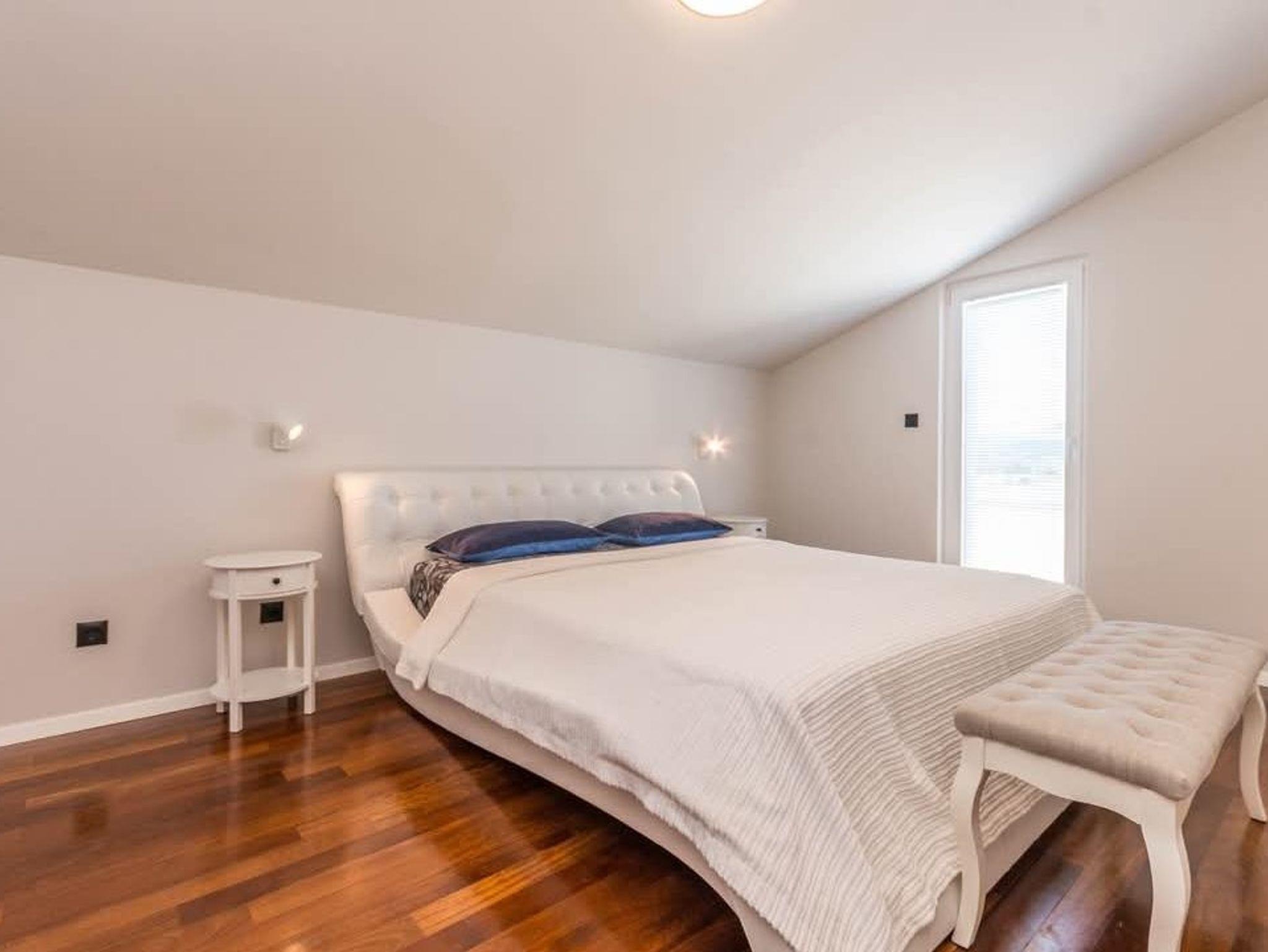 Haus bietet Platz für 7 Gäste. Die Betten sind in Schlafzimmern, die es 3 gibt, und in Wohnzimmer, innerhalb einer Gesamtfläche von 135m2, angeordnet. Die Gäste haben eine eigene Terrasse zur Verfügung, auf der sie in warmen Sommernächten genießen können. Für vollen Genuss und Entspannung gibt es einen privaten Grill für Gäste dieser Unterkunft. Während ihres Aufenthalts können Gäste das gemeinsam zur Nutzung stehende Schwimmbad benutzen. In der Unterkunftseinheit besteht die Möglichkeit des Mitbringens von Haustieren, und die Dienstleistung ist im Preis der Unterkunft enthalten. IM PREIS INBEGRIFFEN: Kurtaxe, Endreinigung, Klimatisierung, Pool, Parkplatz, Internet, Haustiere, Kinderbett, Bügeleisen, Bügelbrett, Föhn, Sonnenschirm, Liegestühle. Die Verfügbarkeit zusätzlicher Dienstleistungen in Ihrem reservierten Termin und die Preise derselben (falls nicht aufgeführt) müssen im Voraus überprüft werden. Zusätzliche Dienstleistungen die in der Zahlungsaufforderung nicht aufgeführt sind werden direkt beim Vermieter bezahlt, angenommen der Gast nutzt auch diese. Ermäßigung auf den Grundpreis: Gratistag 28=25 (bei einem Aufenthalt von 28 oder mehr Tagen erhalten Sie 3 kostenlose Tage für den Aufenthalt bis 31.12.26).