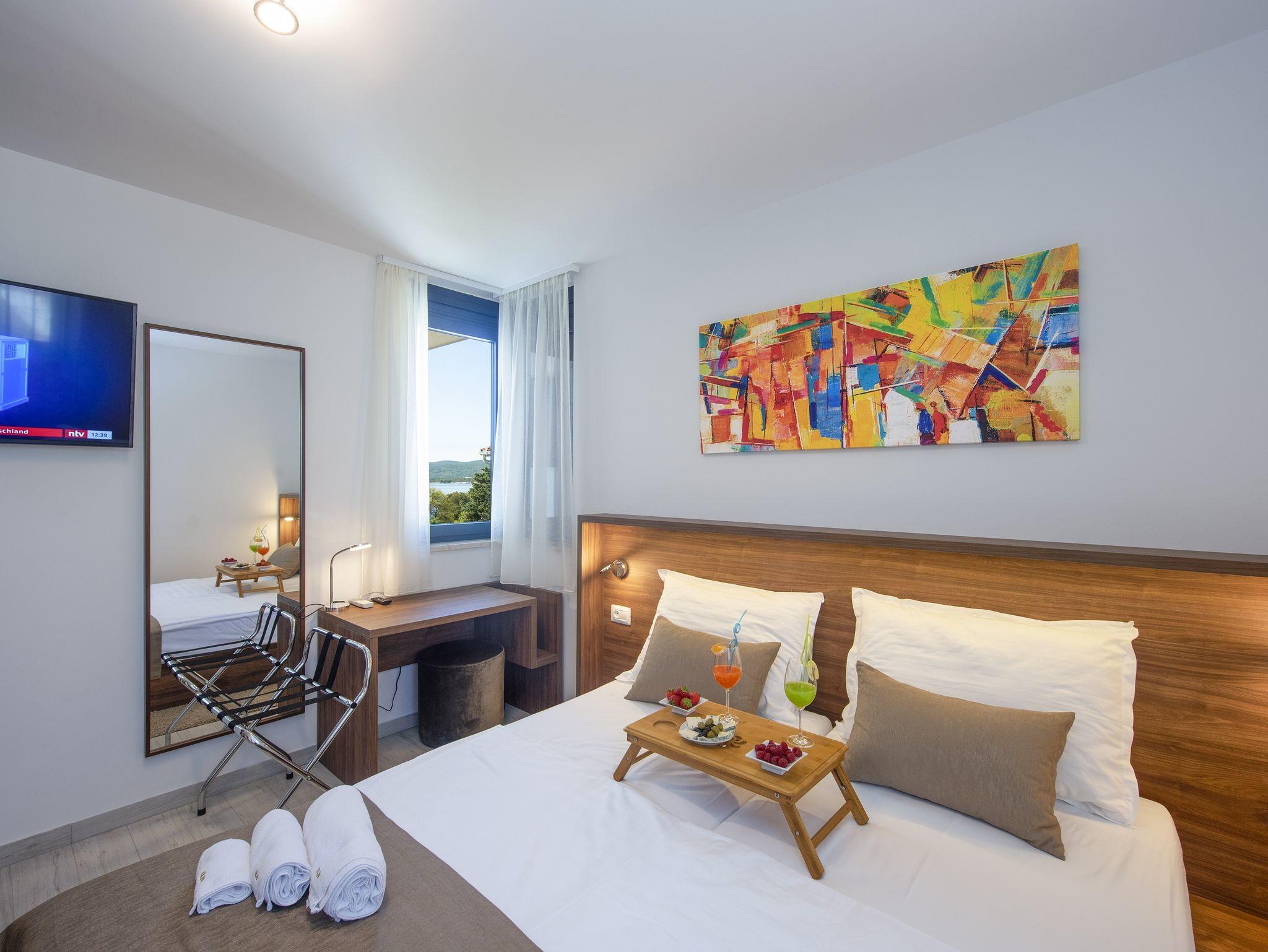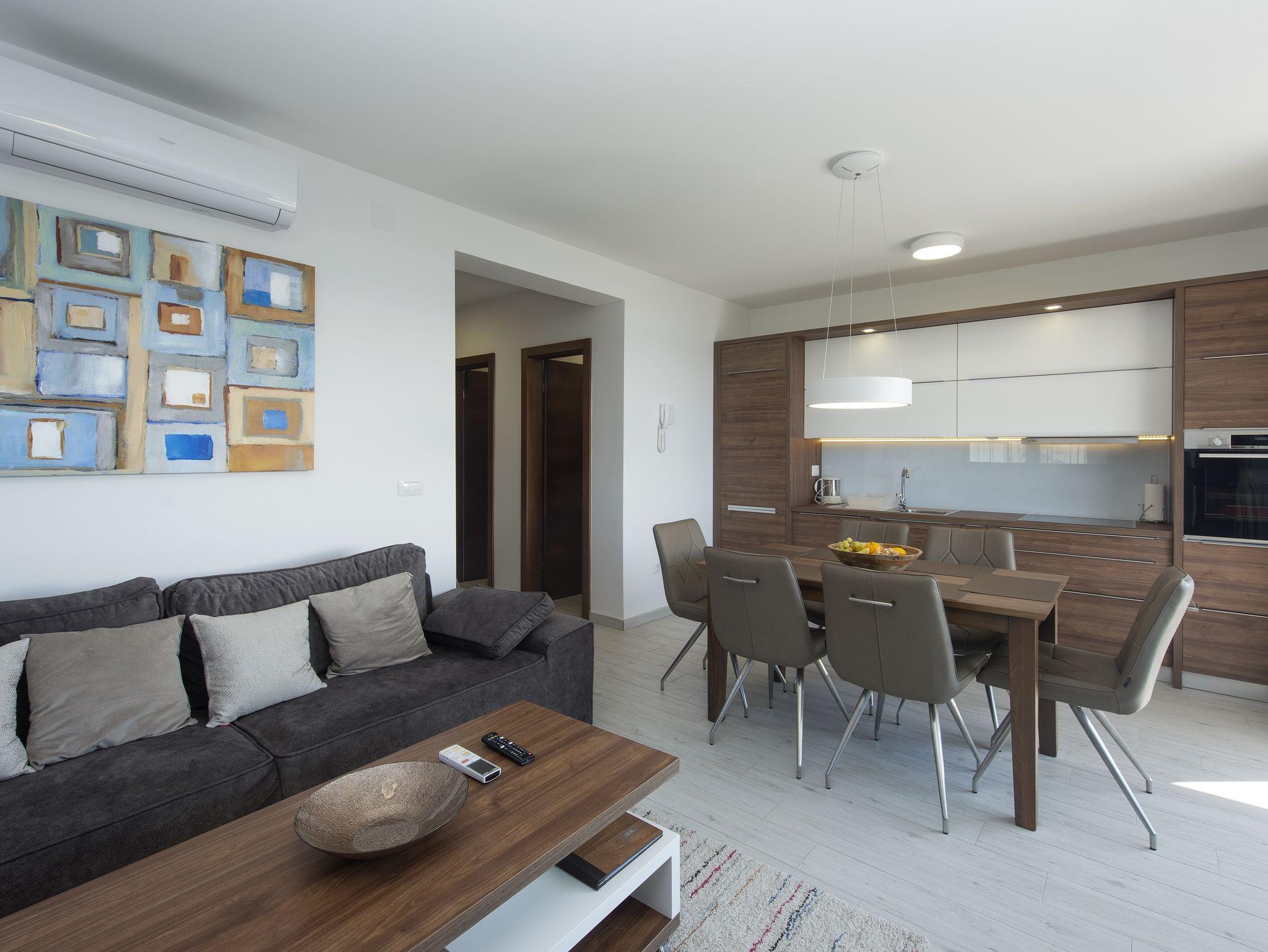 Ferienwohnung bietet Platz für 6 Gäste. Die Betten sind in Schlafzimmern, die es 2 gibt, und in Wohnzimmer, innerhalb einer Gesamtfläche von 73m2, angeordnet. Die Gäste haben eine eigene Terrasse zur Verfügung, auf der sie in warmen Sommernächten genießen können. Das Apartment bietet Meerblick. Es ist erlaubt, Speisen auf dem Gemeinschafts-Grill vorzubereiten. Während ihres Aufenthalts können Gäste das gemeinsam zur Nutzung stehende Schwimmbad benutzen. IM PREIS INBEGRIFFEN: Kurtaxe, Endreinigung, Klimatisierung, Pool, Parkplatz, Internet, Kinderbett, Bügeleisen, Bügelbrett, Föhn. UNVERBINDLICHE ZUSÄTZLICHE KOSTEN: Boot (50,00 € pro Nacht), Bootsanlegeplatz (20,00 € pro Nacht), Fahrrad (15,00 € täglich (pro Stück)). Die Verfügbarkeit zusätzlicher Dienstleistungen in Ihrem reservierten Termin und die Preise derselben (falls nicht aufgeführt) müssen im Voraus überprüft werden. Zusätzliche Dienstleistungen die in der Zahlungsaufforderung nicht aufgeführt sind werden direkt beim Vermieter bezahlt, angenommen der Gast nutzt auch diese.