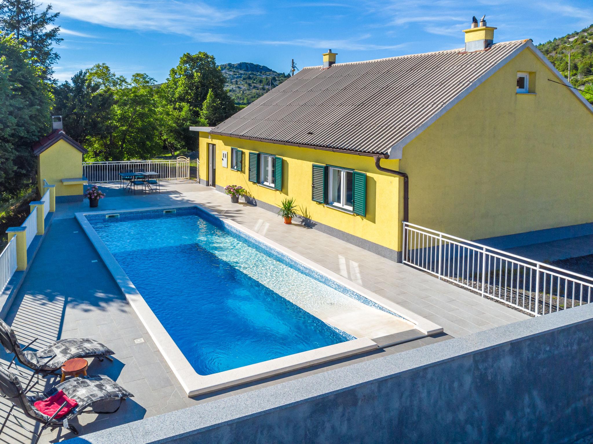 Single-family house "Saulja". In the hamlet Oltari 14 km from the centre of Sveti Juraj, in a quiet, sunny position, 14 km from the sea, in the countryside. Private: property 960 m2, swimming pool angular (10 x 4 m, depth 80 - 140 cm, seasonal availability: 01.May. - 01.Oct.) with internal staircase and salt-electrolysis pool-cleaning system. Outdoor shower, terrace (45 m2), garden furniture, barbecue, pool maintenance by the owner/gardener. In the house: internet access, washing machine. Parking (for 3 cars) at the house on the premises. Shop 10 km, restaurant 10 km, bus stop 500 m, pebble beach 14 km, concrete beach 14 km. Nearby attractions: national parki Sjeverni Velebit 18 km. Swimming pool with hydromassage. Swimming pool with handicap access.