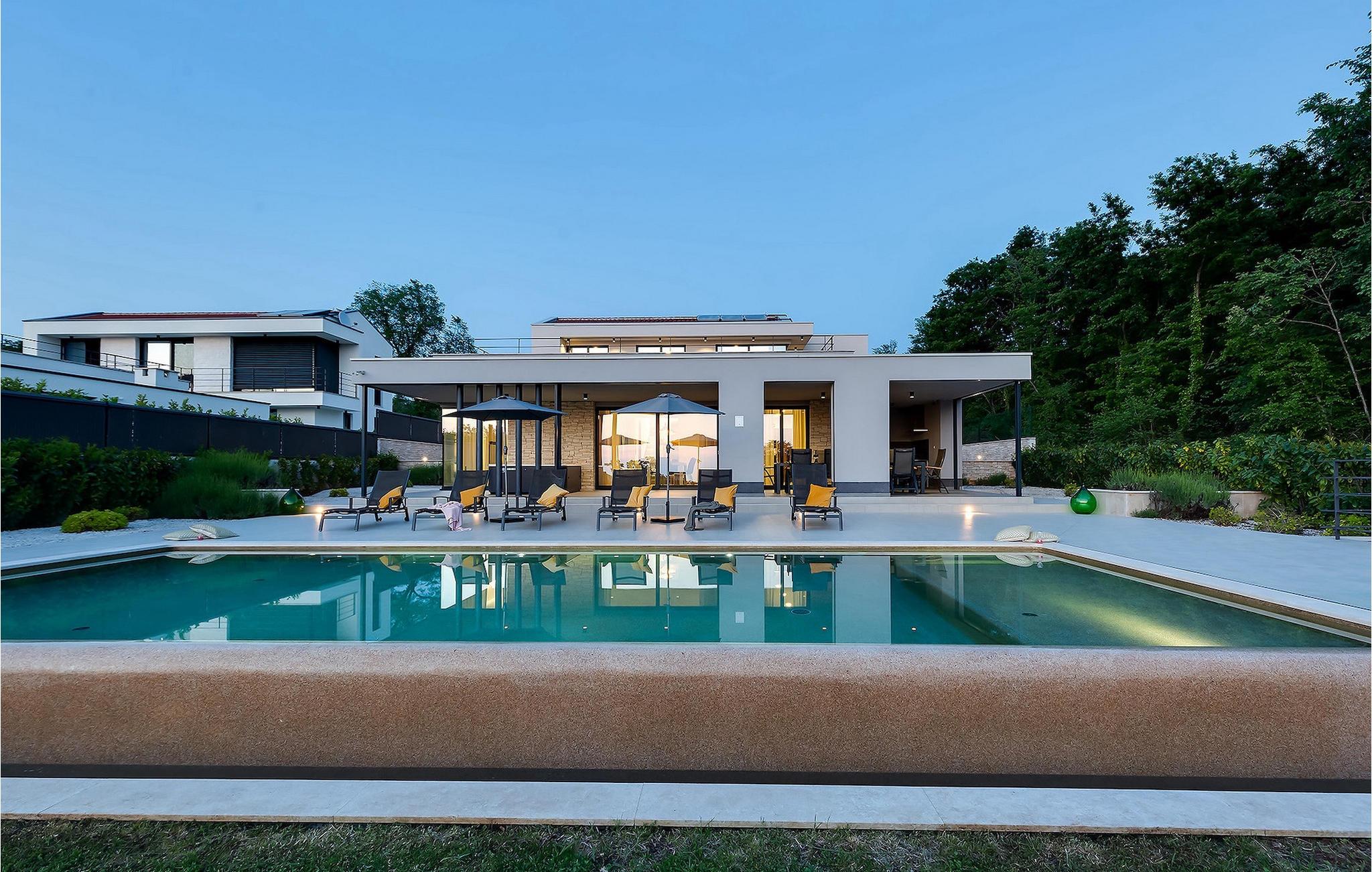 Drømmer du om en afslappende ferie, omgivet af smukt moderne design, med udsigt til natur og grønt og morgenmad på terrassen ved den private pool, så har vi den perfekte villa til dig. Villa Damian tilbyder komfortabel indkvartering for i alt 12 personer i smukke omgivelser i Medvidici. Villaen er opdelt i første sal og anden sal. På første sal er der et åbent rum med stue, køkken og spiseplads, to soveværelser med eget badeværelse, skab og terrasse samt endnu et soveværelse, der også har udgang til terrassen. Fra første sal er der adgang til den overdækkede udendørs terrasse, som har udekøkken, spiseplads og udendørs jacuzzi. På anden sal er der tre soveværelser med eget badeværelse, et skab og en udendørs terrasse på 60 m2, hvor man kan solbade på liggestole. Forfrisk dig selv i den private pool med udsigt over de naturlige omgivelser. Nyd jacuzzien med en forfriskende drink. Hvis du planlægger en perfekt ferie i Kroatien, bør du booke Villa Damian til uforglemmelige øjeblikke med familie og venner. Et idyllisk landskab, omgivet af grønt og stilhed, det er sådan, vi vil beskrive placeringen af denne moderne Villa Damian. I den lille landsby Medvidici ikke langt fra Porec hersker en fredelig og afslappet atmosfære. Der er smukke strande i Porec, 13 km fra villaen, og der er også strande i Funtana, Vrsar og Rovinj. Hvis du gerne vil spise middag med familie og venner og elsker fisk og skaldyr, anbefaler vi dig at besøge landsbyen Rakovci, 7 km fra villaen. Hvis du foretrækker at lave mad komfortabelt i din villa, kan du få dine dagligvarer i supermarkedet i Sv. Lovrec, som ligger kun 2 km fra villaen. Mærk den fortryllende charme i Istrien-regionen og book Villa Damian.