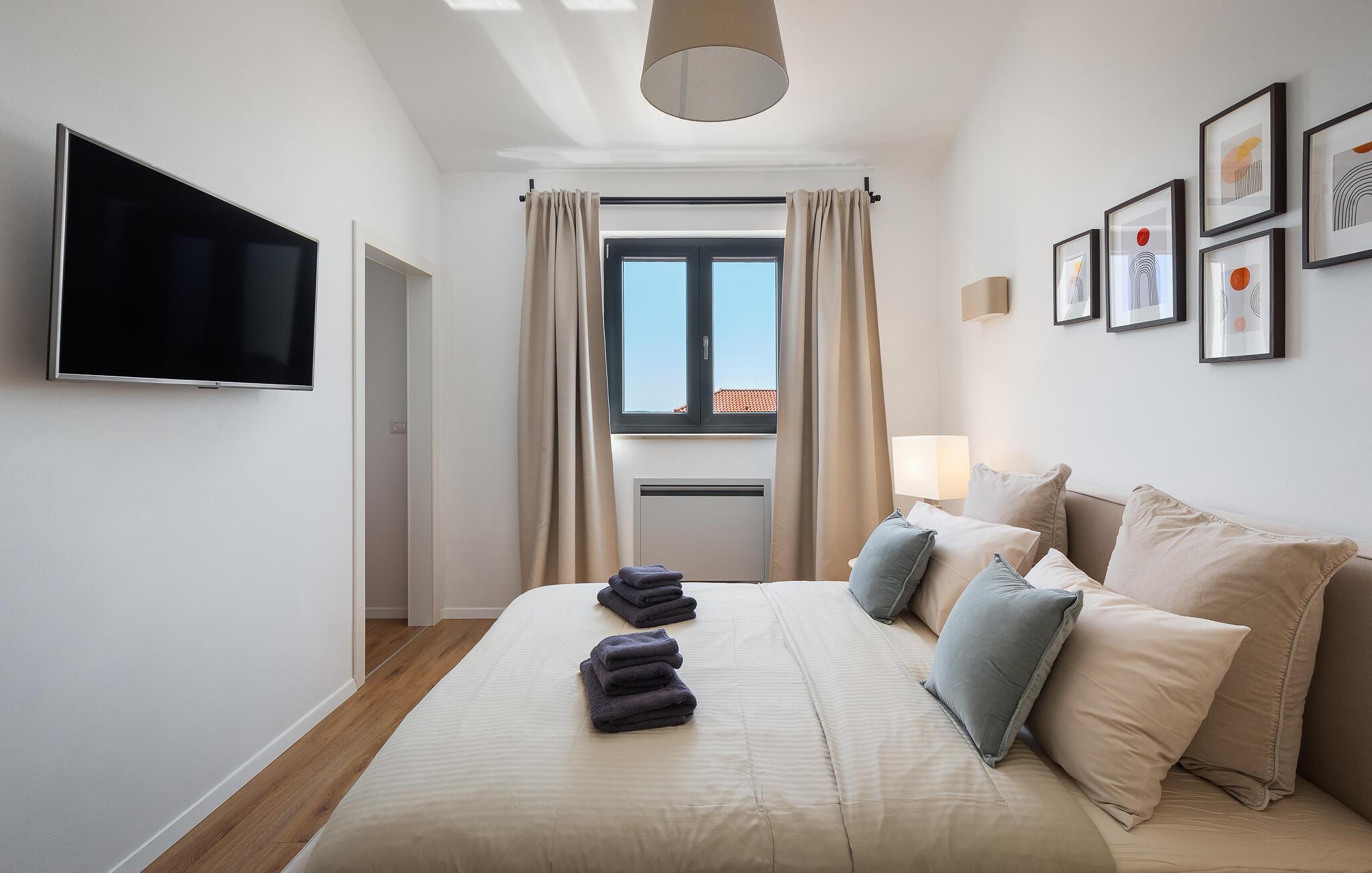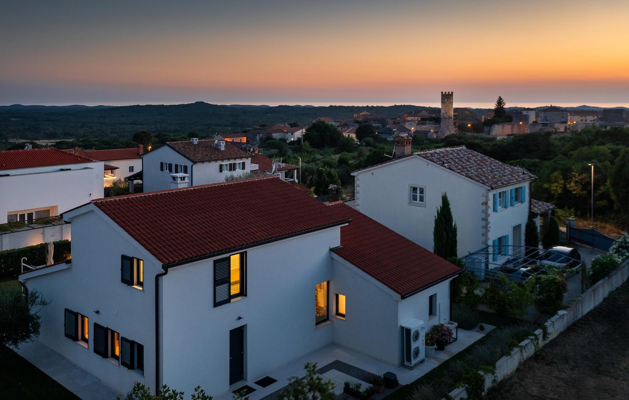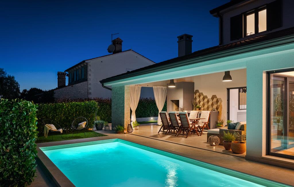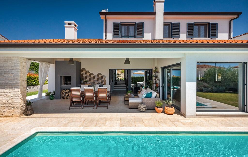 Im Außenbereich befindet sich die überdachte Terrasse. Hier können Sie auch alle köstlichen Speisen und Ihre Lieblingsgetränke genießen. Es gibt auch einen privaten Pool, an dem Sie bequem auf Liegestühlen sitzen und den Blick auf das Grün genießen können, das die Villa umgibt. Mit seinem liebevoll dekorierten Interieur und dem privaten Pool mit Blick auf die Altstadt, ermöglicht diese Villa einen wirklich erholsamen und entspannten Urlaub in Istrien.Die Villa befindet sich in einer der am besten erhaltenen mittelalterlichen Festungsstädte Istriens - dem pittoresken Sveti Lovrec. In seinen gewundenen Gässchen finden Sie gemütliche Bars und Restaurants, eine Post, Lebensmittelgeschäft und Arztpraxis. Herrliche Strände sind ebenfalls nur wenige Fahrminuten weg, die nächsten rund um das charmante Fischerdorf Vrsar (9 km). Die nahegelegene wichtigste regionale Straße macht zudem auch alle berühmtesten historischen Städte Istriens, wie Porec (15 km), Rovinj (20 km) und Pula (40 km), leicht erreichbar. Abenteuersuchende sollten auf jeden Fall die Pferderanch im benachbarten Dorf Jakici besuchen, sowie ausgezeichnete Kletterstellen in der spektakulären Lim Bucht. Das Hinterland ist von Olivenhainen bedeckt, welche hervorragendes, jetzt schon weltbekanntes Olivenöl herstellen.