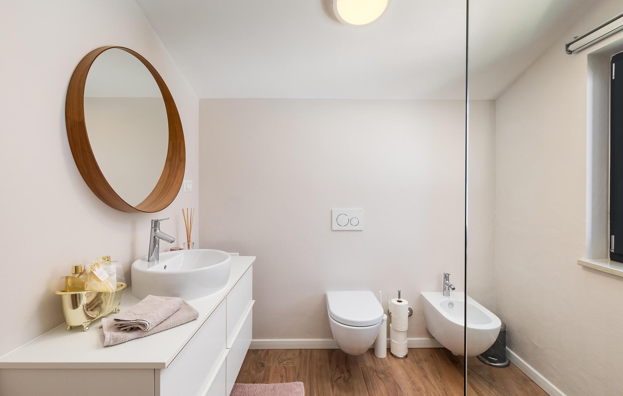 Badezimmer (nr. 1) - WC. Warmes und kaltes Wasser. Dusche