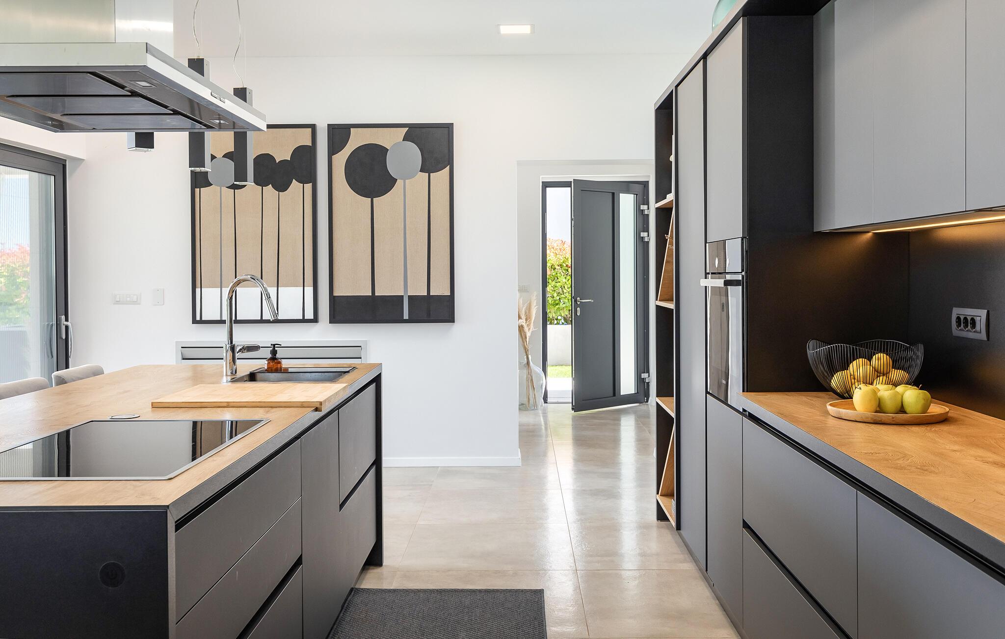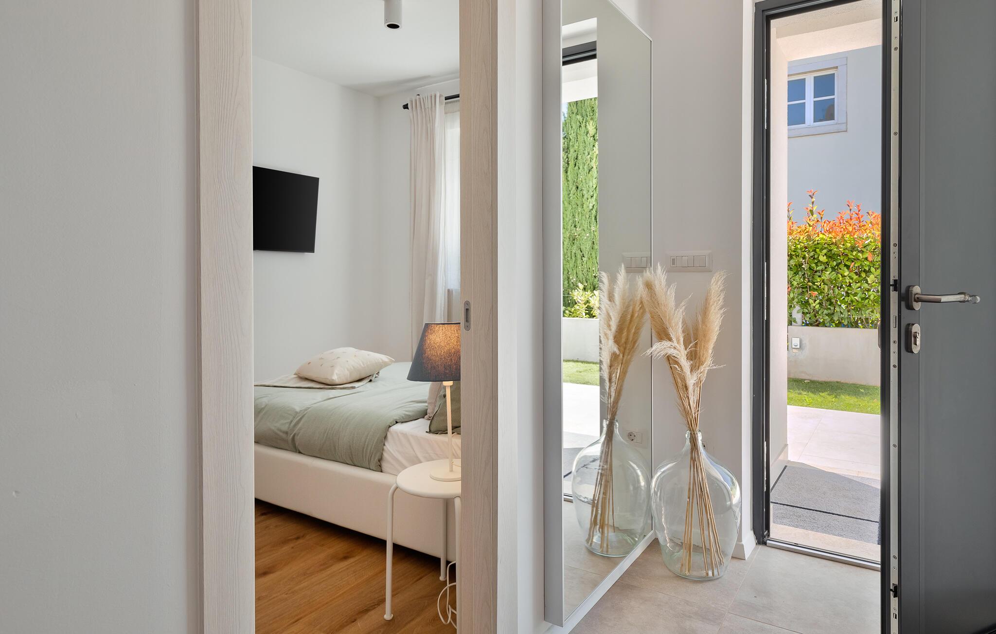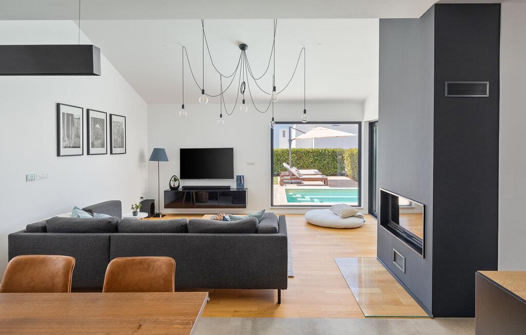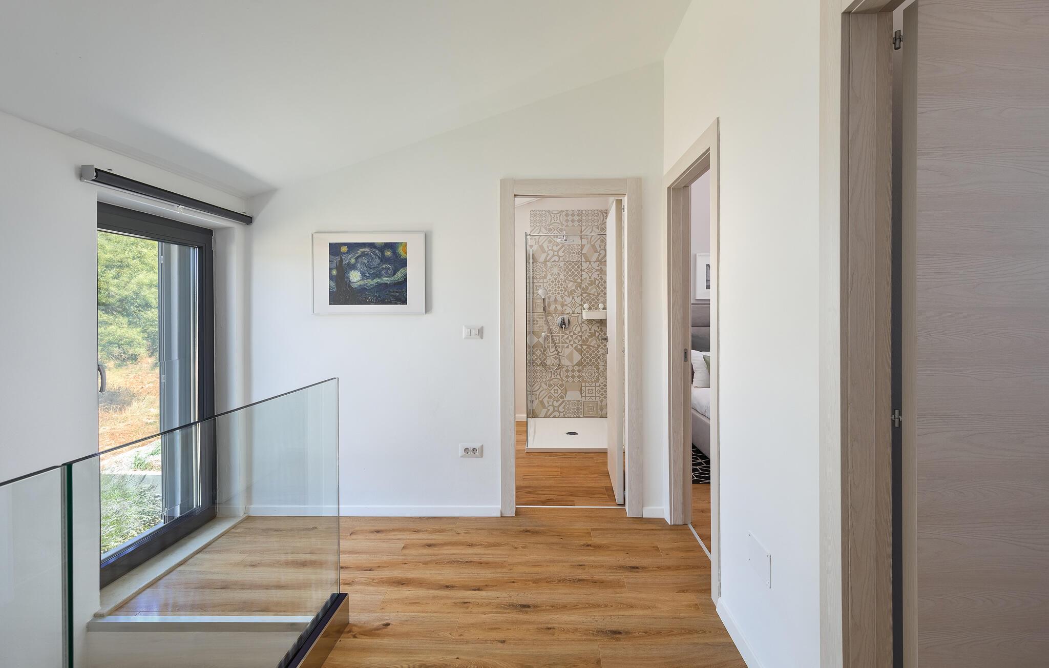 Die Villa besteht aus drei Schlafzimmern, was sie zu einer perfekten Unterkunft bis zu 6 Personen macht. Der Innbereich ist hell und luftig dank des offenen Konzepts des Erdgeschosses und der großen Glasflächen. Die Villa hat eine moderne, völlig ausgestattete Küche wo Sie Ihre leckere Mahlzeiten zubereiten können und einen Essbereich, in dem Sie die Köstlichkeiten genießen können. Hier befindet sich auch ein Wohnbereich wo Sie mit Ihrem Liebsten schöne Zeit verbringen können. Von hieraus haben Sie auch einen direkten Zugang zur überdachten Terrasse. Ein Schlafzimmer und ein Badezimmer befinden sich ebenfalls im Erdgeschoss, was die Villa für Familien mit Kinder geeignet macht. Zwei weitere Schlafzimmer und ein Badezimmer befinden sich auf der oberen Etage. Alle Schlafzimmer verfügen über ein Doppelbett.