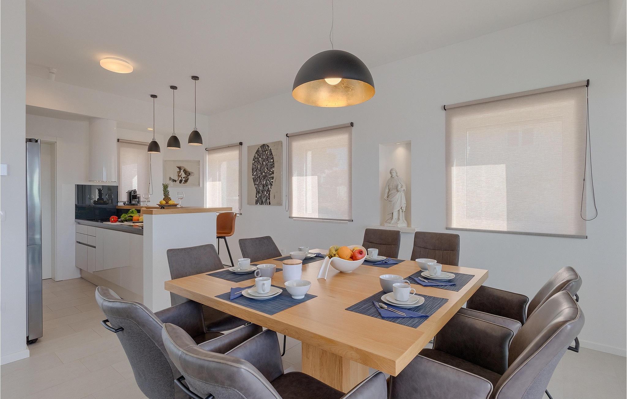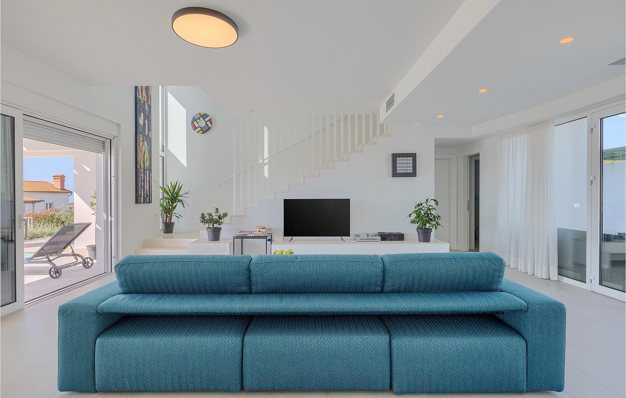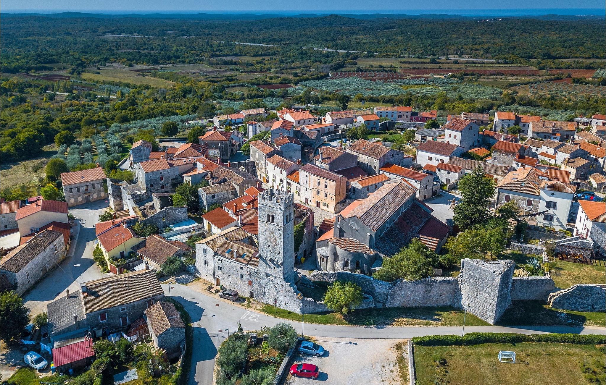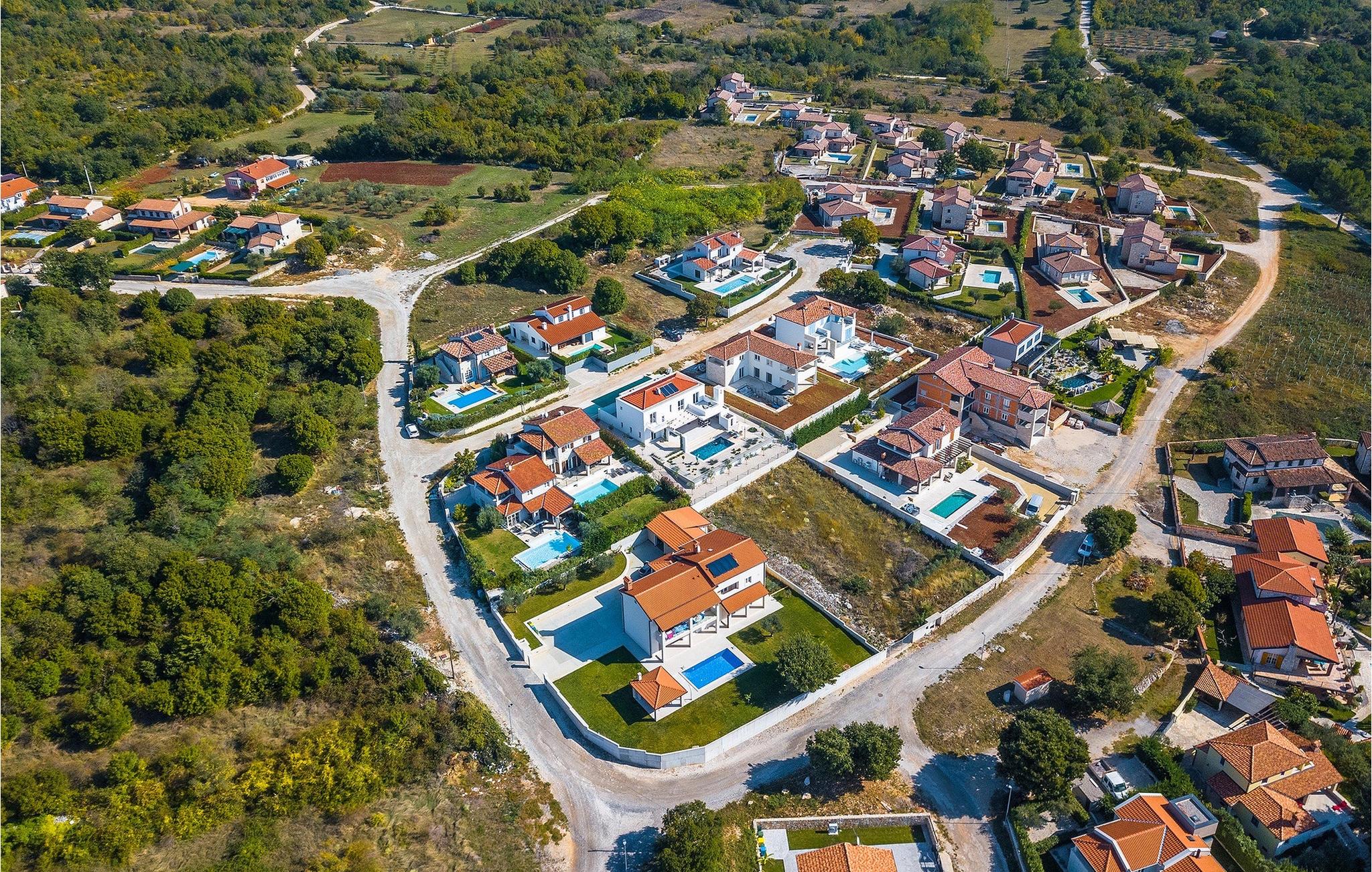 Den smukke terrasse har en pool med modstrømsanlæg. Det er det perfekte sted at bade, slappe af i en liggestol eller ligge i skyggen af ??parasollerne. Det veludstyrede udendørs køkkenområde er velegnet til familiegrill om aftenen. Terrassen er også kendetegnet ved en fantastisk skulptur, der forestiller kvindefiguren, et kunstværk af en af ??de vigtigste kroatiske billedhuggere i dag. Villaen ligger i middelalderbyen Sveti Lovrec i det centrale Istrien. Den maleriske lille by er kendetegnet ved sine smalle, snoede gader og stenhuse, hvor man kan spise i den lokale restaurant om aftenen og så gå en tur.