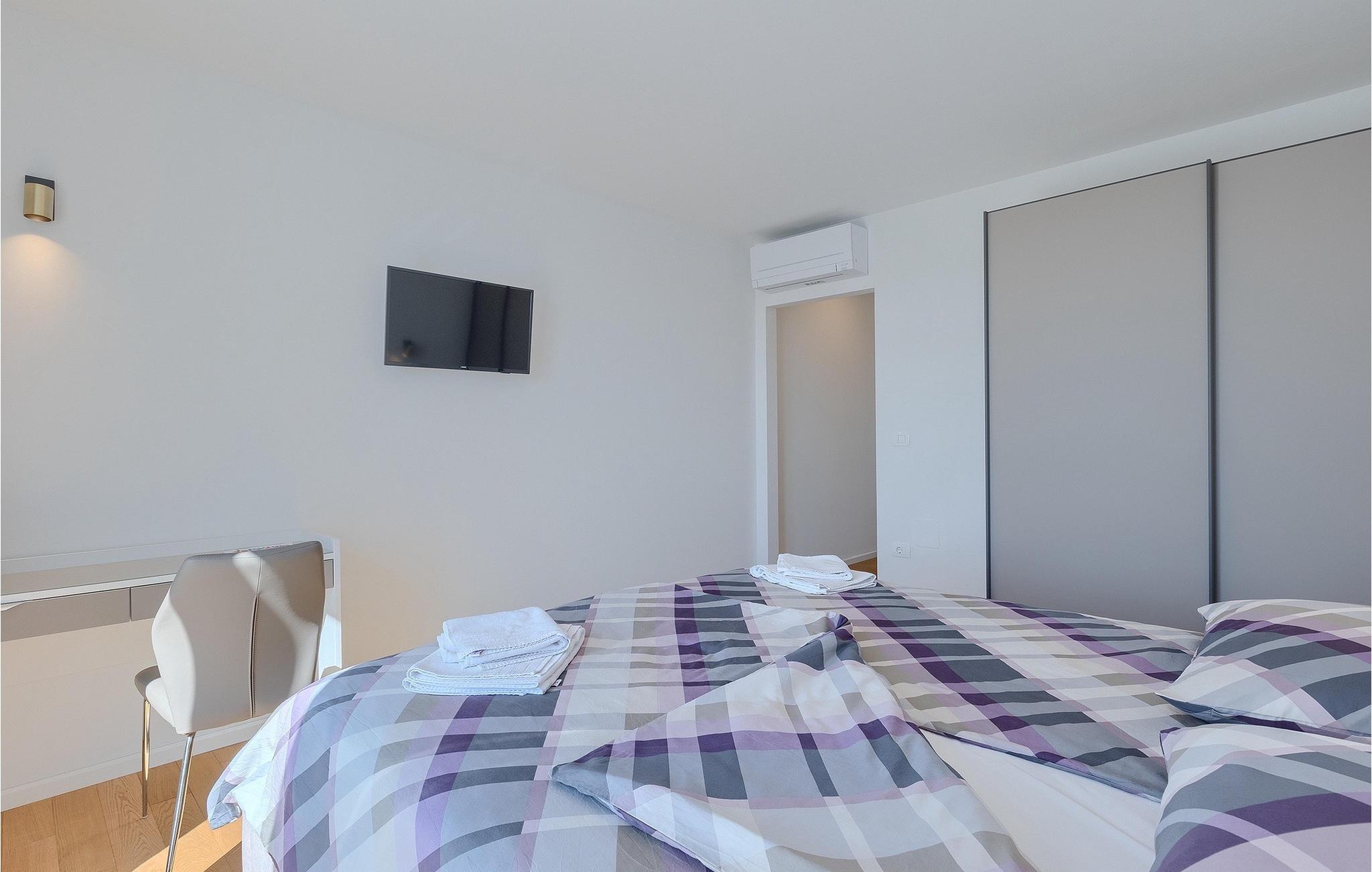 Den vidunderlige Villa Aponia med privat pool ligger i middelalderbyen Sveti Lovrec, nær den gamle bydel i Porec. Villaen kan rumme op til 8 personer i 4 soveværelser. I vil blive overrasket over poolen og den smukke panoramaudsigt. Denne kunstneriske villa vil introducere jer til storslåede kunstværker af nogle af Kroatiens mest berømte kunstnere.