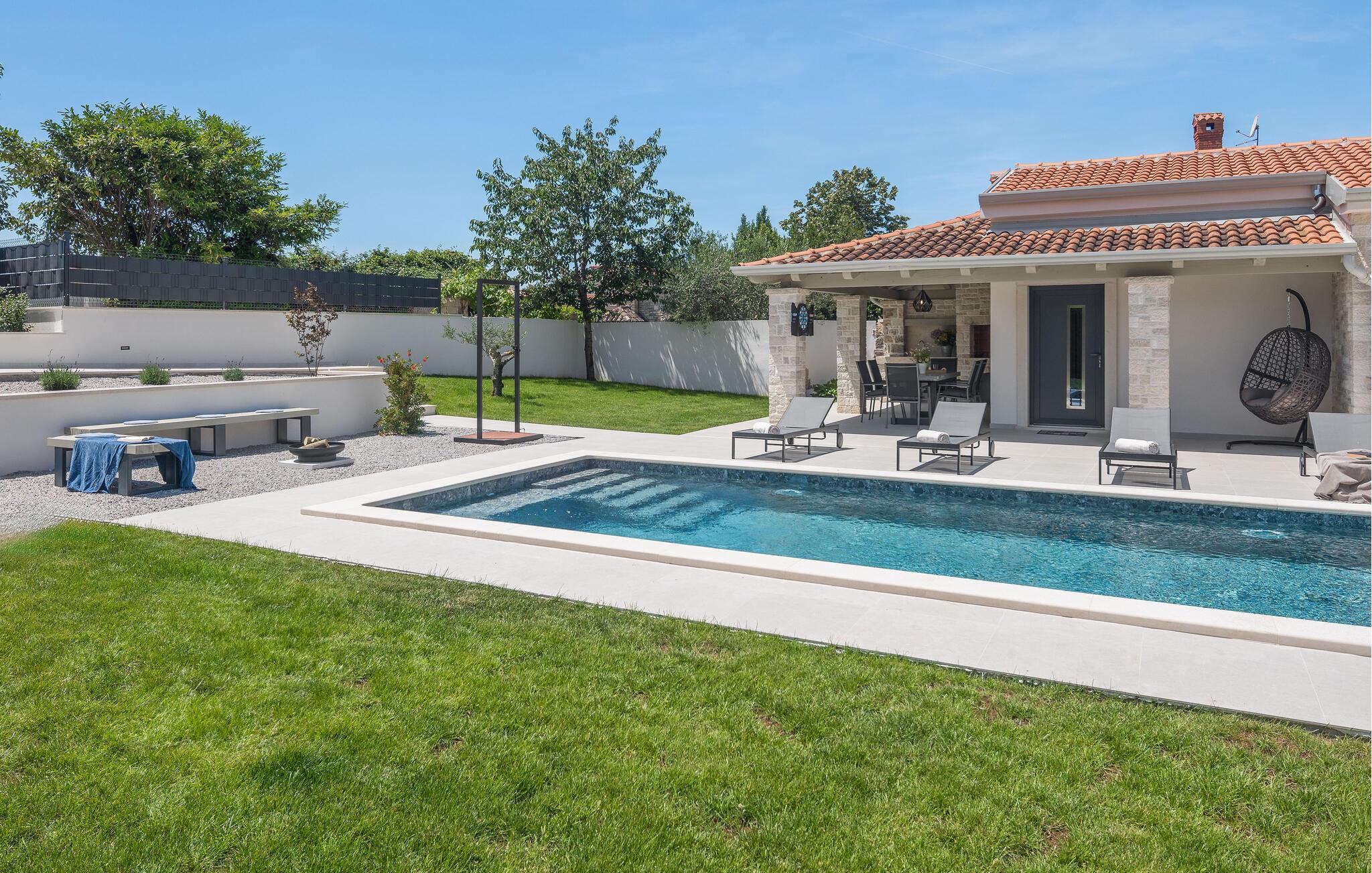 Se frem til en vidunderlig ferie i dette moderne og komfortable stenhus med pool.