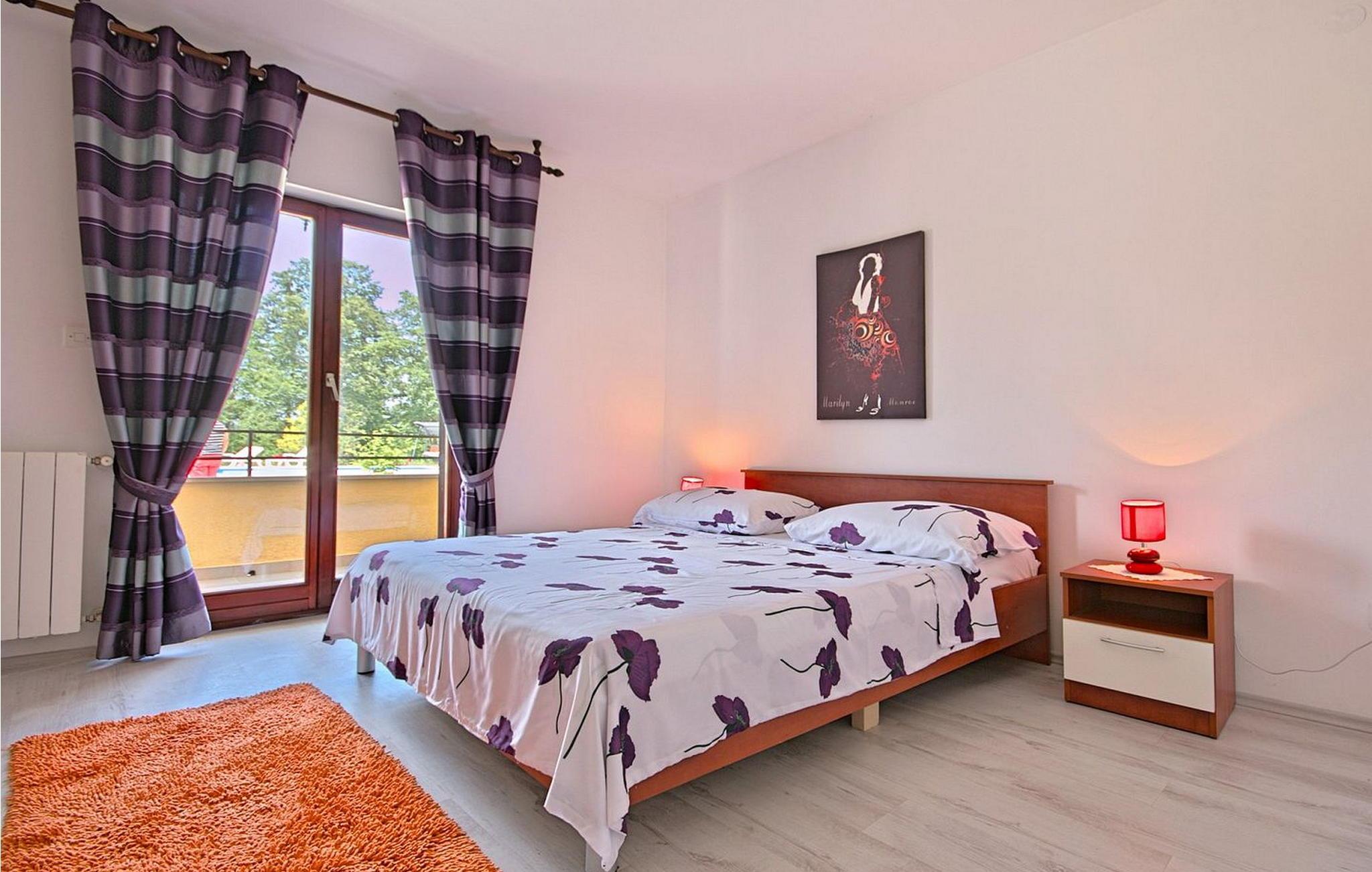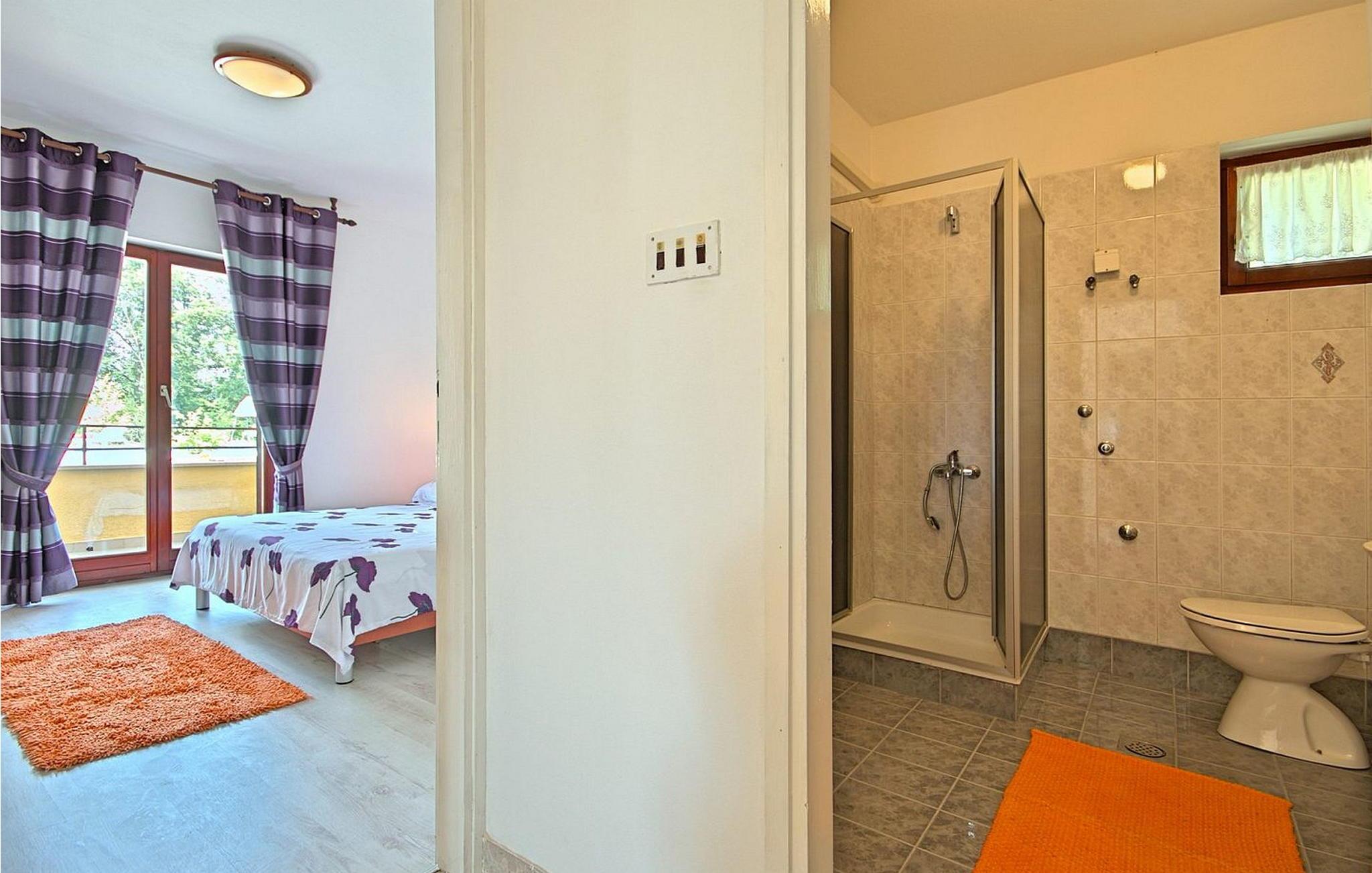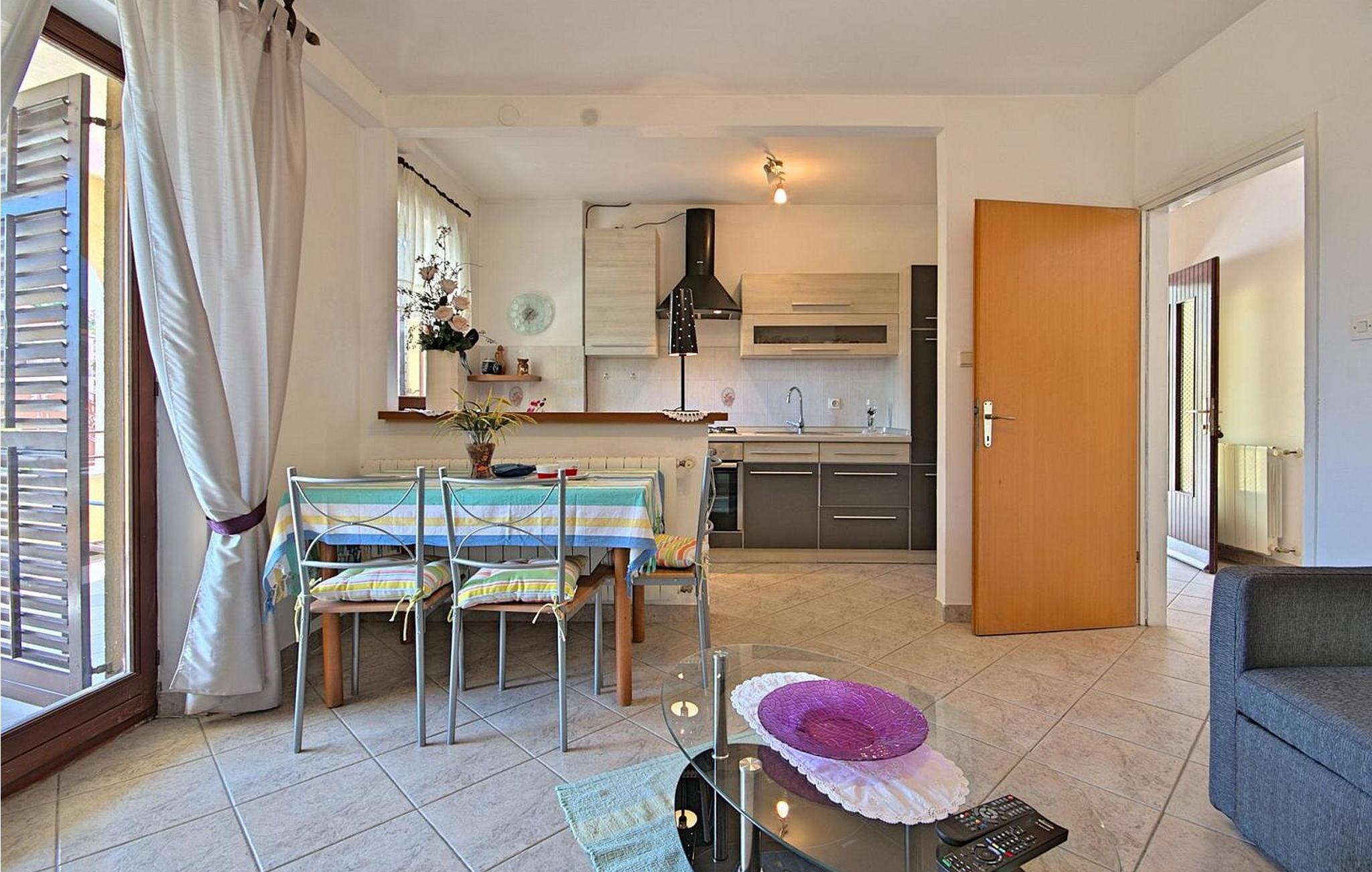 Petra Apartments ligger i stueetagen i et familiehus i Susnjici, kun 10,5 km fra Porec og 3,5 km fra den nærmeste restaurant og butik. Gæsterne har adgang til en stor, delvist indhegnet ejendom med fælles pool og et skovområde, hvor børn kan lege frit på gynger og rutsjebane. Der er tilstrækkelige parkeringspladser til rådighed på stedet. Lejligheden er bekvemt beliggende nær en trafikeret vej, ejerne bor på første sal. Lejlighed Petra 1, overfor poolen, byder på en hyggelig opholdsstue. Den er designet til 3-5 gæster og indeholder en stue med køkkenafdeling, et spisebord og en udtrækssofa til to personer. Fra stuen er der udgang til en overdækket terrasse med havemøbler. Lejligheden har desuden et soveværelse med dobbeltseng med udgang til terrasse, et enkelt soveværelse og et badeværelse med bruser. Et besøg i Porec er et must under dit ophold. Denne livlige kystby byder på en rig historie, charmerende gader i den gamle bydel, den imponerende Eufrasiusbasilika og en livlig havnefront med caféer, restauranter og butikker. Uanset om du vil udforske kulturelle seværdigheder eller nyde de maleriske strande, byder Porec på noget for enhver smag. Bemærk venligst, at denne ejendom ikke accepterer ungdomsgrupper eller polterabender. En ungdomsgruppe på denne ejendom består af personer på 26 år eller derunder.