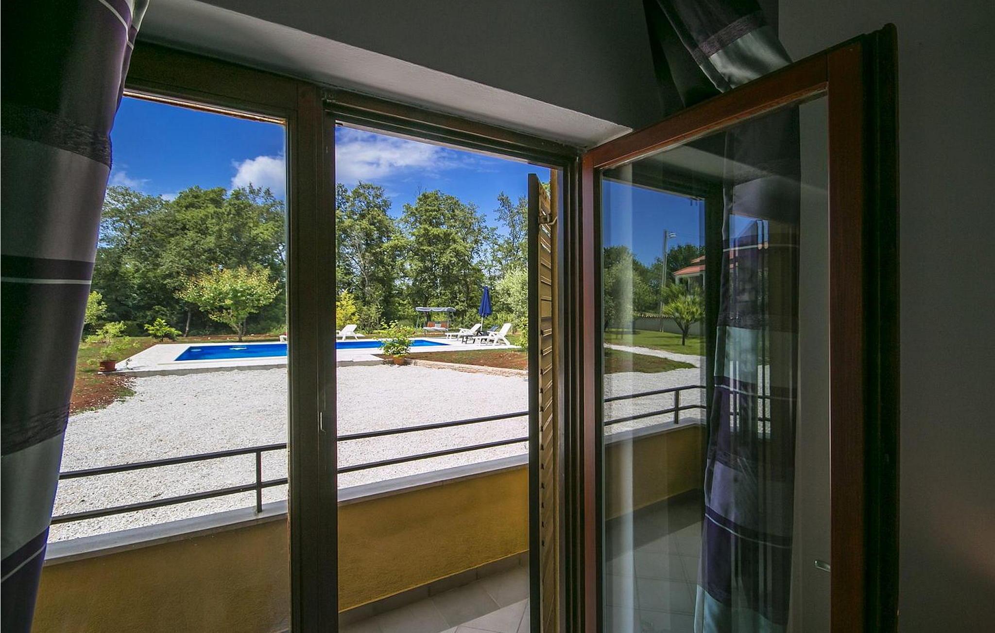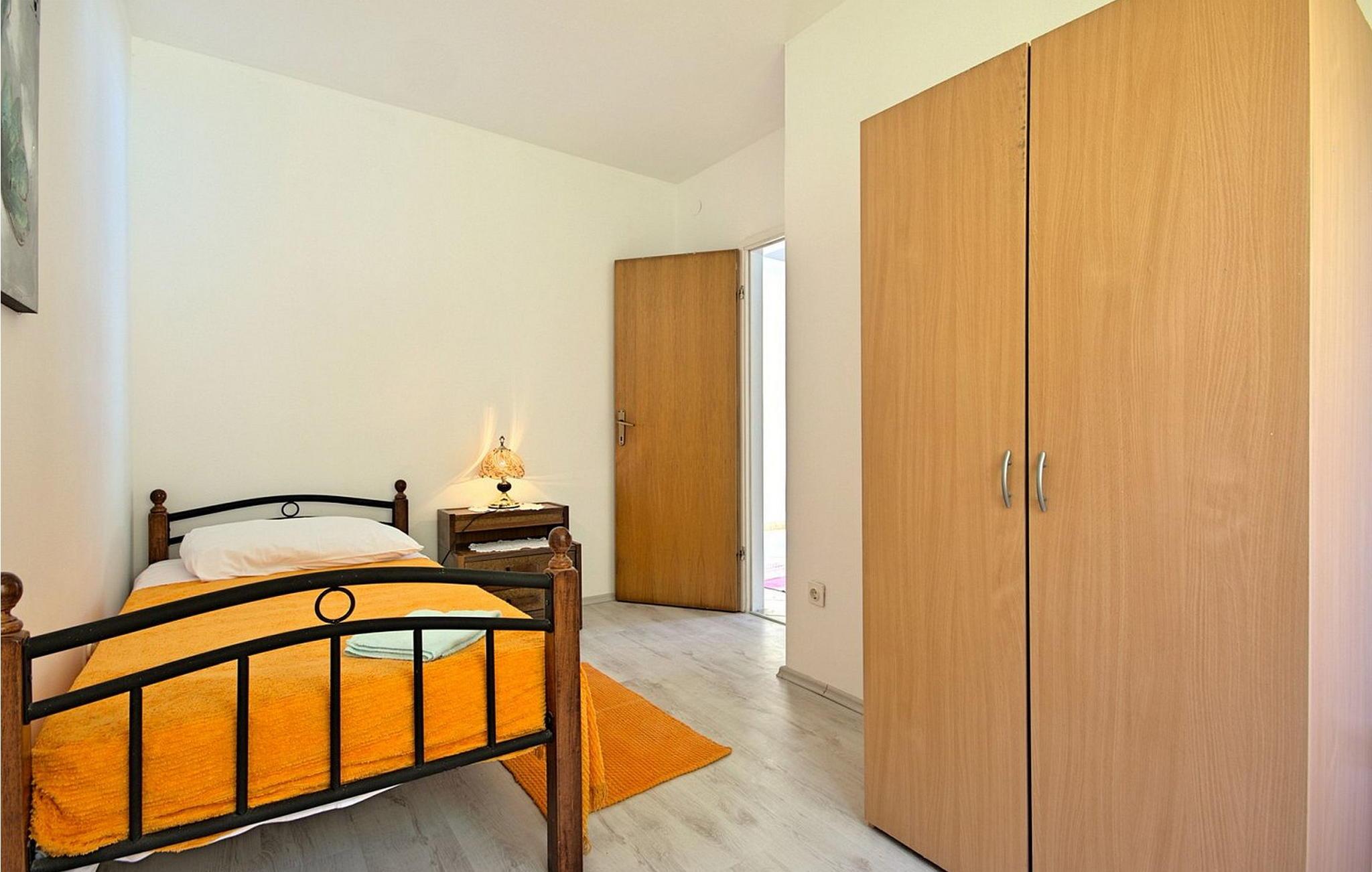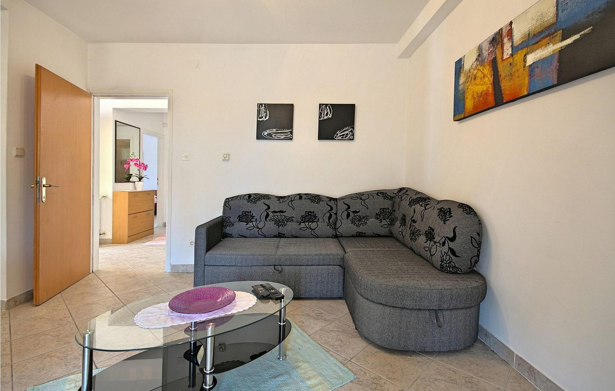 Petra Apartments ligger i stueetagen i et familiehus i Susnjici, kun 10,5 km fra Porec og 3,5 km fra den nærmeste restaurant og butik. Gæsterne har adgang til en stor, delvist indhegnet ejendom med fælles pool og et skovområde, hvor børn kan lege frit på gynger og rutsjebane. Der er tilstrækkelige parkeringspladser til rådighed på stedet. Lejligheden er bekvemt beliggende nær en trafikeret vej, ejerne bor på første sal. Lejlighed Petra 1, overfor poolen, byder på en hyggelig opholdsstue. Den er designet til 3-5 gæster og indeholder en stue med køkkenafdeling, et spisebord og en udtrækssofa til to personer. Fra stuen er der udgang til en overdækket terrasse med havemøbler. Lejligheden har desuden et soveværelse med dobbeltseng med udgang til terrasse, et enkelt soveværelse og et badeværelse med bruser. Et besøg i Porec er et must under dit ophold. Denne livlige kystby byder på en rig historie, charmerende gader i den gamle bydel, den imponerende Eufrasiusbasilika og en livlig havnefront med caféer, restauranter og butikker. Uanset om du vil udforske kulturelle seværdigheder eller nyde de maleriske strande, byder Porec på noget for enhver smag. Bemærk venligst, at denne ejendom ikke accepterer ungdomsgrupper eller polterabender. En ungdomsgruppe på denne ejendom består af personer på 26 år eller derunder.