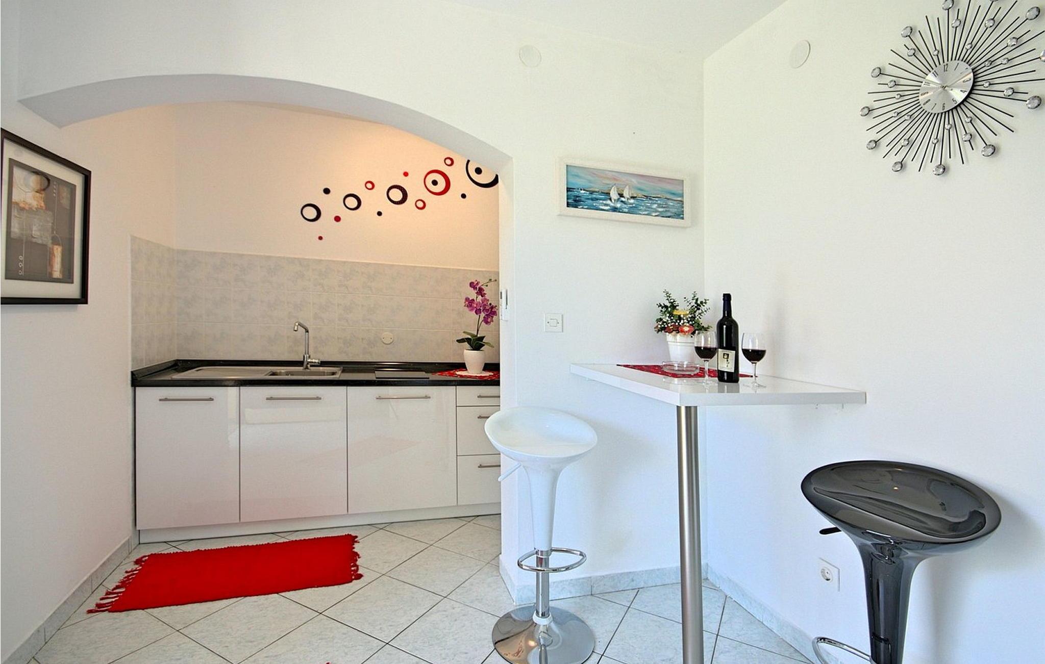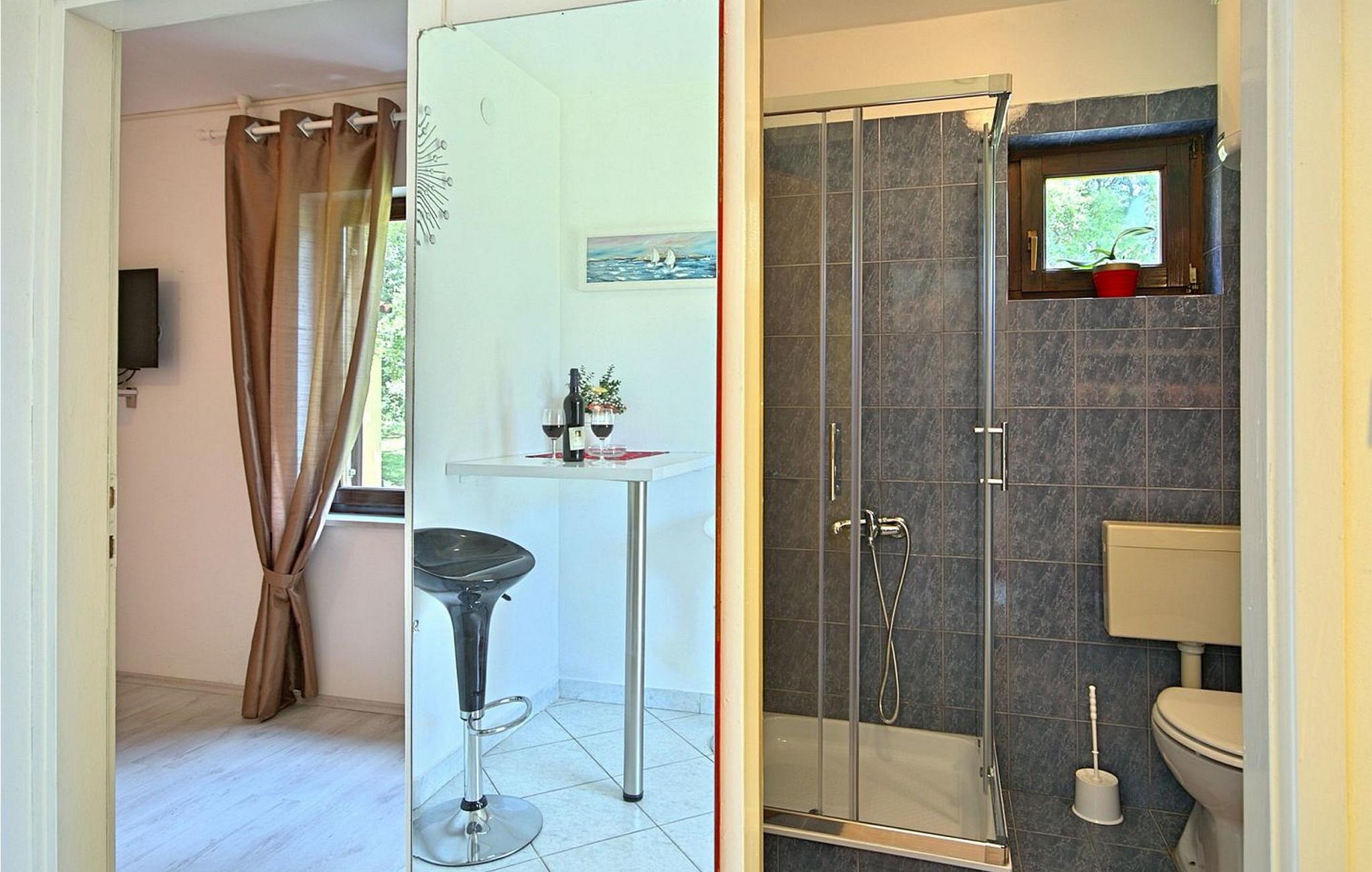 Petra-lejlighederne ligger i stueetagen af et familiehus i landsbyen Susnjici, 10,5 km fra Porec og 3,5 km fra den nærmeste restaurant og butik. Beliggende på denne store, delvist lukkede ejendom har gæsterne brug af en fælles pool, 44 kvm stor, og et skovområde tæt på poolen og haven. Der er også parkering til flere køretøjer på stedet. Ejerne af lejlighederne bor på første sal og ejendommen ligger ud til en ret trafikeret vej. Lejlighed Petra 3 ligger i husets stueetage, har et samlet boligareal på 30 kvm og er ideel til 2 gæster. Det består af en stue med lille køkken, en morgenmadsbar til at dele måltider og et soveværelse med dobbeltseng og satellit-tv. Det moderne badeværelse har bruseniche, og der er udgang til en overdækket terrasse med komfortable møbler, det perfekte sted at nyde en tidlig morgenkaffe eller en kølende drink. Bemærk venligst, at denne ejendom ikke accepterer ungdomsgrupper eller polterabends. En ungdomsgruppe på denne ejendom er en gruppe bestående af personer på 26 år eller derunder. Book ikke denne ejendom, hvis du er en ungdomsgruppe eller et polterabend, da din reservation vil blive afvist efter booking, hvilket kan omfatte ved ankomst til ejendommen eller under dit ophold, og du vil ikke blive refunderet.