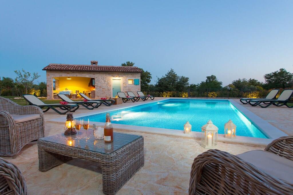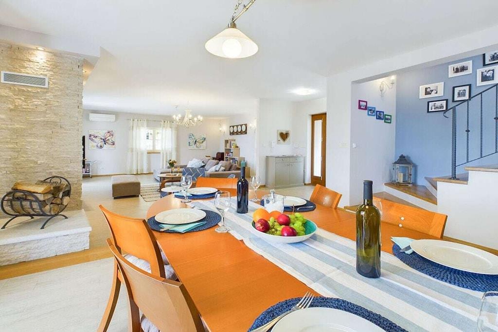 Til din rådighed har du 4 rummelige soveværelser og 1 børneværelse, 4 rummelige badeværelser og et separat toilet. En rummelig stue med pejs, spiseplads og et fuldt udstyret køkken er også tilgængelig. I den rummelige og smukke grønne indhegnede have kan du slappe af ved siden af den store private opvarmede pool og nyde den istriske sol. Poolen er 40 cm til 160 cm dyb. Hele villaen har aircondition, gratis Wi-Fi, privat parkering og tilbyder alt til en virkelig afslappende ferie. Med sine traditionelle elementer og detaljer tilbyder Villa Azzurra alt til en perfekt, afslappende og behagelig ferie.