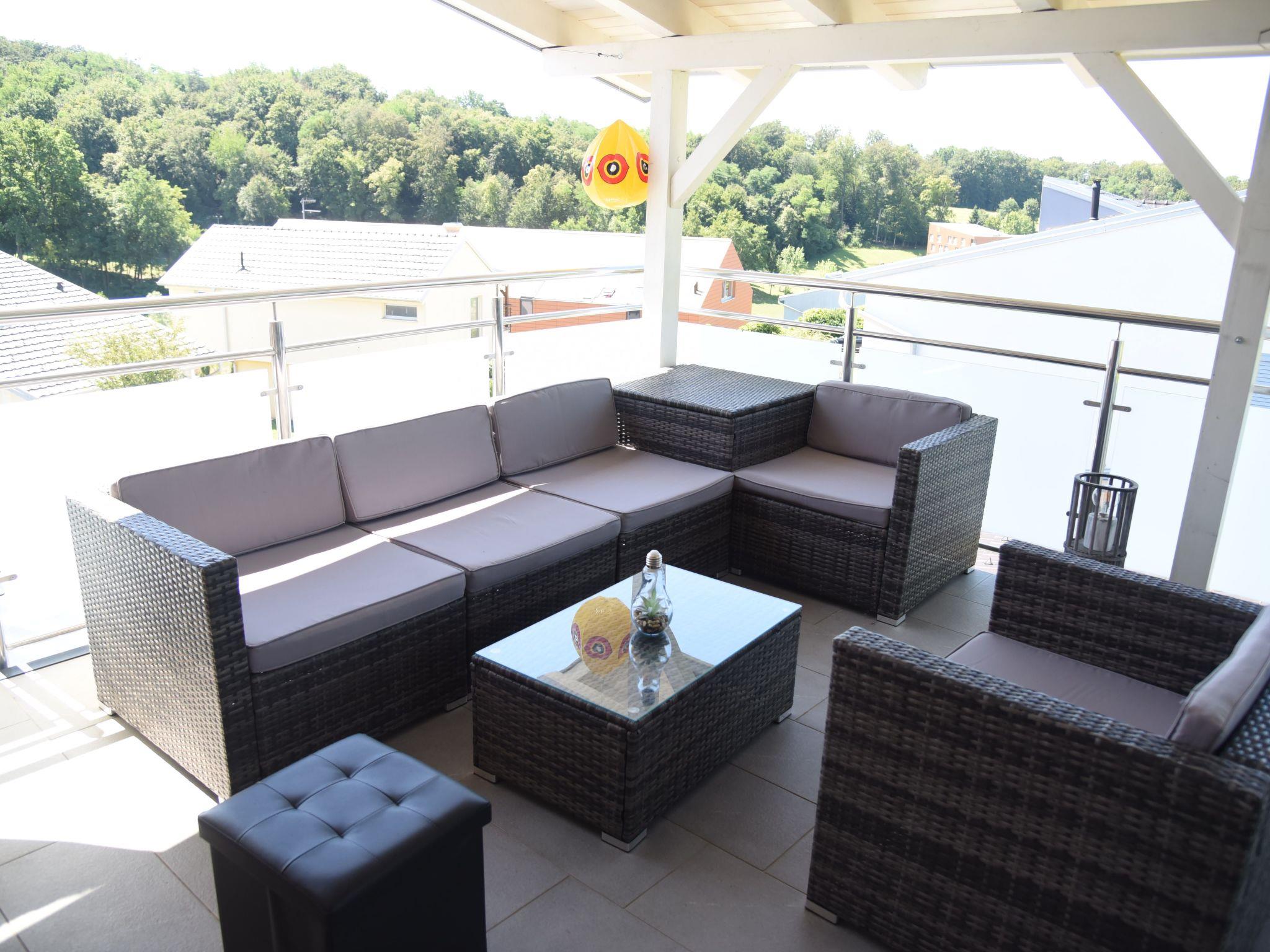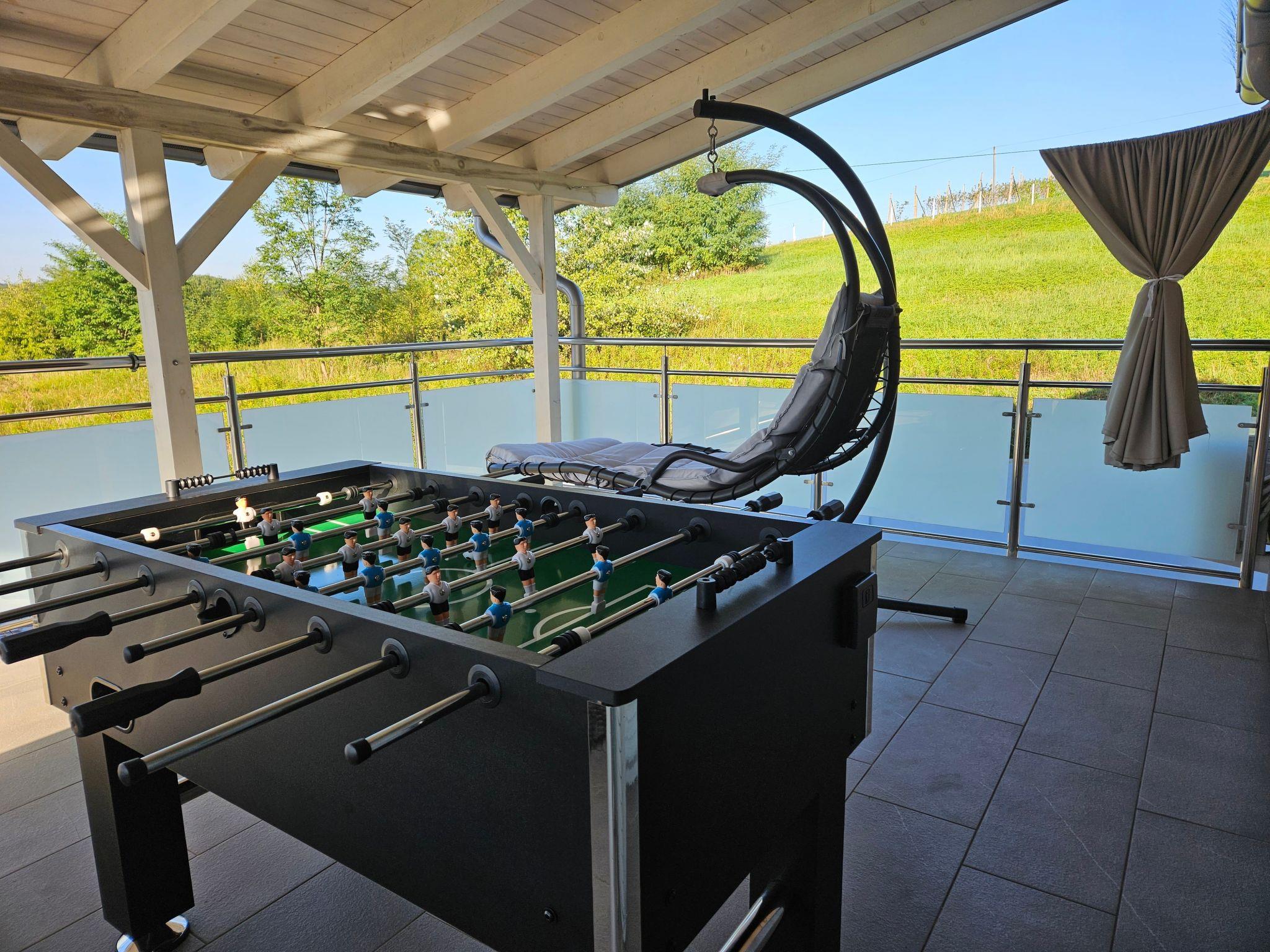 The outdoor area of the holiday home invites you to linger and enjoy. The terrace and the spectacular roof terrace provide a wonderful backdrop for cosy evenings or morning coffee mornings. The fully fenced garden ensures privacy and security, while the landscaped playground will make children's eyes light up. Additional fun is provided by a table football table, perfect for entertaining afternoons.