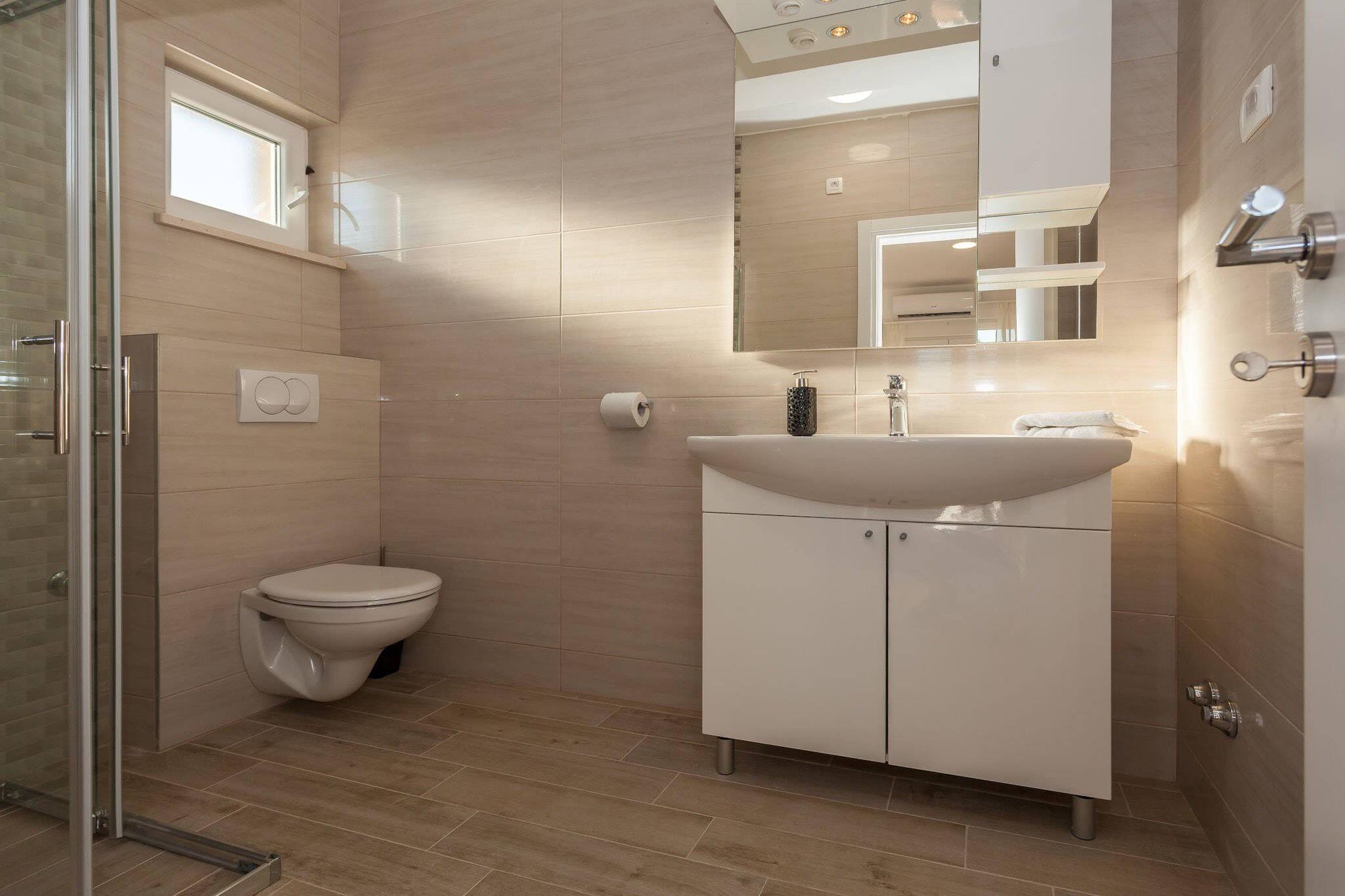 Beliggende i den rolige kystby Sveti Petar na Moru nær Zadar, tilbyder denne rummelige feriebolig en afslappende ferie for store familier eller grupper af venner. Med et boligareal på 600 kvadratmeter fordelt på tre etager kan den komfortabelt rumme op til 16 personer i moderne og venlige omgivelser. Huset er perfekt beliggende, kun 100 meter fra stranden, restauranter og en dagligvarebutik, hvilket sikrer både komfort og ro, der vil gøre dit ophold på den dalmatiske kyst uforglemmeligt. Indvendigt har villaen syv klimatiserede soveværelser med private badeværelser, tre elegante stuer og spisestuer samt to fuldt udstyrede åbne køkkener. Hver etage har lyse interiører og adgang til overdækkede terrasser, hvor gæsterne kan slappe af med en forfriskende drink eller nyde havbrisen. Designet lægger vægt på komfort, privatliv og funktionalitet, så alle har masser af plads til at slappe af. Udenfor kan gæsterne benytte sig af en privat pool omgivet af en møbleret terrasse med liggestole og solbruser, der er ideel til at nyde den middelhavske sol. Den charmerende have omfatter en overdækket veranda, en udendørs spiseplads og grillfaciliteter, så man kan spise sammen under stjernerne. Yderligere faciliteter omfatter Wi-Fi, satellit-tv, fitnessområde og privat parkering for ekstra komfort. Dette sted er et perfekt udgangspunkt for at udforske regionen, og den historiske by Zadar ligger kun 20 minutter væk. Gæsterne kan udforske gamle romerske ruiner, middelalderkirker, livlige markeder og den rige atmosfære ved kysten. Nationalparker som Krka, Paklenica og Kornati ligger inden for en times kørsel og byder på ubegrænsede muligheder for både naturelskere og eventyrere.