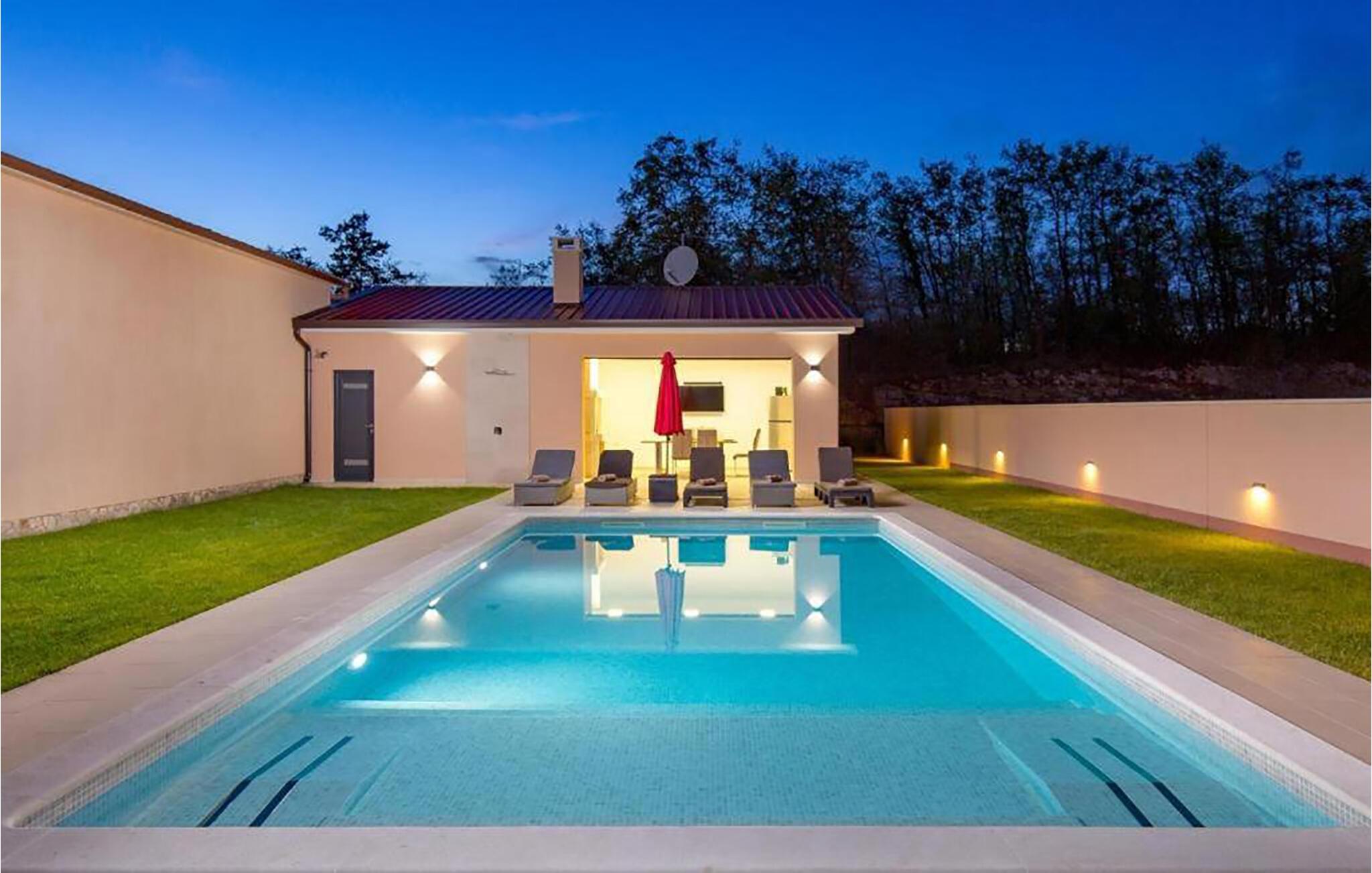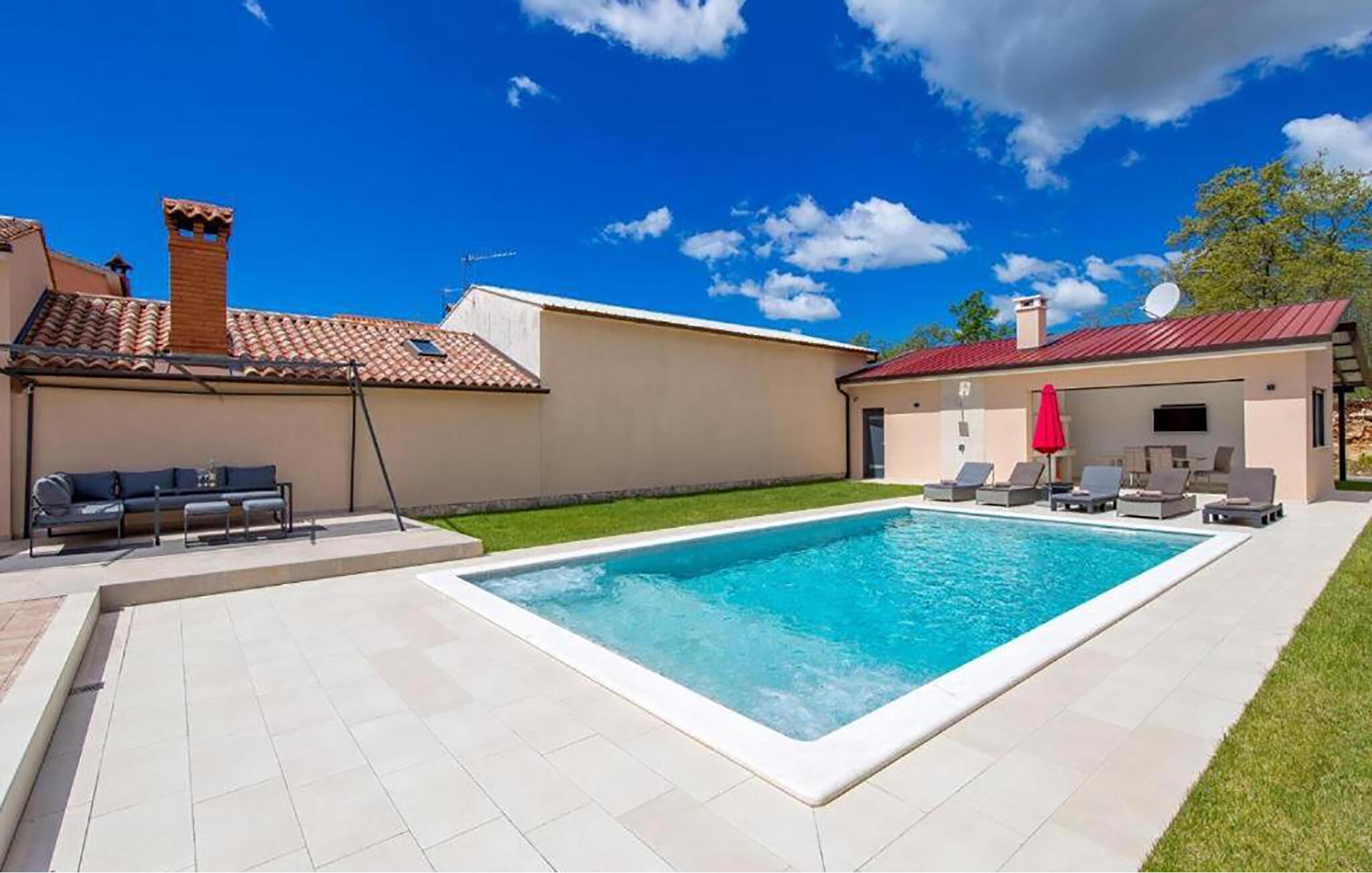 Poolen lige foran huset lægger op til at tage en forfriskende dukkert eller spille vandpolo når som helst. Bagefter kan I slappe af med en kølig drink på liggestolene. Der er forskellige siddeområder til rådighed til afslappende måltider eller en afslappende ferielæsning udendørs, så I kan vælge, hvad I ønsker.