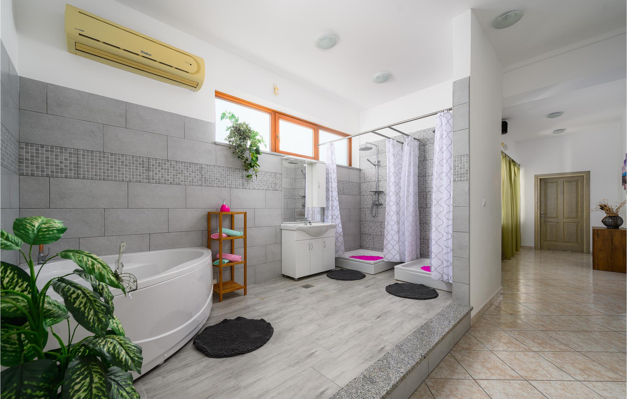 Dette indbydende hus er perfekt til en afslappende ferie. Den åbne stue med træ- og naturstenselementer skaber en afslappet atmosfære, hvor I hurtigt vil føle jer hjemme. Slap af på sofaen med en kop kaffe eller spil dart eller bordfodbold med børnene. Hvis I har lyst til lidt motion, kan I bruge fitnessudstyret.