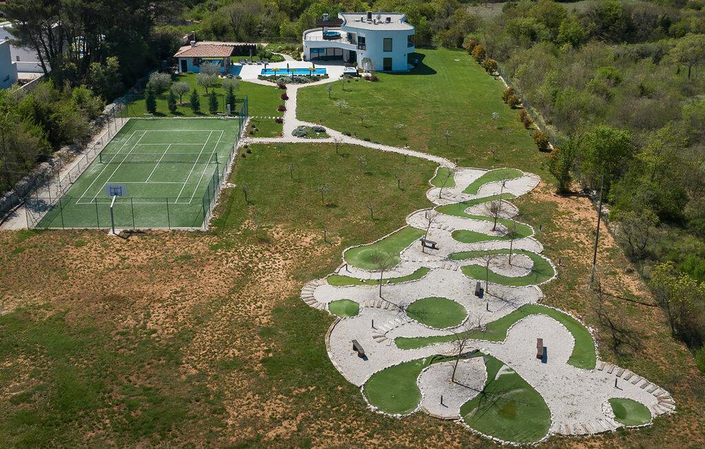 Dyk ned i den forfriskende pool eller forkæl jer selv i spabadet. Børn vil elske gynger, legehus, rutsjebane og klatrestativ, mens sportsentusiaster kan bruge basketballbanen eller tennisbanen. Hele komplekset er designet, så enhver gæst kan finde deres yndlingssted.