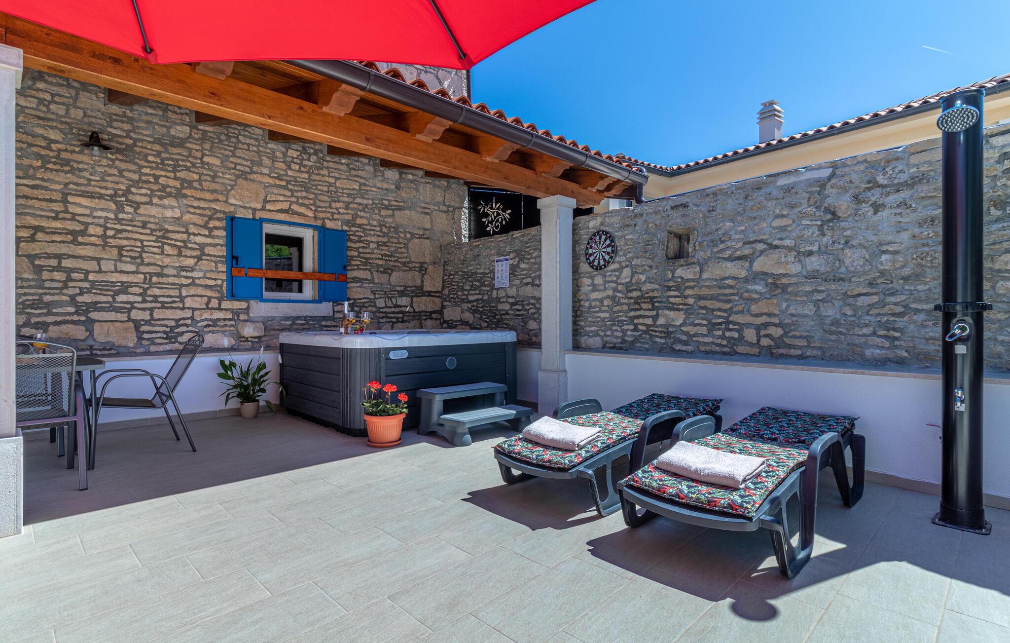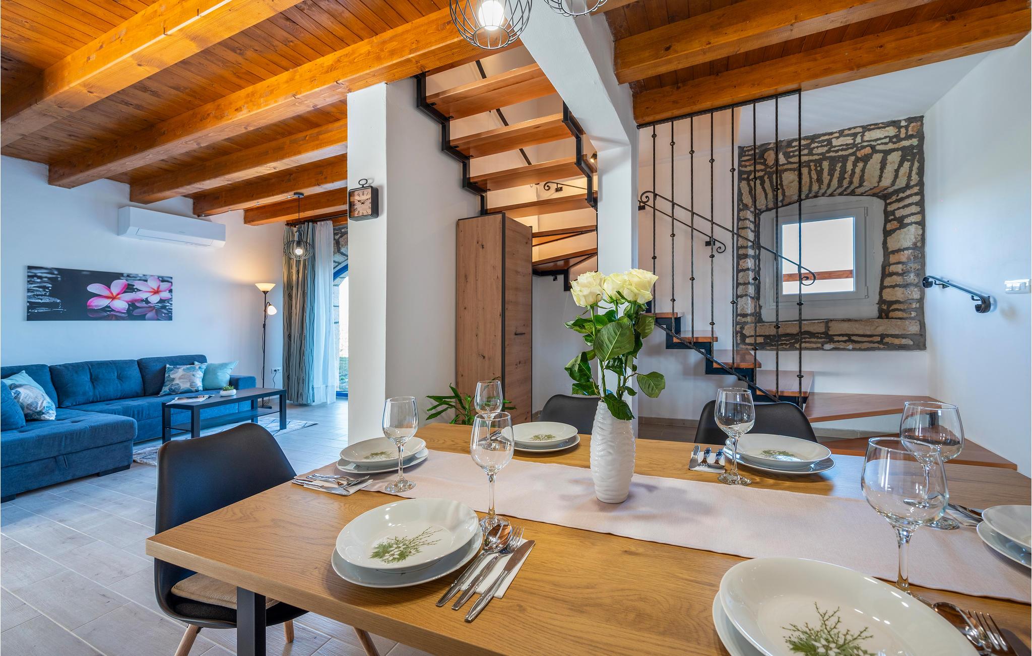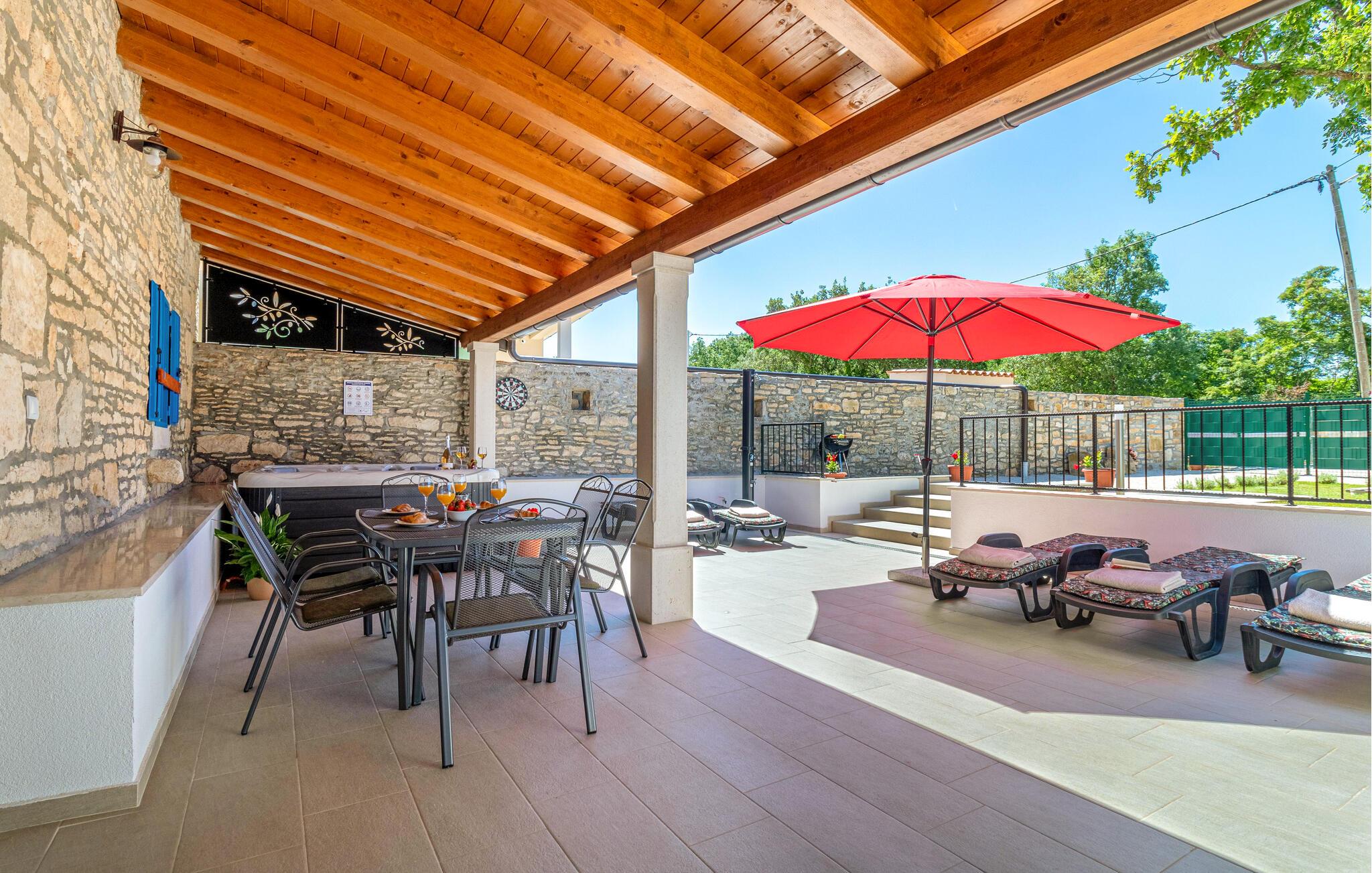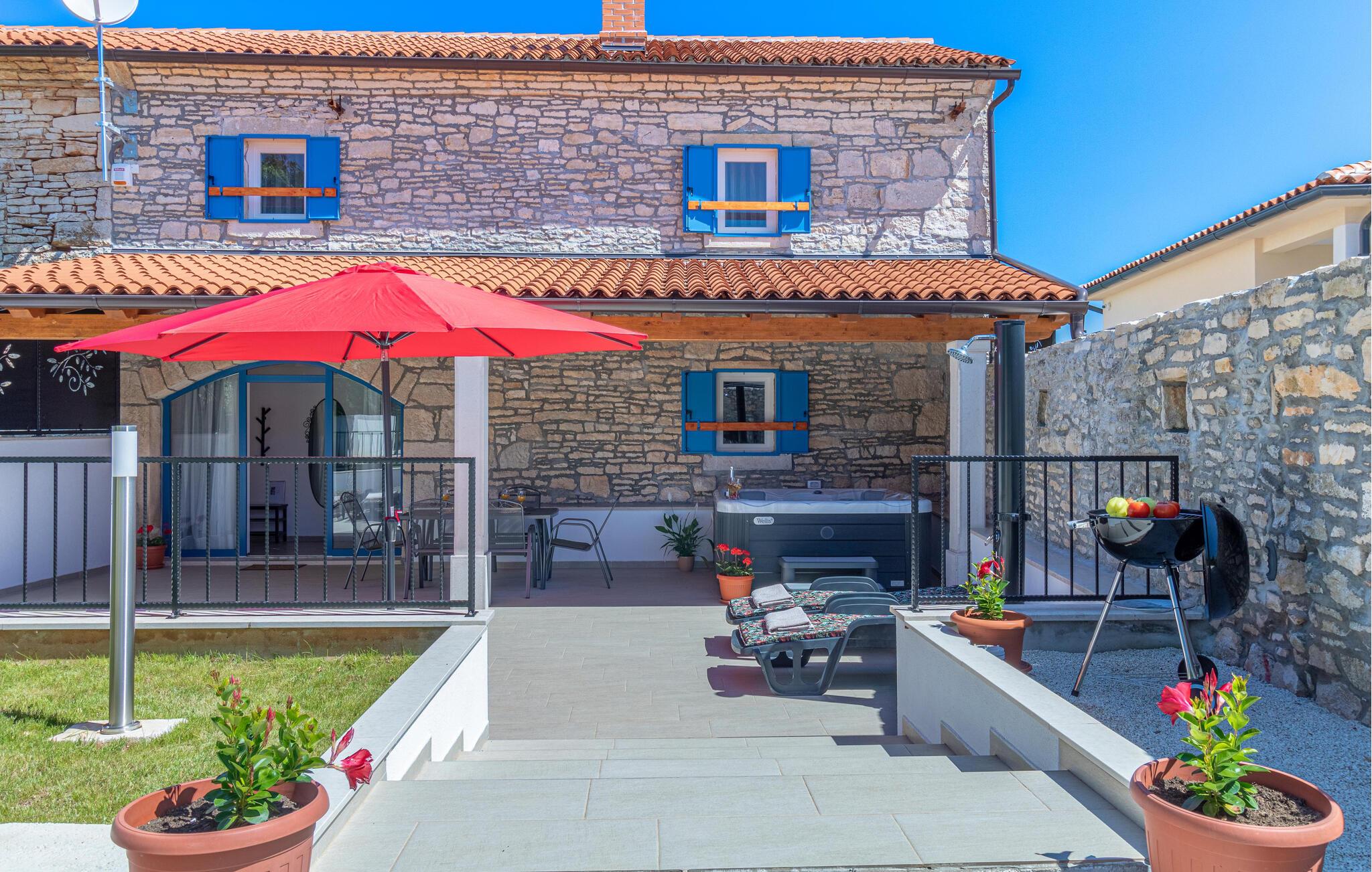 Tag familien under armen og rejs til sydlige Istrien, hvor I i smukke omgivelser i kystens bagland får base i dette attraktive hus. Indvendigt emmer det af charme over to etager med velholdte trælofter, komfortable møbler og fine udsmykningsdetaljer, der gør det rart at være her og får skuldrene til at sænke sig med det samme, I ankommer.