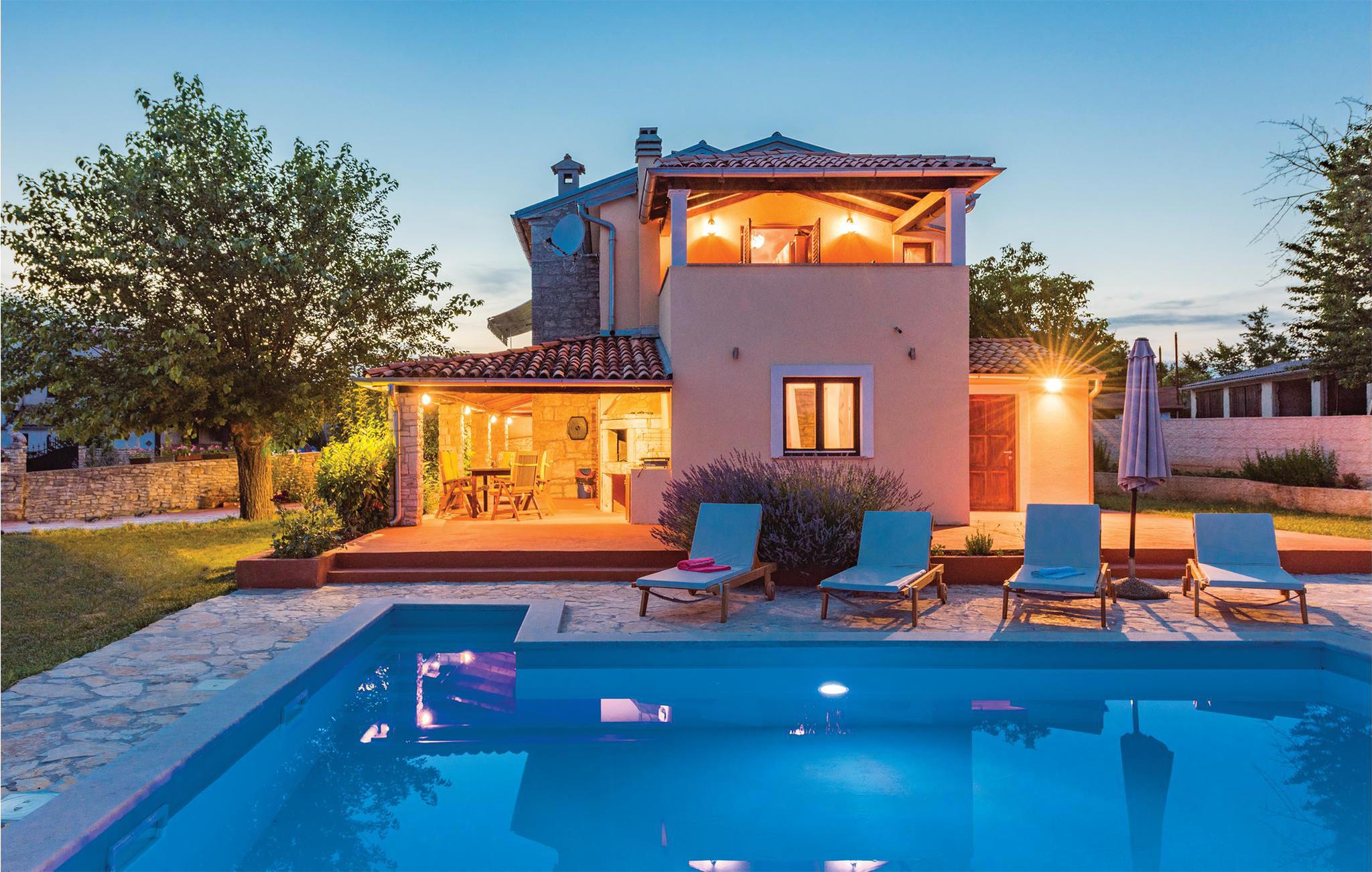 I den lille by Peresija ikke langt fra middelalderbyen Svetvincenat ligger dette skønne feriehus, bygget i helt traditionel stil. Nyd den rolige landlige charme i en udsædvanlig smuk natur. Dette komfortable hus ligger på en stor grund, omgivet af hæk, så her kan I holde en ugenert ferie og I kan trygt lade jeres børn lege i haven. Poolen er oplagt til en forfriskende svømmetur på en varm dag. Besøg middelalderborgen Grimani med talrige underholdende kulturarrangementer i løbet af sommeren.