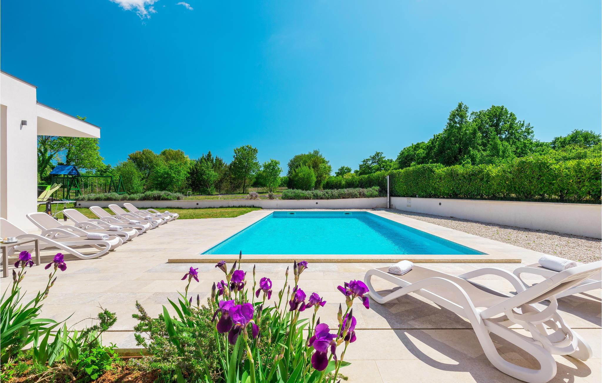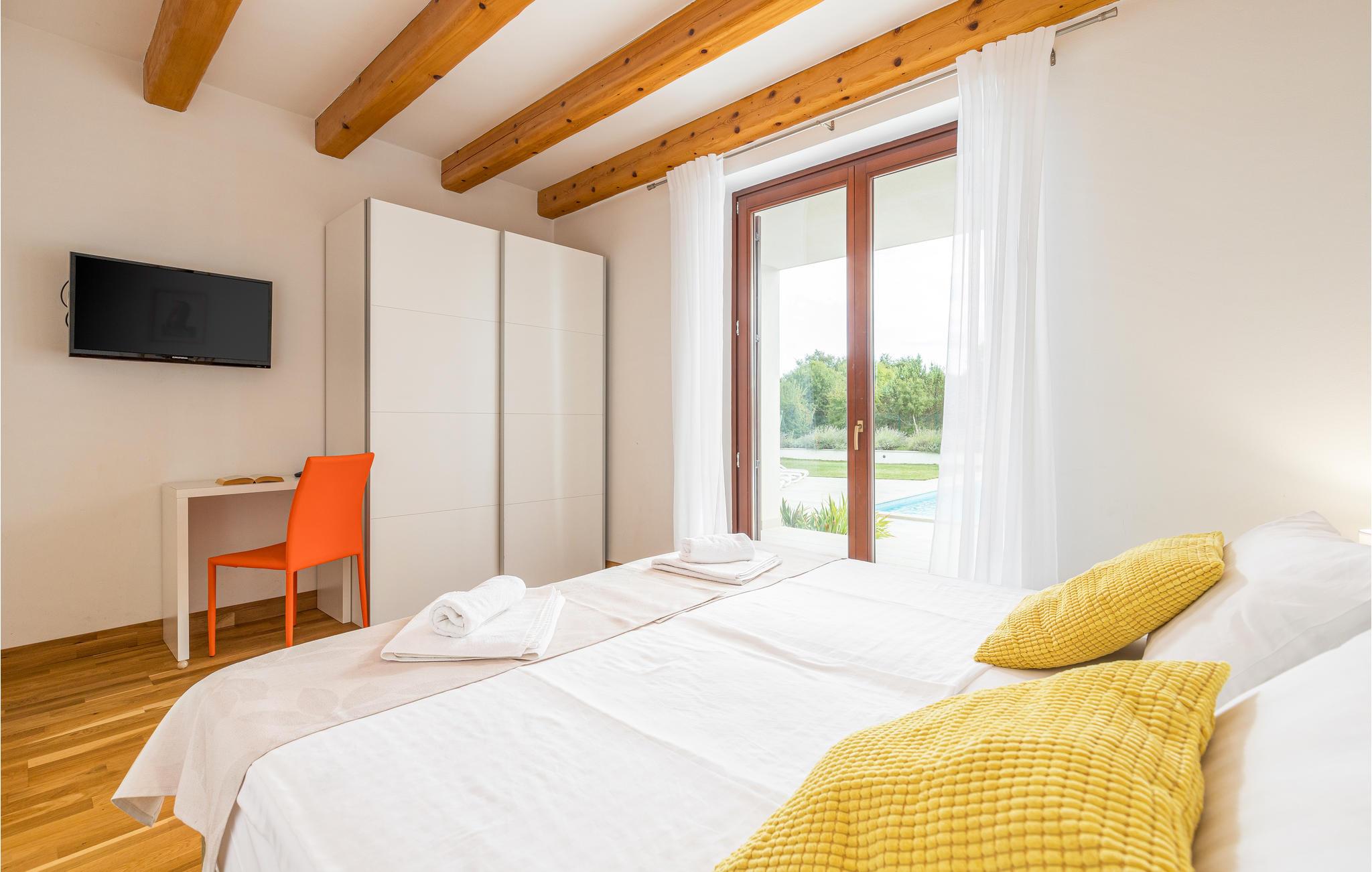 Dette skønne feriehus ligger i byen Stokovci. Det rummer alt til en moderne bekvem ferie for hele familien. I stueplan er der en rummelig stue med kamin, her er køkken, terrasse med udsigt over poolen og to soveværelser. På første sal er der yderligere to soveværelser og to badeværelser. I poolen kan I tage en afslappet svømmetur. Hvis I kan løsrive jer fra jeres feriedomicil, kan I tage til Svetvincenat 6 km væk, hvor der er et interessant gammelt slot. Besøg også byen Vodnjan med mange seværdigheder, bl.a. St. Blasius-kirken med relikvier. Her er også mange dejlige restauranter, hvor I kan smage egnens kulinariske specialiteter med olivenolie og skønne vine.