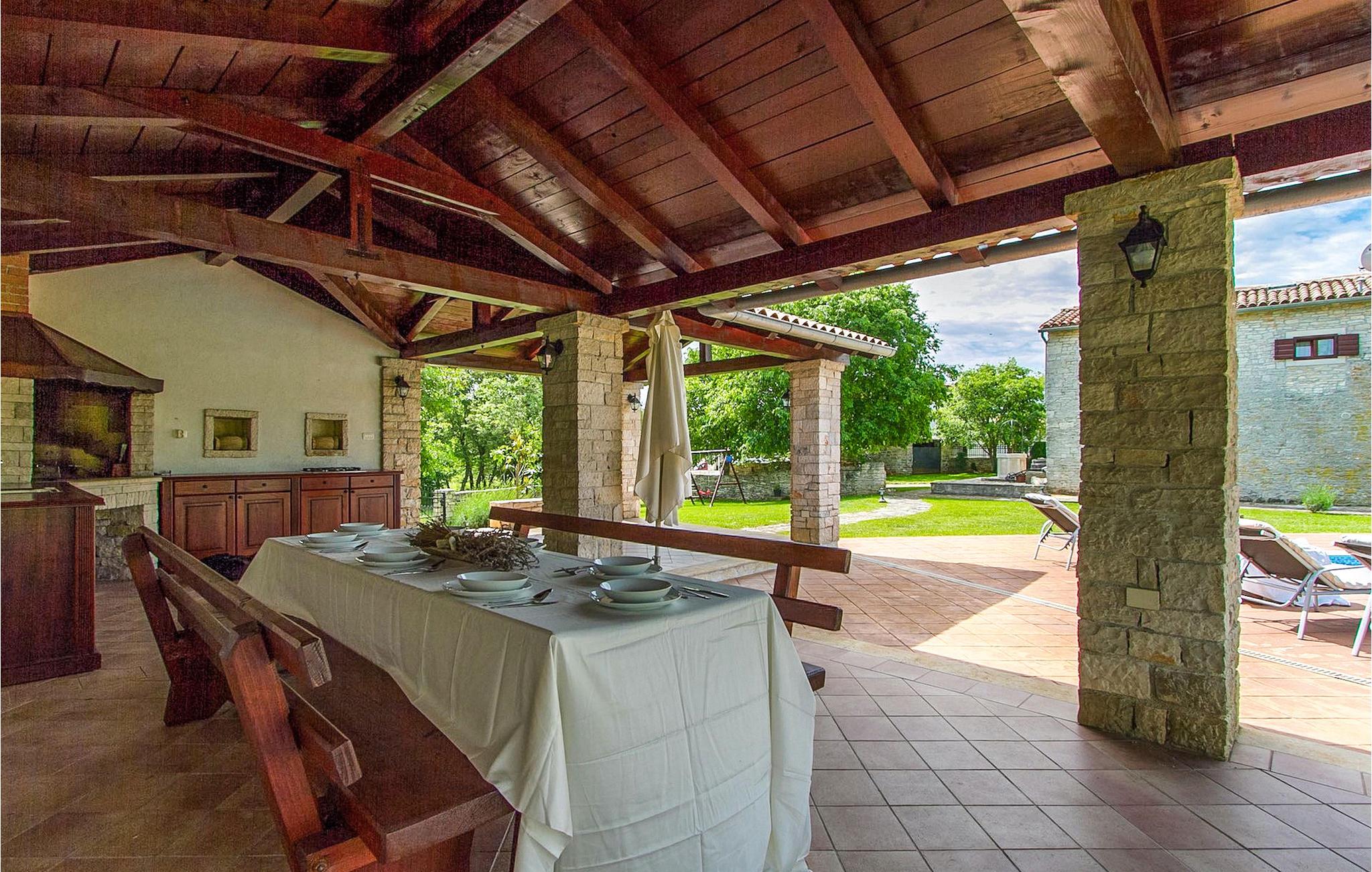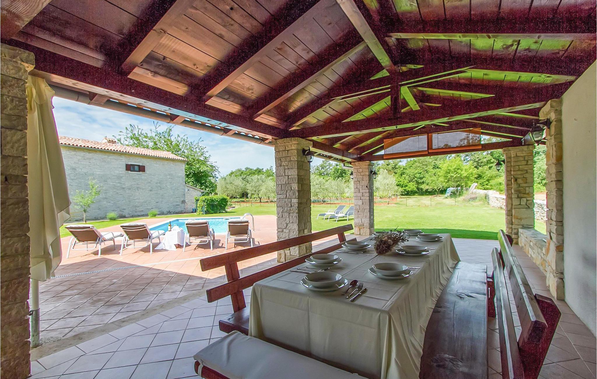 Charming Villa Edera ligger i det centrale Istrien. Til din rådighed er 3 soveværelser, 2 badeværelser, stue og fuldt udstyret køkken med spiseplads, pejs og attraktive rustikke møbler i traditionel stil. Det udendørs område omfatter en fuldstændig lukket rummelig grøn have med en swimmingpool og liggestole, ideel til at slappe af og nyde den varme kroatiske sol. Haveområdet omfatter også en overdækket terrasse med sommerkøkken og kulgrill. Her kan du tilberede lækre måltider eller blot nyde uforglemmelige stunder med din familie og venner. Villa Edera er en stolt ejer af Eco Domus-certifikatet, som garanterer, at gæsterne bor i en miljøvenlig villa. Tanken bag Eco Domus-projektet er at gøre Istrien til en "grøn region" og at begrænse den påvirkning, villaerne har på det lokale miljø. Villa Edera har aircondition, Wi-Fi, privat parkering til 4 biler og giver alt for en fornøjelig ferie i privatlivets fred. Villaens beliggenhed tilbyder en perfekt balance mellem fred og privat nydelse væk fra hektisk byliv, og alligevel er velkendte turistmål ved kysten nemme at nå. Fažana, en lille kystby med en havn, hvorfra du kan tage en sejltur til en af nationalparkerne i Kroatien – Brijuni, har en stor stenstrand med mulighed for adskillige vandsportsaktiviteter og aktiviteter. Gode restauranter, caféer og butikker kan findes i Svetvincenat (St. Vicenat, 3 km), en charmerende rolig by i det centrale Istrien, kendt for ikke kun sine historiske og kulturelle steder, men også for lækre istriske retter: hjemmelavet istrisk prosciutto (pršut) , istrisk pasta (fuži) og hjemmelavede middelhavsspecialiteter. Vodnjan er en charmerende by med synlig venetiansk indflydelse i sine mange middelalderhuse og smalle snoede gader fulde af butikker og caféer. Under dit ophold i Istrien kan du besøge byen Pula med dets romerske amfiteater (ca. 18 km) og den smukke by Rovinj (ca. 25 km).