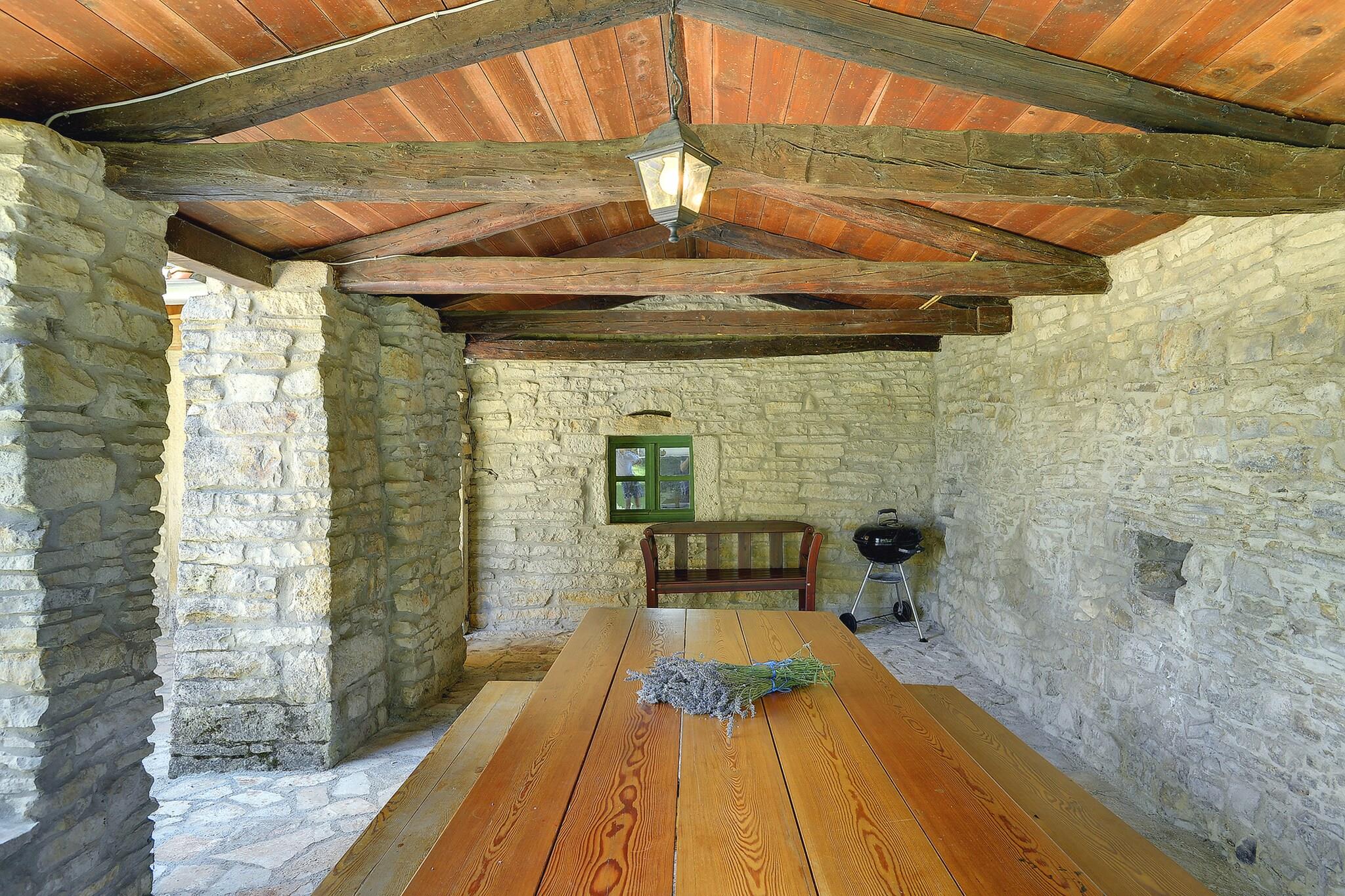 Her kan du virkelig komme væk fra rushen! Dette parcelhus med privat swimmingpool ligger i nærheden af Svetvincenat, 14 km fra nærmeste strand. Du vil have en rummelig indhegnet have med saltvandspool til din rådighed samt en solterrasse med liggestole. Der er også en overdækket terrasse med spisebord, hvor du kan nyde et godt måltid eller en god drink. Du kan ikke lide at lave mad? I nærheden af Limski-kanalen (15 km) kan du få et dejligt måltid i en af restauranterne (fisk). Villa Krase er et rummeligt feriehus med traditionelle stenmure og trælofter. Indretningen er frisk og raffineret . I stueetagen er der et køkken med spisebord og et separat toilet. På første sal finder du to soveværelser og to badeværelser og på loftet er der et tredje soveværelse og et badeværelse. På loftet er der også et åbent soveværelse med 4 futon senge og en sovesofa til 1 person.