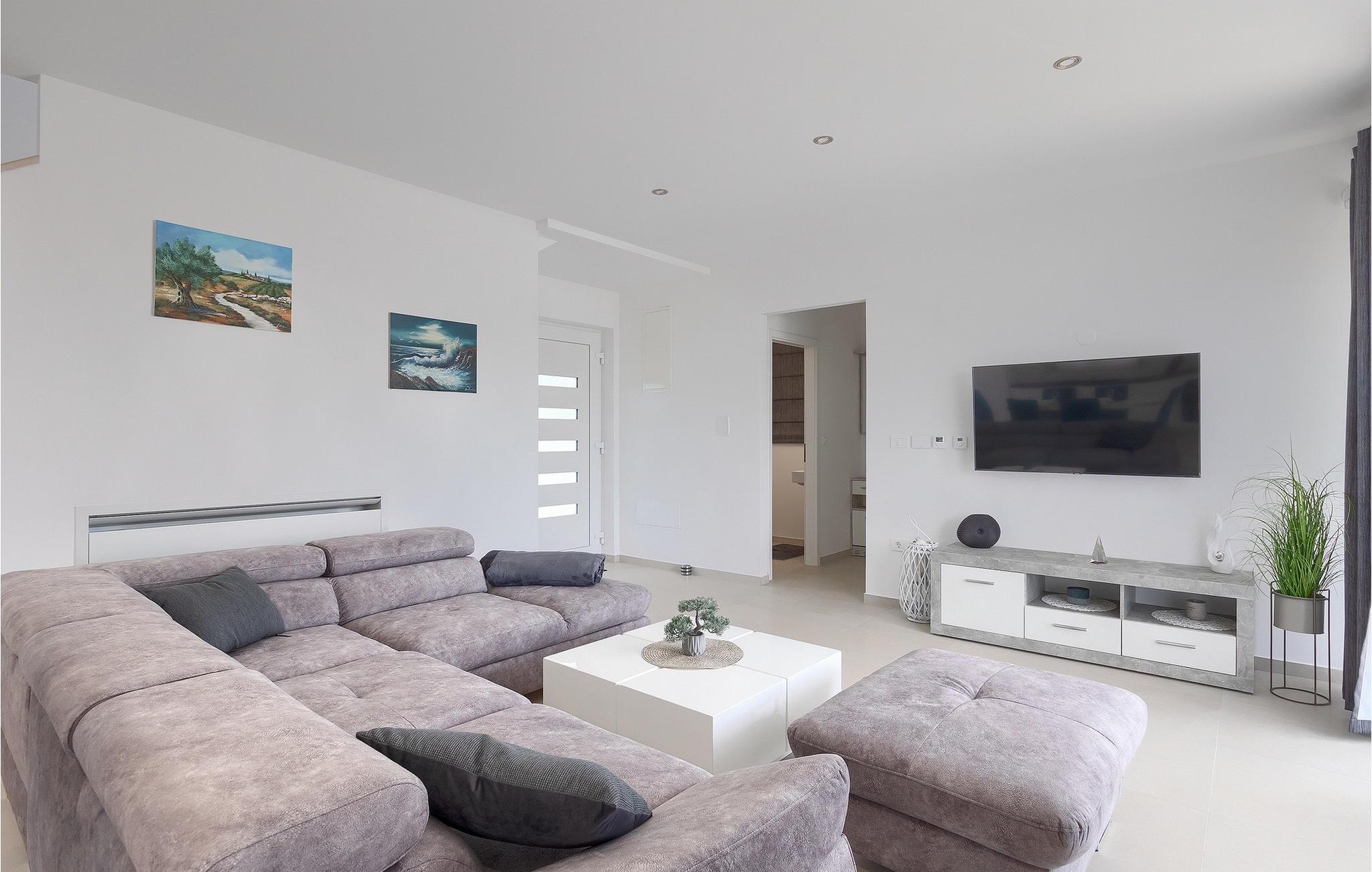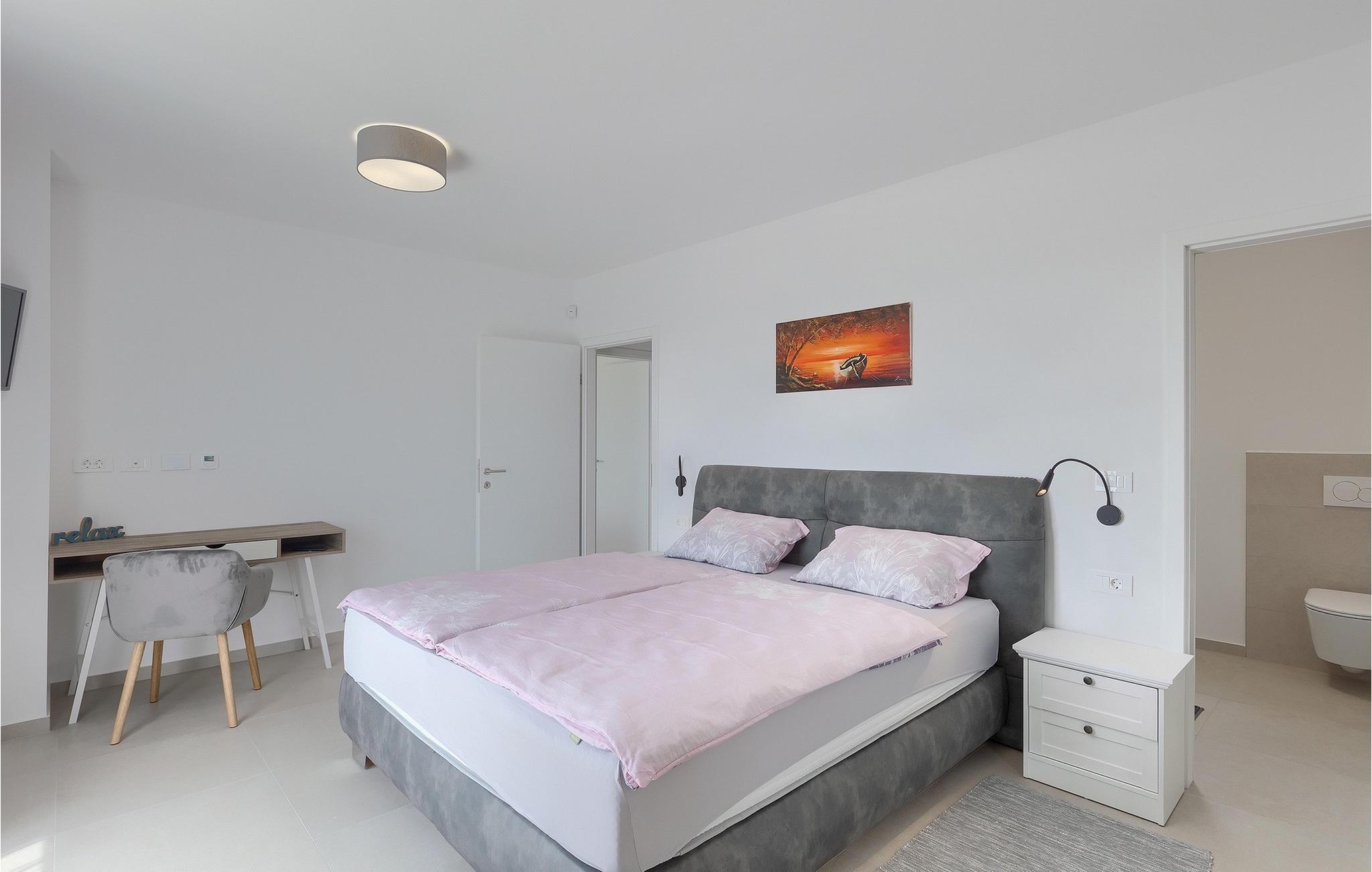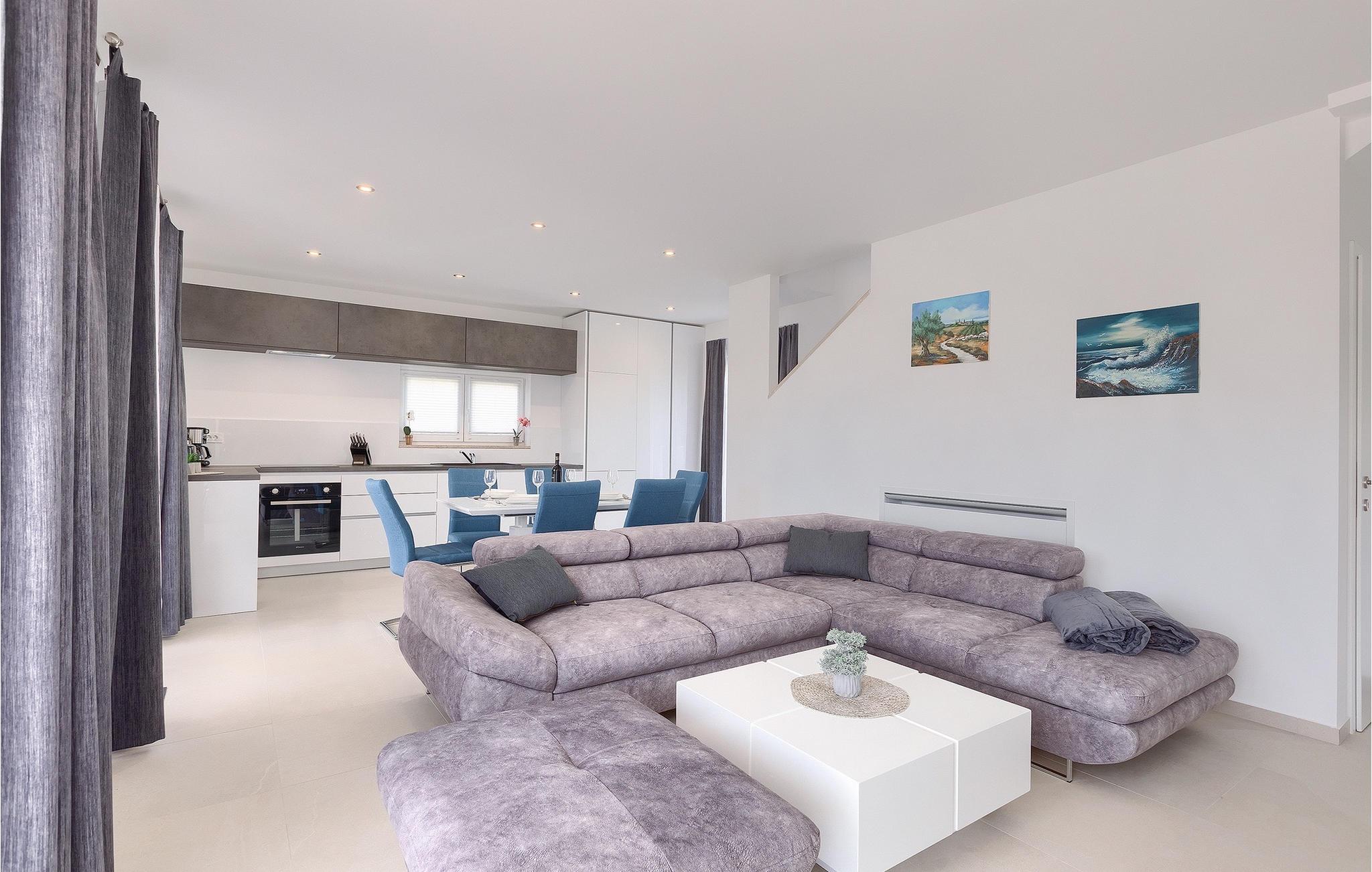 Villa Anamarijas fuldt klimatiserede interiør er lyst og åbent. Den stilfulde opholdsstue består af opholds- og spiseafdeling samt veludstyret moderne køkken og gæstetoilet. På øverste etage lover 2 smarte soveværelser rolige nætter og komfort - hver med en dobbeltseng og eget badeværelse. En altan er det perfekte sted at trække sig tilbage eller se på stjernehimlen om aftenen.