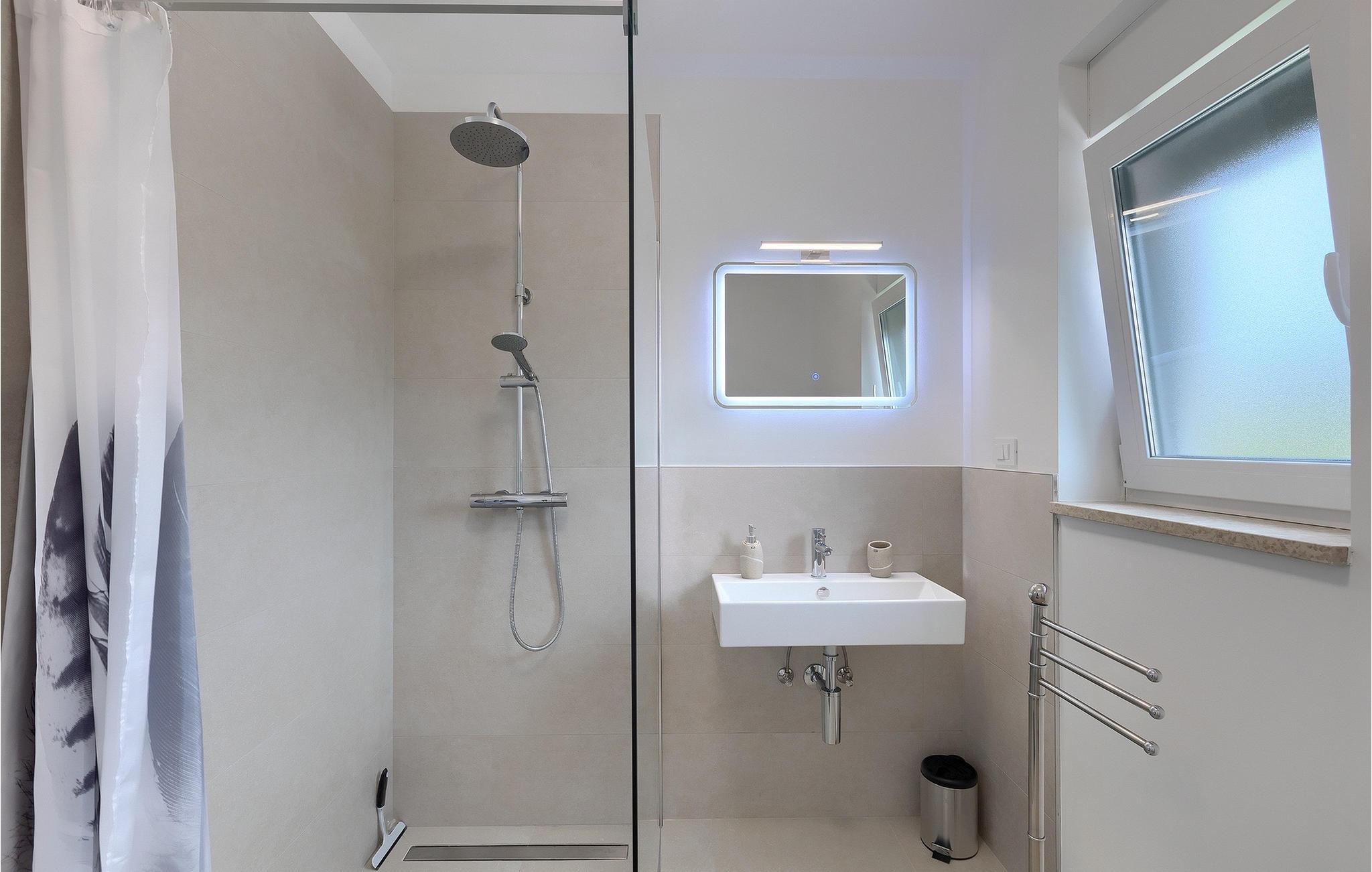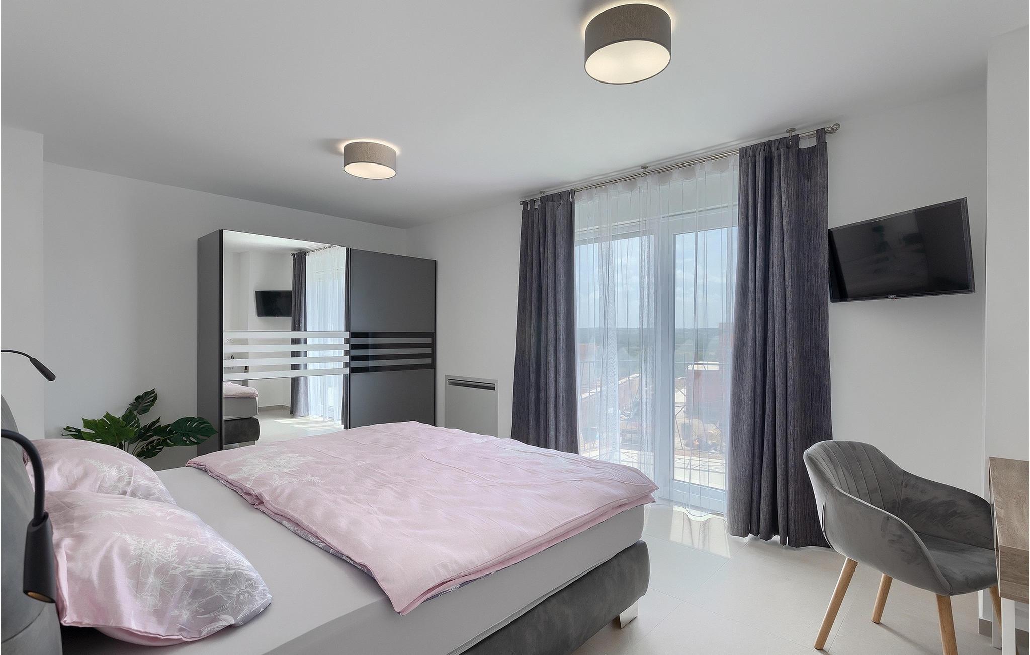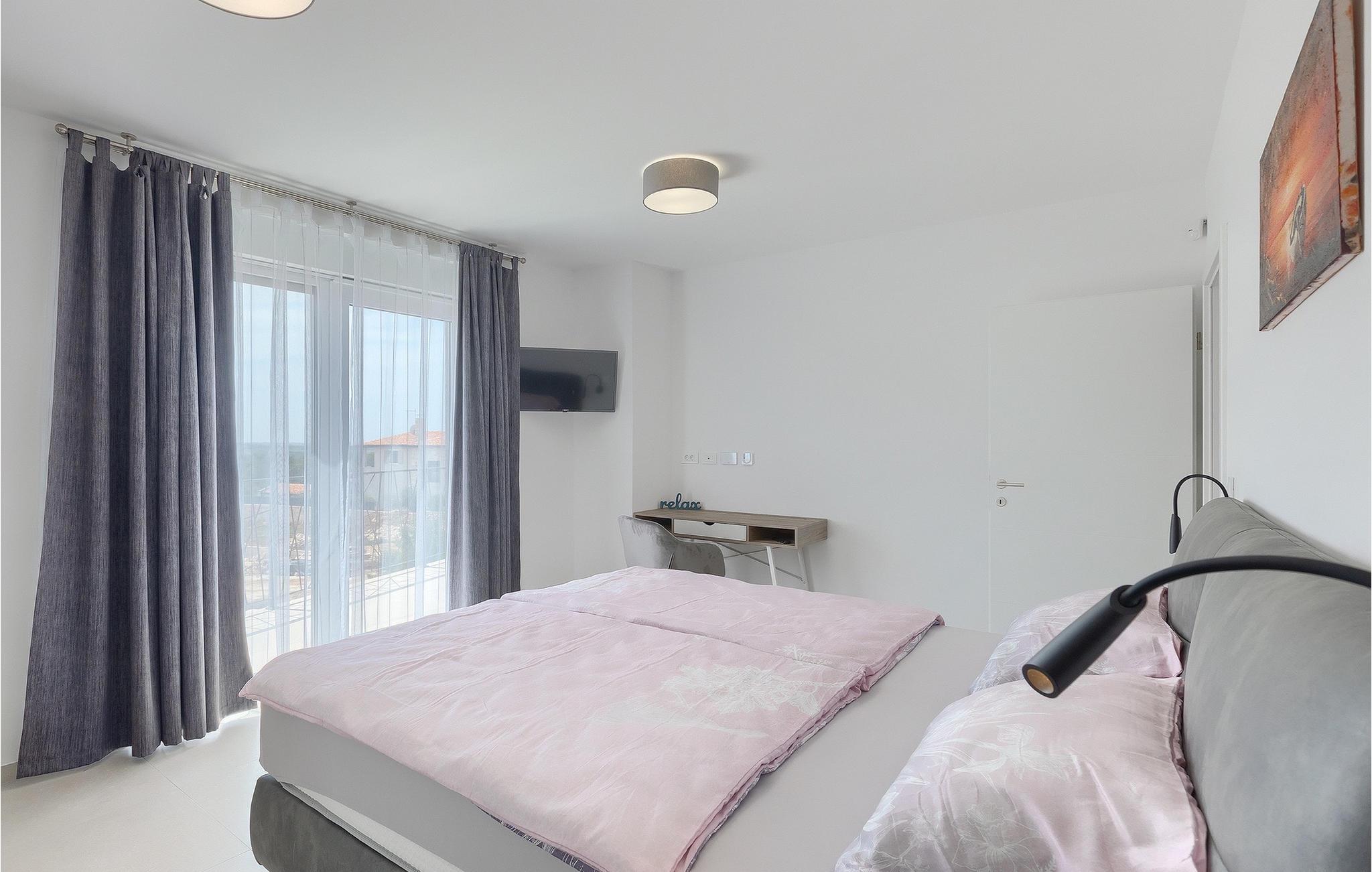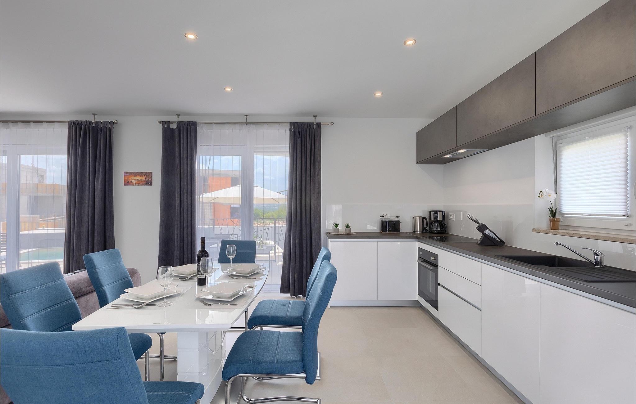 Villa Anamarijas fuldt klimatiserede interiør er lyst og åbent. Den stilfulde opholdsstue består af opholds- og spiseafdeling samt veludstyret moderne køkken og gæstetoilet. På øverste etage lover 2 smarte soveværelser rolige nætter og komfort - hver med en dobbeltseng og eget badeværelse. En altan er det perfekte sted at trække sig tilbage eller se på stjernehimlen om aftenen.