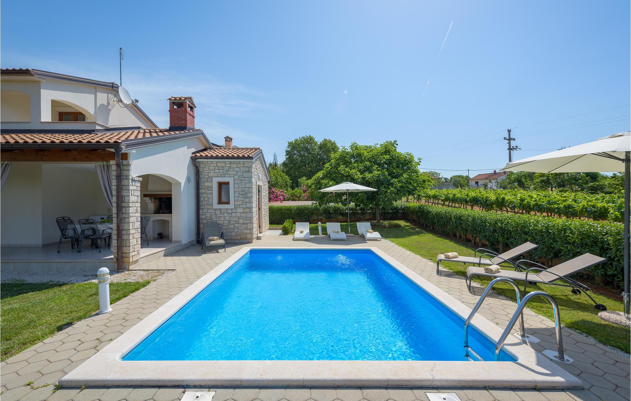 Dette hyggeligt indrettede feriehus med pool ligger i den lille og rolige by Kmacici, nær den lidt større by Tinjan. Tinjan er især kendt for sine fremragende røgede skinker, som er efterspurgt i hele Kroatien. Her kan I nyde en afslappet og komfortabel ferie i et hus, der er indrettet med god smag og med moderne møbler. Her er masser af plads og komfort. I stueplan er der en stor stue, et køkken med spisebord og stole samt et soveværelse og et badeværelse. På første sal er der yderligere to soveværelser og et badeværelse. Forfrisk jer i poolen, der ligger i en dejlig indhegnet have, slap af, og frisk sommerkuløren op i de behagelige liggestole ved poolens kant. Tilbered måltiderne på den gode grill, og tilbring så meget tid som muligt i den friske luft på den overdækkede terrasse. Her kan I hygge jer og få snakket om noget af alt det, som hverdagen ikke giver tid til. På bare femten minutter i bil kommer I til den populære by Porec med badestrande og mange arrangementer sommeren igennem.