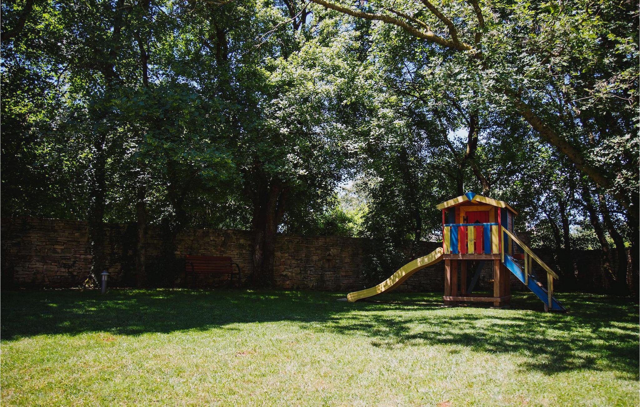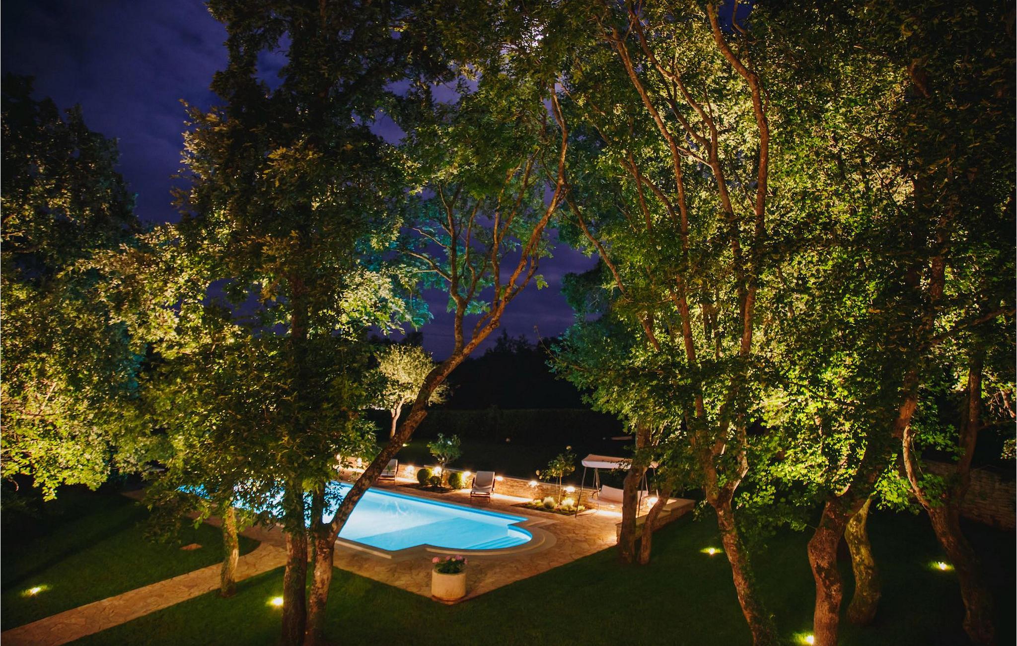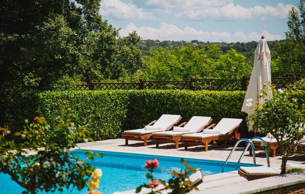 Denne fantastiske luksus stenvilla er bygget til de højeste standarder. Det har en omhyggeligt velplejet have med masser af naturlig skygge og solskin omkring en stor pool med udsigt over landsbyen og kun omgivet af grøn natur. Kun få skridt fra poolen finder du også en overdækket terrasse til udendørs spisning med en grill og en legeplads. Villaen har 4 charmerende indrettede soveværelser og kan rumme op til 8+2 personer i alt. Alle opholdsområder og soveværelser har separat direkte adgang til haven og poolområdet. Inde i stueetagen finder du et stort åbent rum med et fuldt udstyret køkken, en spiseplads og en komfortabel stue. Den rummelige stue har en stor pejs og LCD satellit-tv. Et af soveværelserne er også i stueetagen, mens de andre er ovenpå. Alle soveværelserne er meget rummelige med eget badeværelse og separat aircondition. Der er også bordtennis, indhegnet parkering for op til 4 biler og bredbånds trådløst internet. Regionen er kendt for sin mad, og der er mange fremragende restauranter i nærheden.