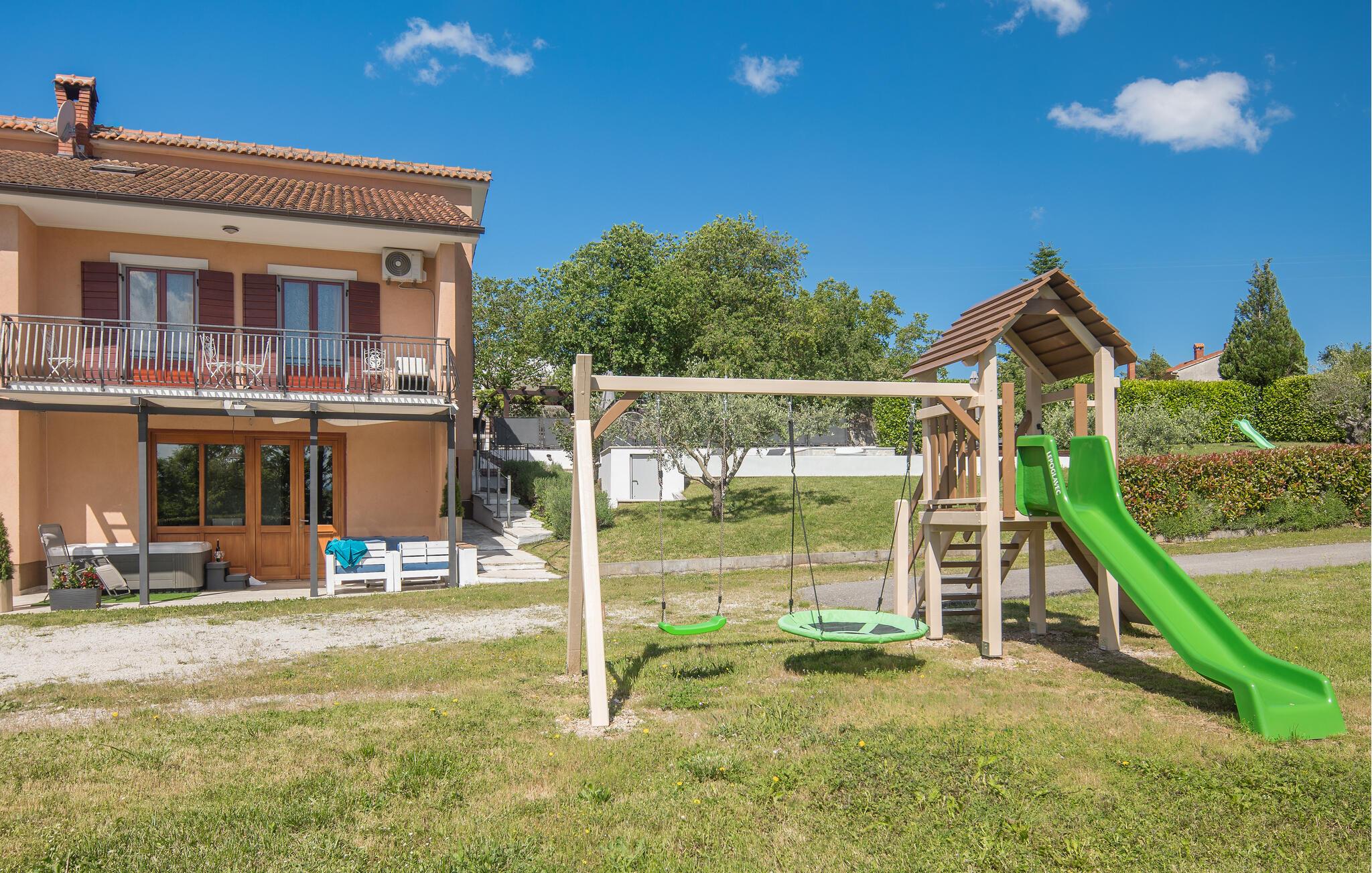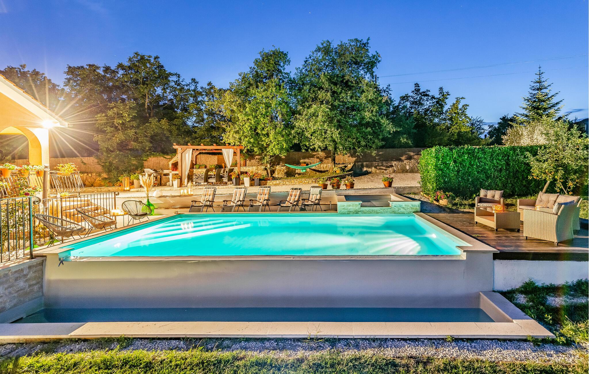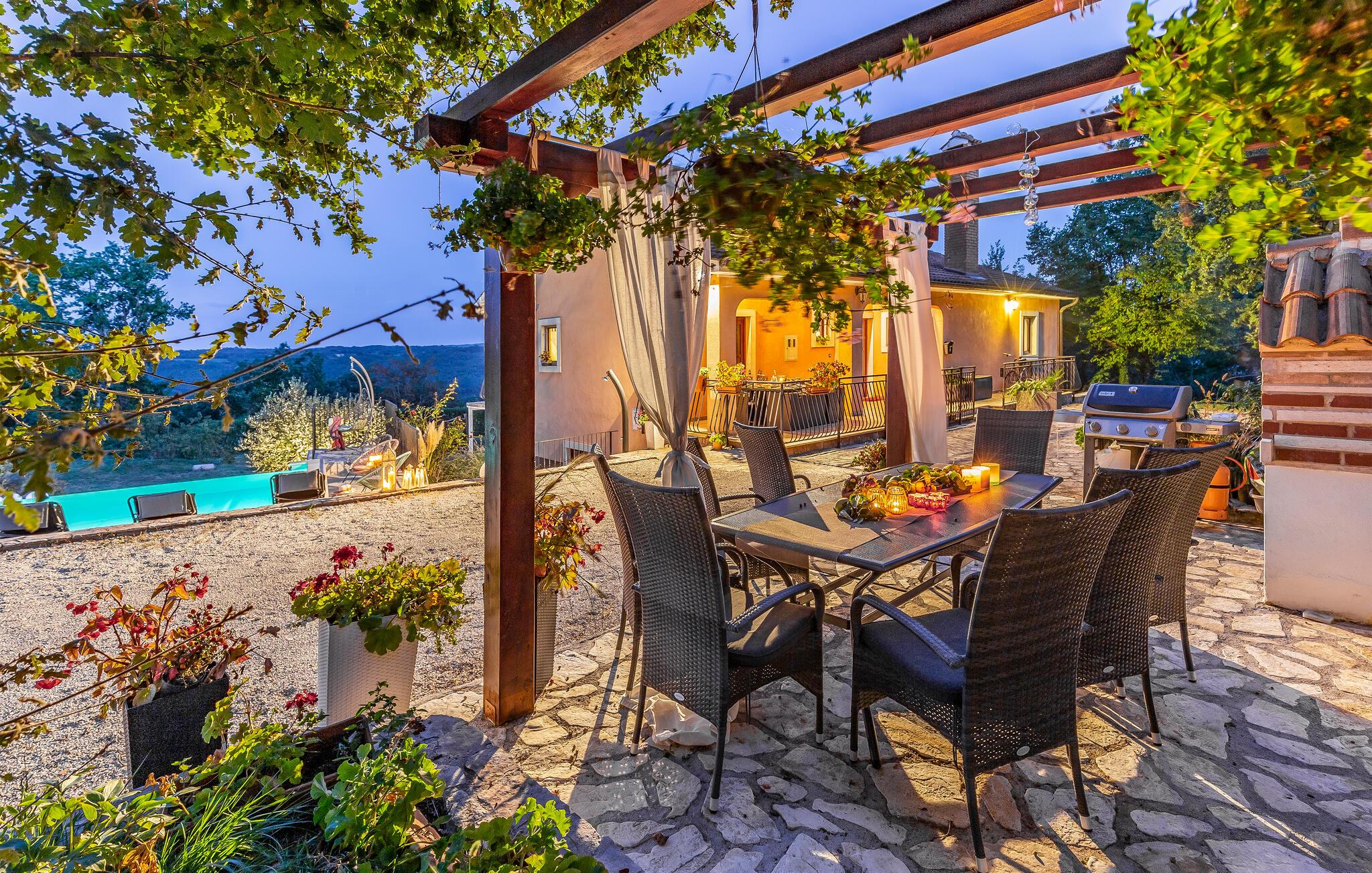 Dette feriehus med pool ligger i den landlige by Picupari, kun nogle minutters kørsel fra Tinjan, en lille by, der især er kendt for landets typiske specialitet "Prsut" (røget og tørret skinke). Fra terrassen har I en vidunderlig udsigt over det omkringliggende landskab og omgivelserne. I retning mod Mellemistrien ligger byen Pazin, som er en af de ældste på halvøen, hvor I kan opleve Kastel Pazin (borgen Pazin) med by- og etnografisk museum. Se også den 130 m dybe Föjba-Kløft eller Pazin-hulen, der skal have inspireret Jules Verne til flere bøger.