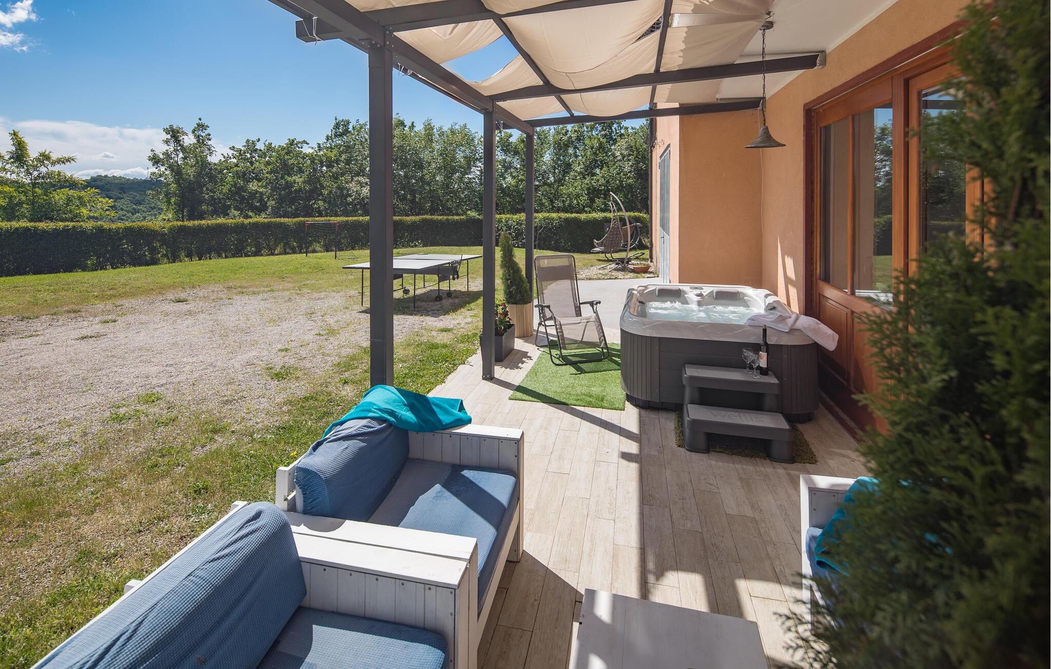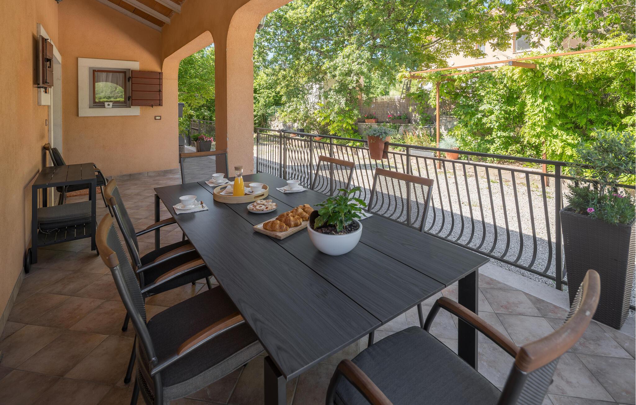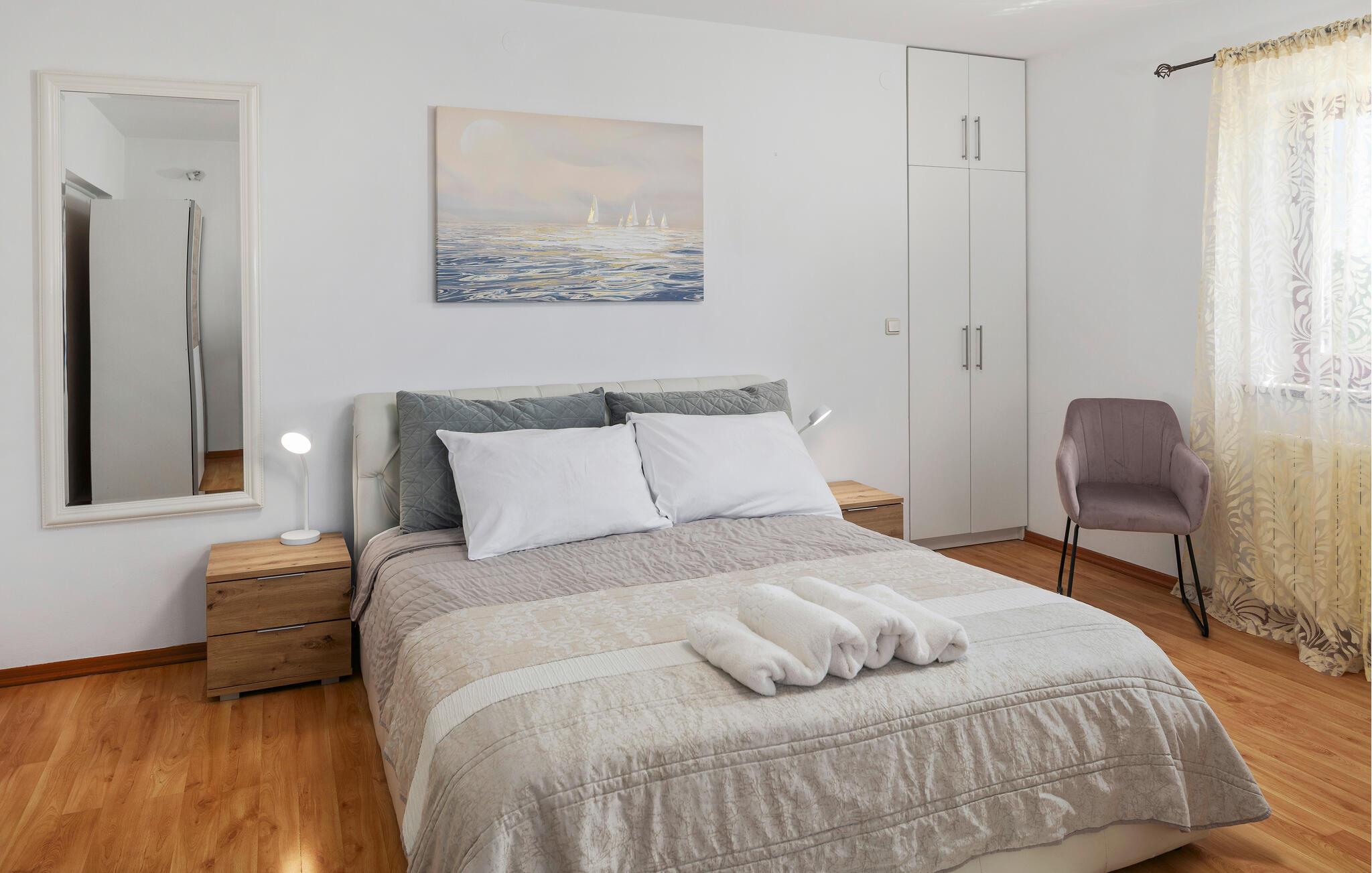 Dette feriehus med pool ligger i den landlige by Picupari, kun nogle minutters kørsel fra Tinjan, en lille by, der især er kendt for landets typiske specialitet "Prsut" (røget og tørret skinke). Fra terrassen har I en vidunderlig udsigt over det omkringliggende landskab og omgivelserne. I retning mod Mellemistrien ligger byen Pazin, som er en af de ældste på halvøen, hvor I kan opleve Kastel Pazin (borgen Pazin) med by- og etnografisk museum. Se også den 130 m dybe Föjba-Kløft eller Pazin-hulen, der skal have inspireret Jules Verne til flere bøger.