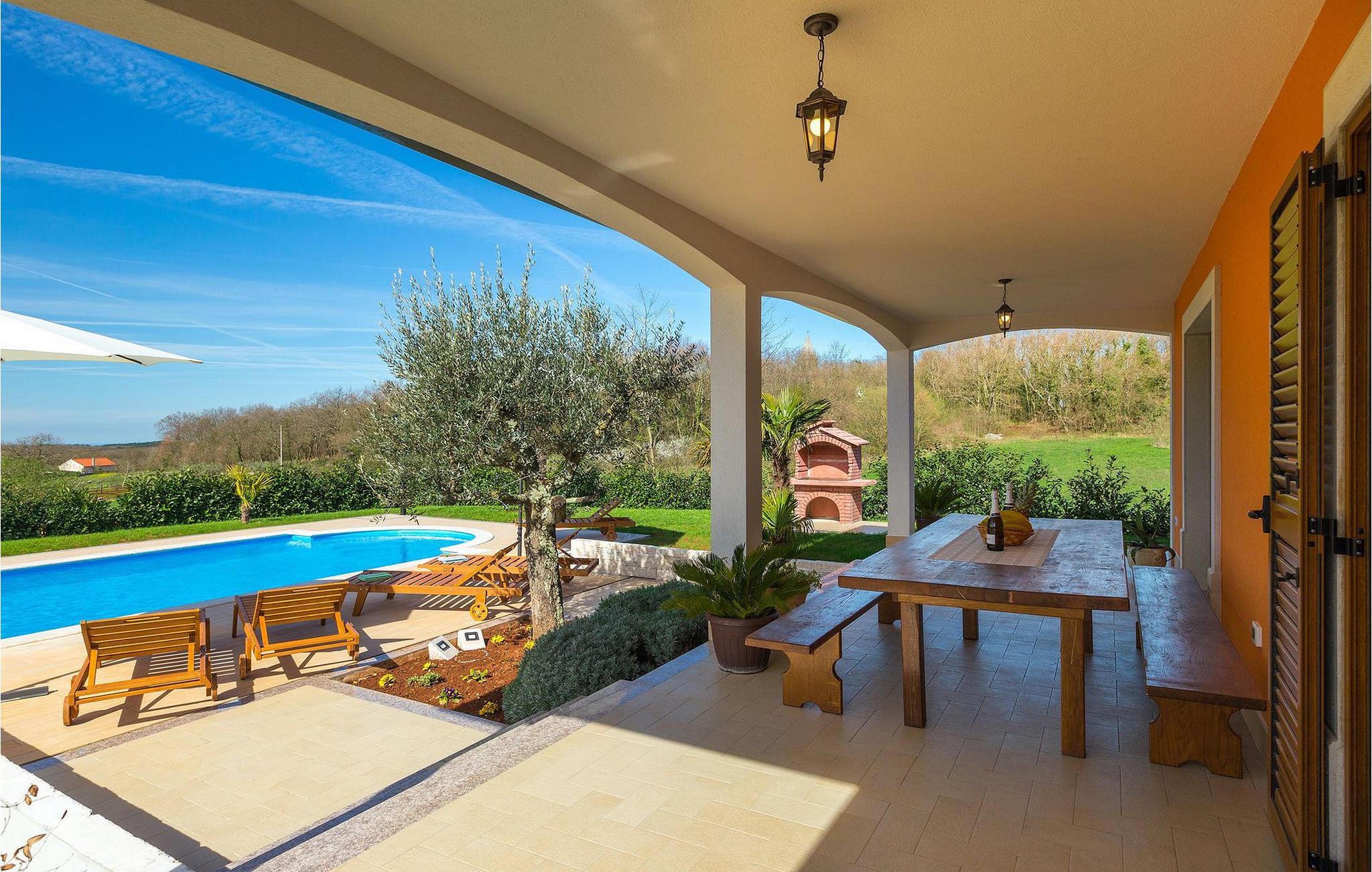 Denne dejlige familievilla, beliggende i en lille landsby i Istrien, er ideel til 6 gæster, da den har 3 soveværelser, men byder på plads til op til 8 gæster takket være den store sovesofa i stuen. Villa Montreo, beliggende på en 600 m2 stor grund, er en perfekt familiebolig; der er en privat pool med liggestole, en kulgrill, en stor have med gynge og rutsjebane til børn og bordfodbold og dart i den nederste etage for mere sjov på din afslappende ferie.