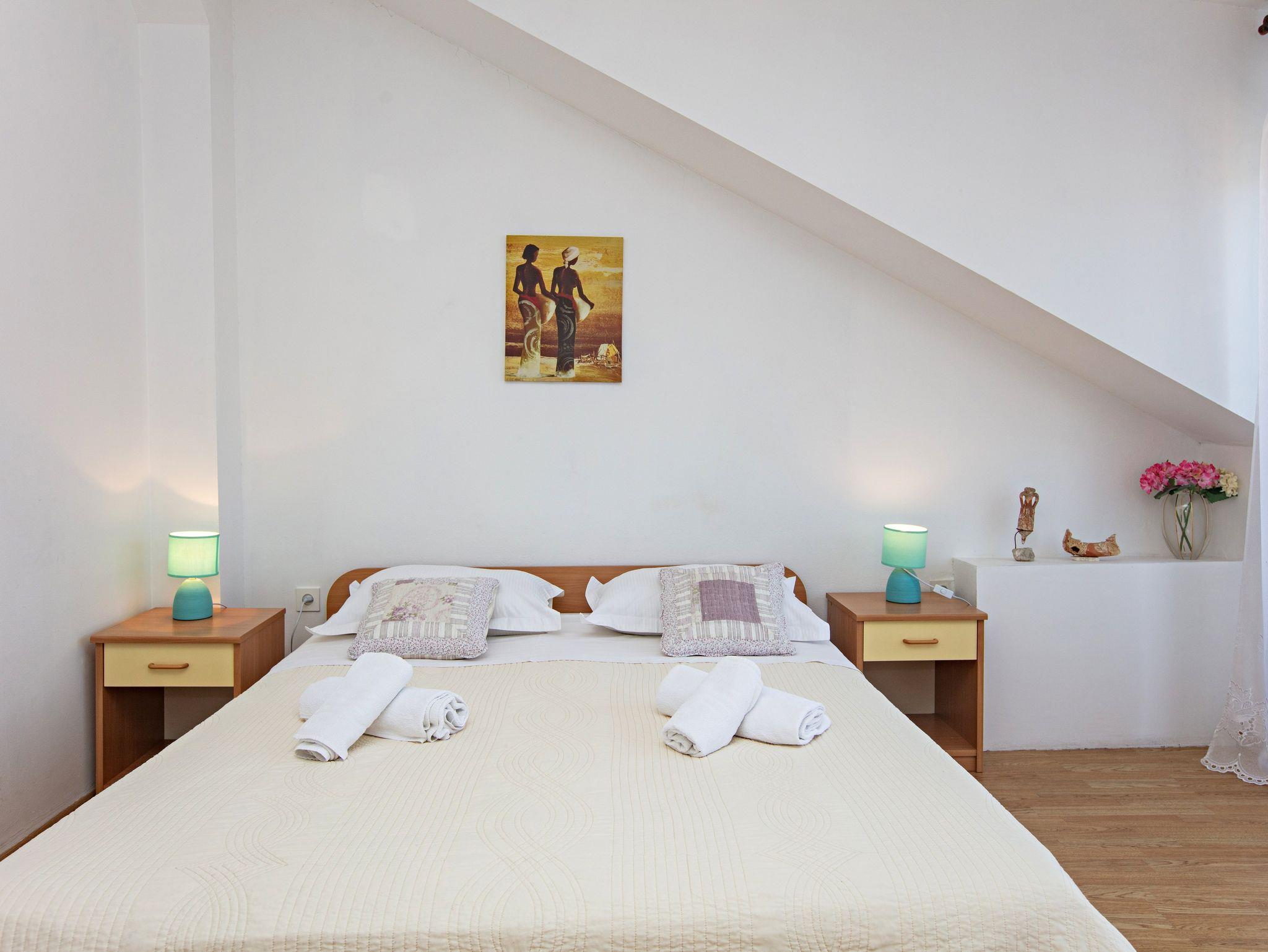 Ferienwohnung bietet Platz für 3 Gäste. Die Betten sind in Schlafzimmern, die es 1 gibt, und in Wohnzimmer, innerhalb einer Gesamtfläche von 34m2, angeordnet. Die Gäste haben einen eigenen Balkon zur Verfügung, auf der sie in warmen Sommernächten genießen können. Das Apartment bietet Meerblick. Es ist erlaubt, Speisen auf dem Gemeinschafts-Grill vorzubereiten. In der Unterkunftseinheit besteht die Möglichkeit des Mitbringens von Haustieren gegen Aufpreis. IM PREIS INBEGRIFFEN: Kurtaxe, Endreinigung, Klimatisierung, Internet, Kinderbett, Föhn. VERBINDLICHE ZUSÄTZLICHE KOSTEN: Aufzahlung für Kurzaufenthalte (prozentualer Zuschlag pro Nächtigungsanzahl: 30% - 1, 20% - 2, 10% - 3). UNVERBINDLICHE ZUSÄTZLICHE KOSTEN: Haustiere (5,00 € pro Nacht). Die Verfügbarkeit zusätzlicher Dienstleistungen in Ihrem reservierten Termin und die Preise derselben (falls nicht aufgeführt) müssen im Voraus überprüft werden. Zusätzliche Dienstleistungen die in der Zahlungsaufforderung nicht aufgeführt sind werden direkt beim Vermieter bezahlt, angenommen der Gast nutzt auch diese.