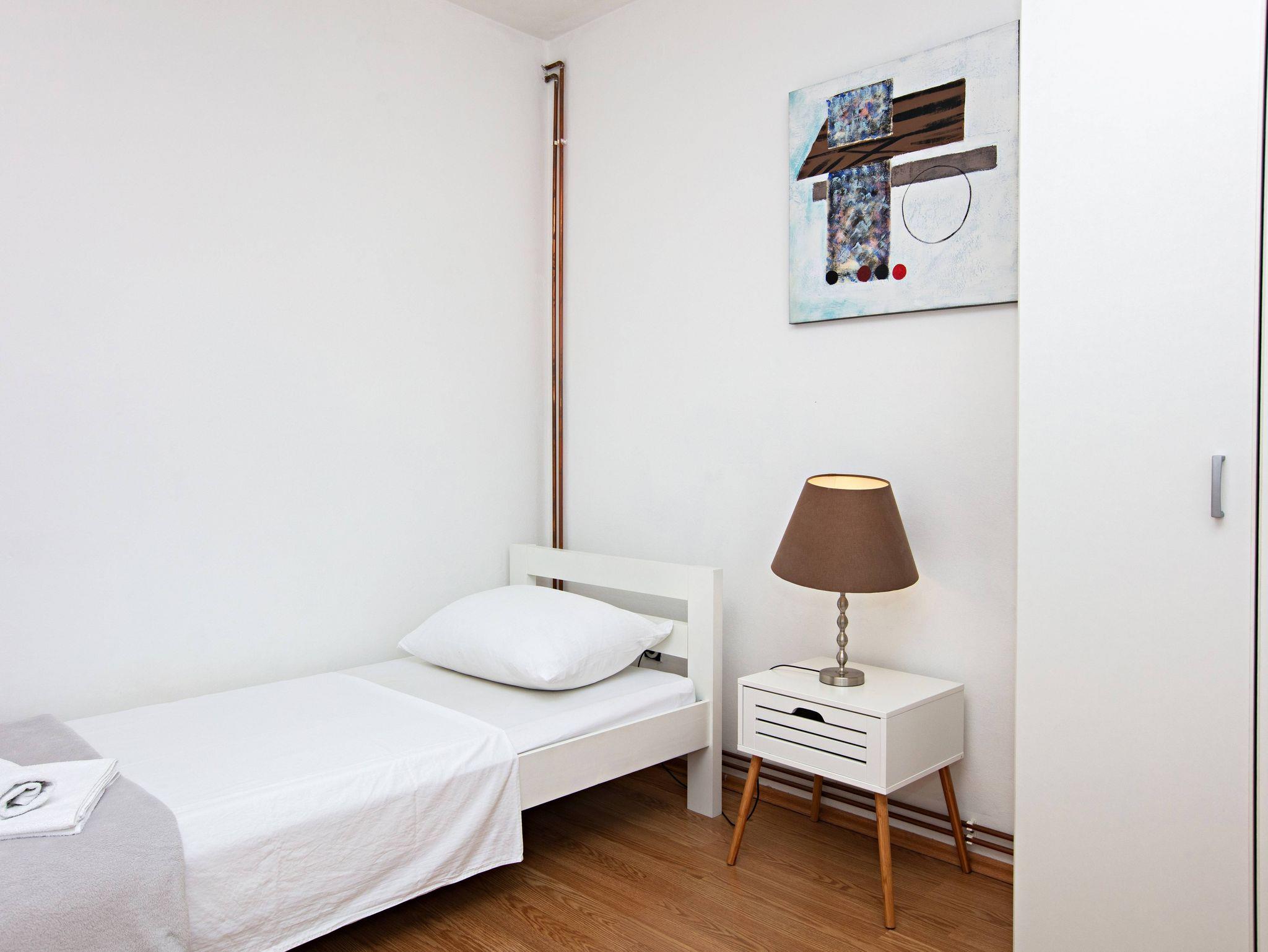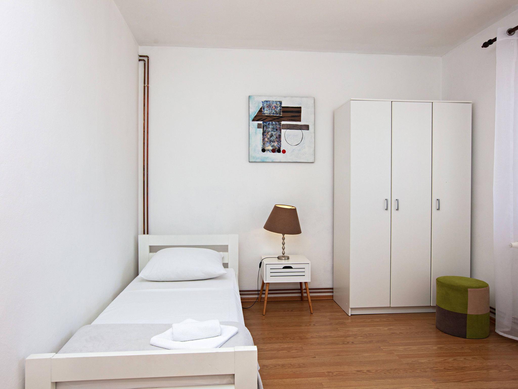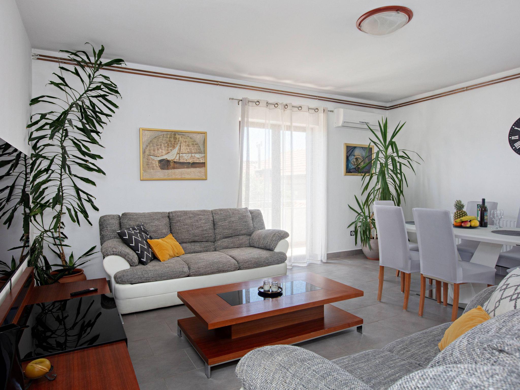 Ferienwohnung bietet Platz für 6 Gäste. Die Betten sind in Schlafzimmern, die es 3 gibt, innerhalb einer Gesamtfläche von 84m2, angeordnet. Die Gäste haben eine eigene Terrasse zur Verfügung, auf der sie in warmen Sommernächten genießen können. Das Apartment bietet Meerblick. Es ist erlaubt, Speisen auf dem Gemeinschafts-Grill vorzubereiten. In der Unterkunftseinheit besteht die Möglichkeit des Mitbringens von Haustieren gegen Aufpreis. IM PREIS INBEGRIFFEN: Kurtaxe, Endreinigung, Klimatisierung, Zentralheizung, Parkplatz, Internet, Wäschewaschen, Bootsanlegeplatz, Bügeleisen, Bügelbrett, Föhn. VERBINDLICHE ZUSÄTZLICHE KOSTEN: Aufzahlung für Kurzaufenthalte (prozentualer Zuschlag pro Nächtigungsanzahl: 30% - 1, 20% - 2, 10% - 3). UNVERBINDLICHE ZUSÄTZLICHE KOSTEN: Haustiere (5,00 € pro Nacht). Die Verfügbarkeit zusätzlicher Dienstleistungen in Ihrem reservierten Termin und die Preise derselben (falls nicht aufgeführt) müssen im Voraus überprüft werden. Zusätzliche Dienstleistungen die in der Zahlungsaufforderung nicht aufgeführt sind werden direkt beim Vermieter bezahlt, angenommen der Gast nutzt auch diese. Ermäßigung auf den Grundpreis: Gratistag 14=13 (bei einem Aufenthalt von 14 Tagen oder mehr erhalten Sie einen Gratistag für den Aufenthalt bis 31.12.26).