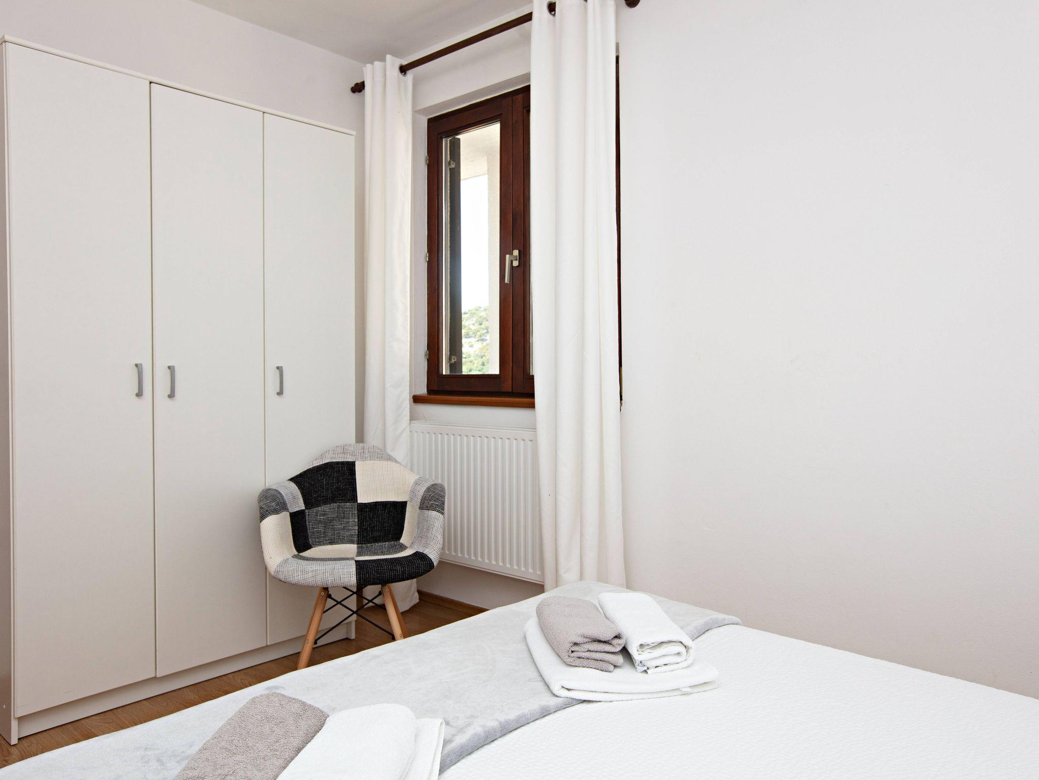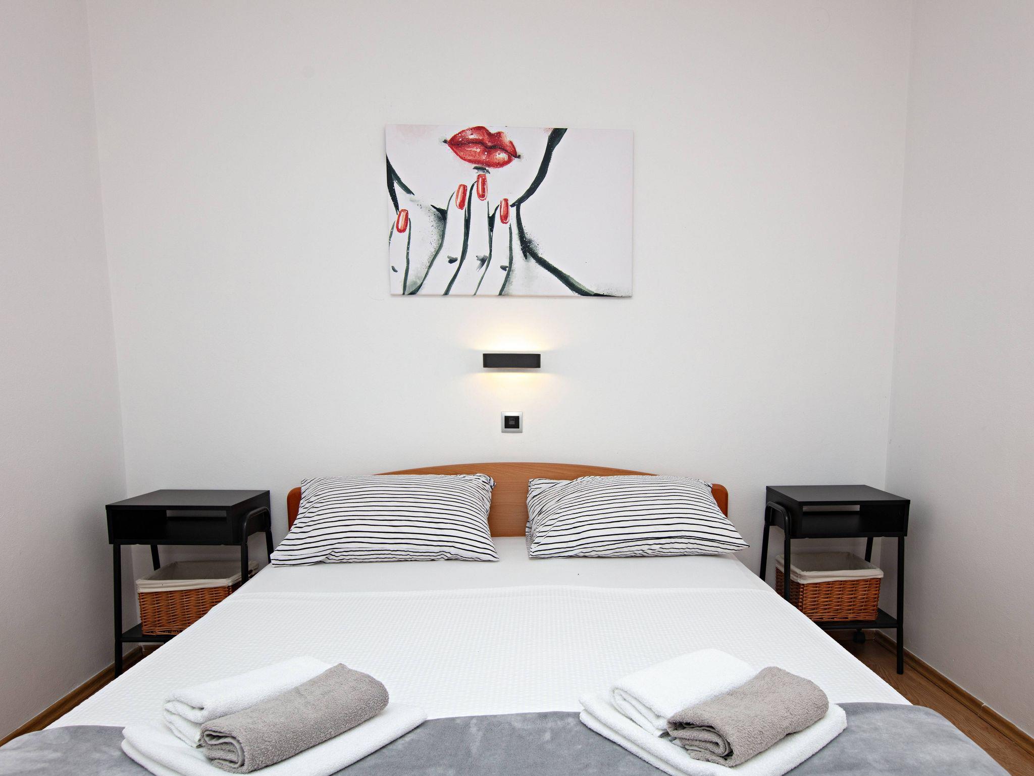 Ferienwohnung bietet Platz für 2 Gäste. Die Betten sind in Schlafzimmern, die es 1 gibt, innerhalb einer Gesamtfläche von 37m2, angeordnet. Die Gäste haben einen eigenen Balkon zur Verfügung, auf der sie in warmen Sommernächten genießen können. Das Apartment bietet Meerblick. Es ist erlaubt, Speisen auf dem Gemeinschafts-Grill vorzubereiten. In der Unterkunftseinheit besteht die Möglichkeit des Mitbringens von Haustieren gegen Aufpreis. IM PREIS INBEGRIFFEN: Kurtaxe, Endreinigung, Klimatisierung, Zentralheizung, Parkplatz, Internet, Wäschewaschen, Bootsanlegeplatz, Bügeleisen, Bügelbrett, Föhn. VERBINDLICHE ZUSÄTZLICHE KOSTEN: Aufzahlung für Kurzaufenthalte (prozentualer Zuschlag pro Nächtigungsanzahl: 30% - 1, 20% - 2, 10% - 3). UNVERBINDLICHE ZUSÄTZLICHE KOSTEN: Haustiere (5,00 € pro Nacht). Die Verfügbarkeit zusätzlicher Dienstleistungen in Ihrem reservierten Termin und die Preise derselben (falls nicht aufgeführt) müssen im Voraus überprüft werden. Zusätzliche Dienstleistungen die in der Zahlungsaufforderung nicht aufgeführt sind werden direkt beim Vermieter bezahlt, angenommen der Gast nutzt auch diese. Ermäßigung auf den Grundpreis: Gratistag 14=13 (bei einem Aufenthalt von 14 Tagen oder mehr erhalten Sie einen Gratistag für den Aufenthalt bis 31.12.26).
