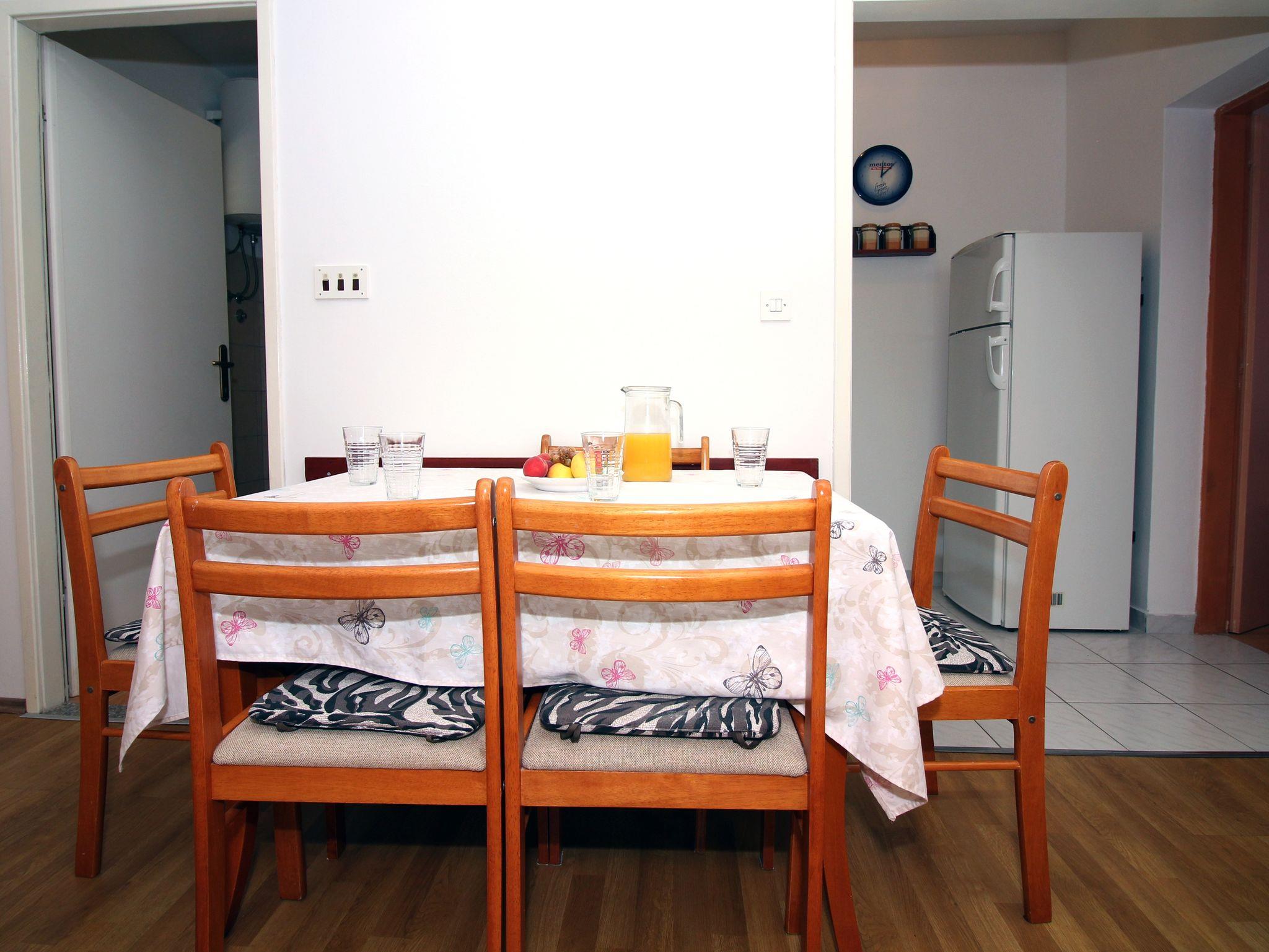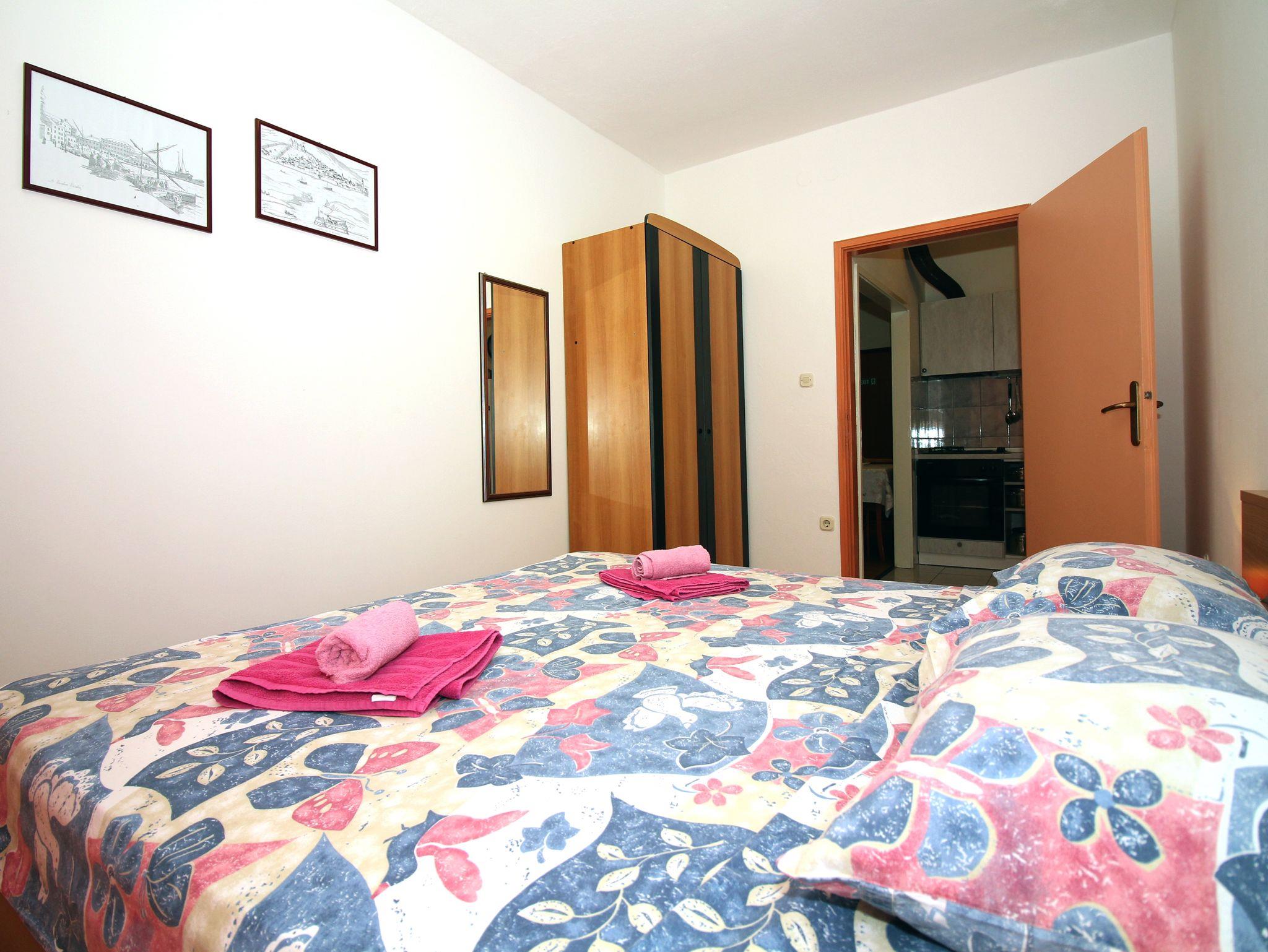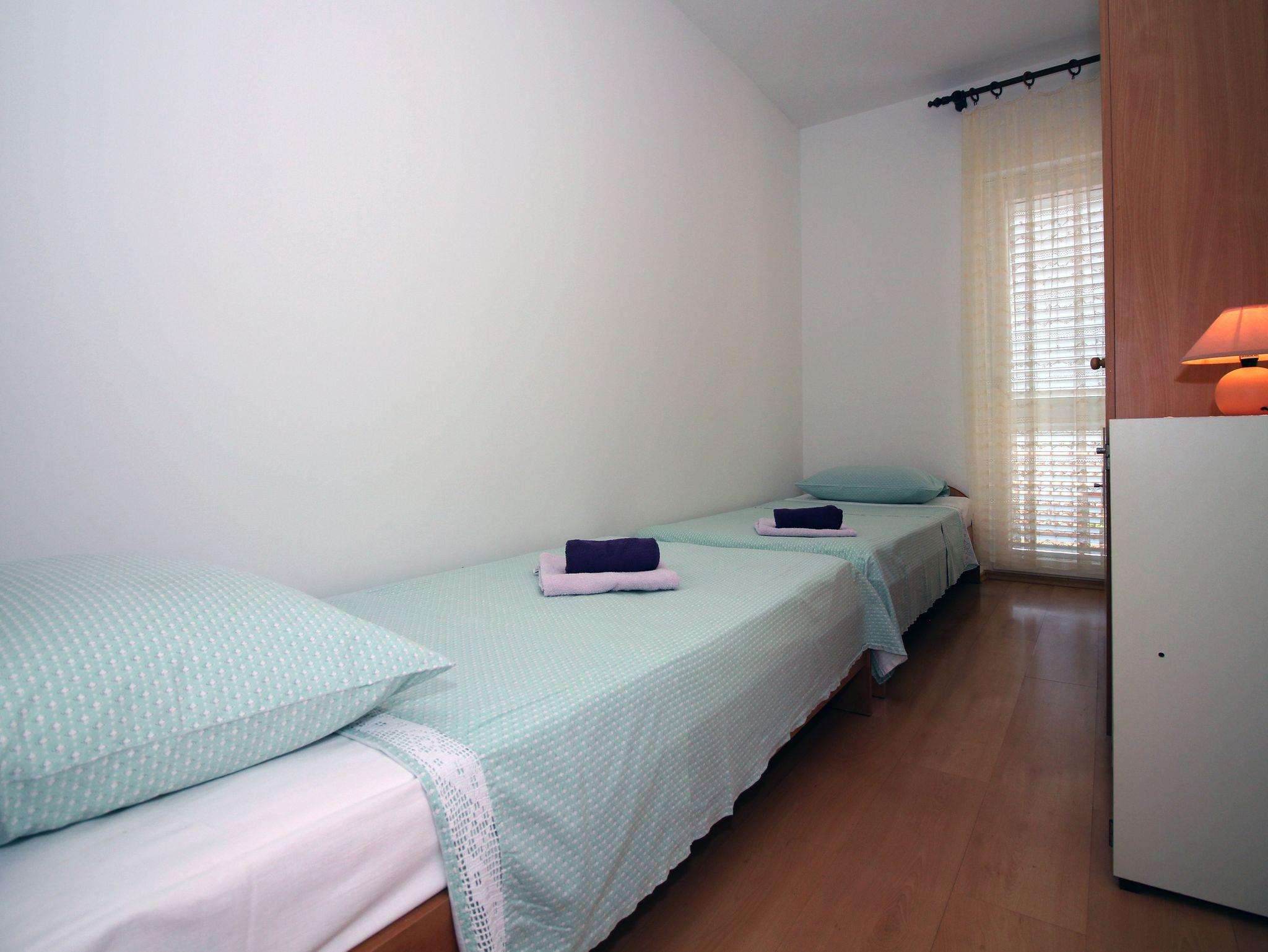 Ferienwohnung bietet Platz für 4 Gäste. Die Betten sind in Schlafzimmern, die es 2 gibt, innerhalb einer Gesamtfläche von 41m2, angeordnet. Die Gäste haben eine eigene Terrasse zur Verfügung, auf der sie in warmen Sommernächten genießen können. Das Apartment bietet Meerblick. Es ist erlaubt, Speisen auf dem Gemeinschafts-Grill vorzubereiten. In der Unterkunftseinheit besteht die Möglichkeit des Mitbringens von Haustieren gegen Aufpreis. IM PREIS INBEGRIFFEN: Kurtaxe, Endreinigung, Klimatisierung, Internet, Bootsanlegeplatz, Bügeleisen, Föhn. VERBINDLICHE ZUSÄTZLICHE KOSTEN: Aufzahlung für Kurzaufenthalte (prozentualer Zuschlag pro Nächtigungsanzahl: 30% - 1, 20% - 2, 10% - 3). UNVERBINDLICHE ZUSÄTZLICHE KOSTEN: Haustiere (5,00 € pro Nacht). Die Verfügbarkeit zusätzlicher Dienstleistungen in Ihrem reservierten Termin und die Preise derselben (falls nicht aufgeführt) müssen im Voraus überprüft werden. Zusätzliche Dienstleistungen die in der Zahlungsaufforderung nicht aufgeführt sind werden direkt beim Vermieter bezahlt, angenommen der Gast nutzt auch diese. Ermäßigung auf den Grundpreis: Gratistag 14=13 (bei einem Aufenthalt von 14 Tagen oder mehr erhalten Sie einen Gratistag für den Aufenthalt bis 31.12.26).
