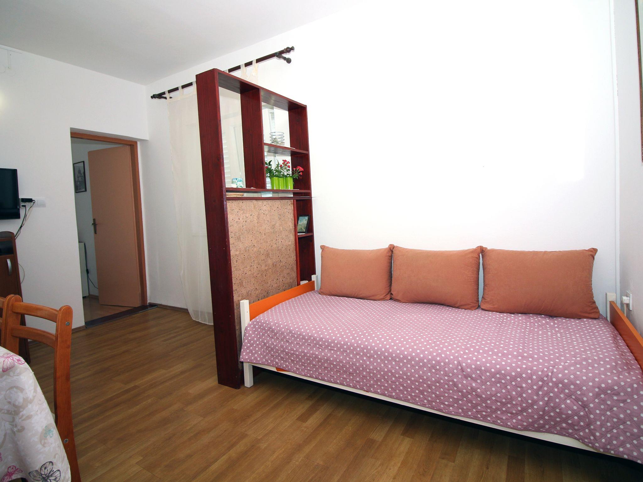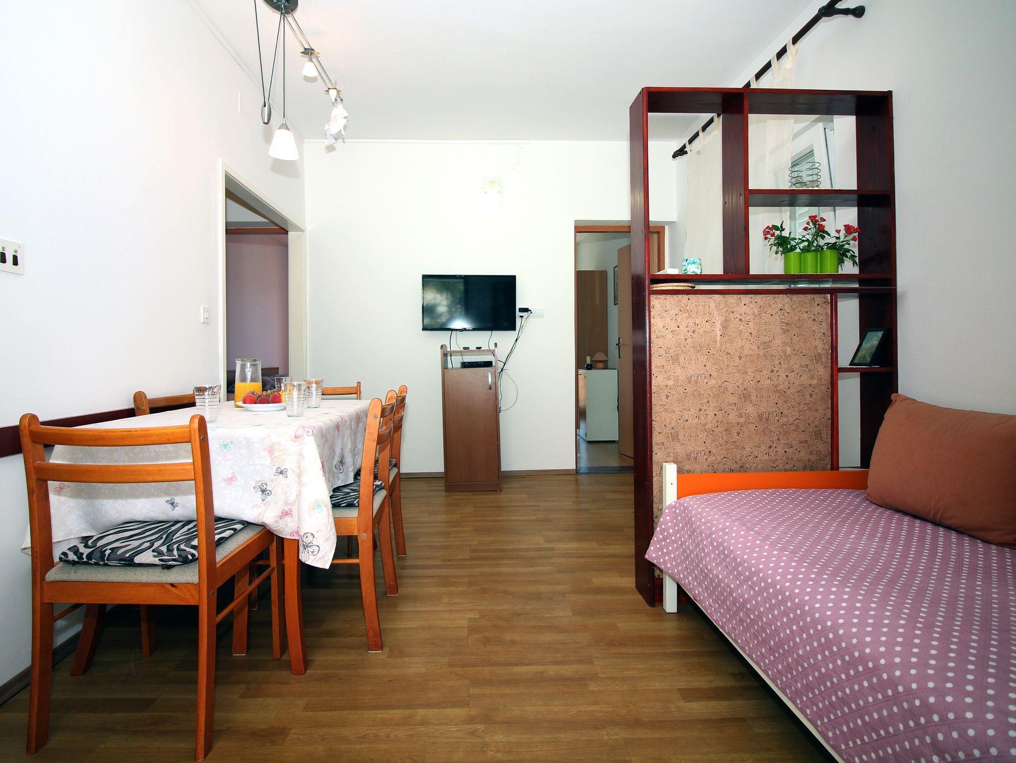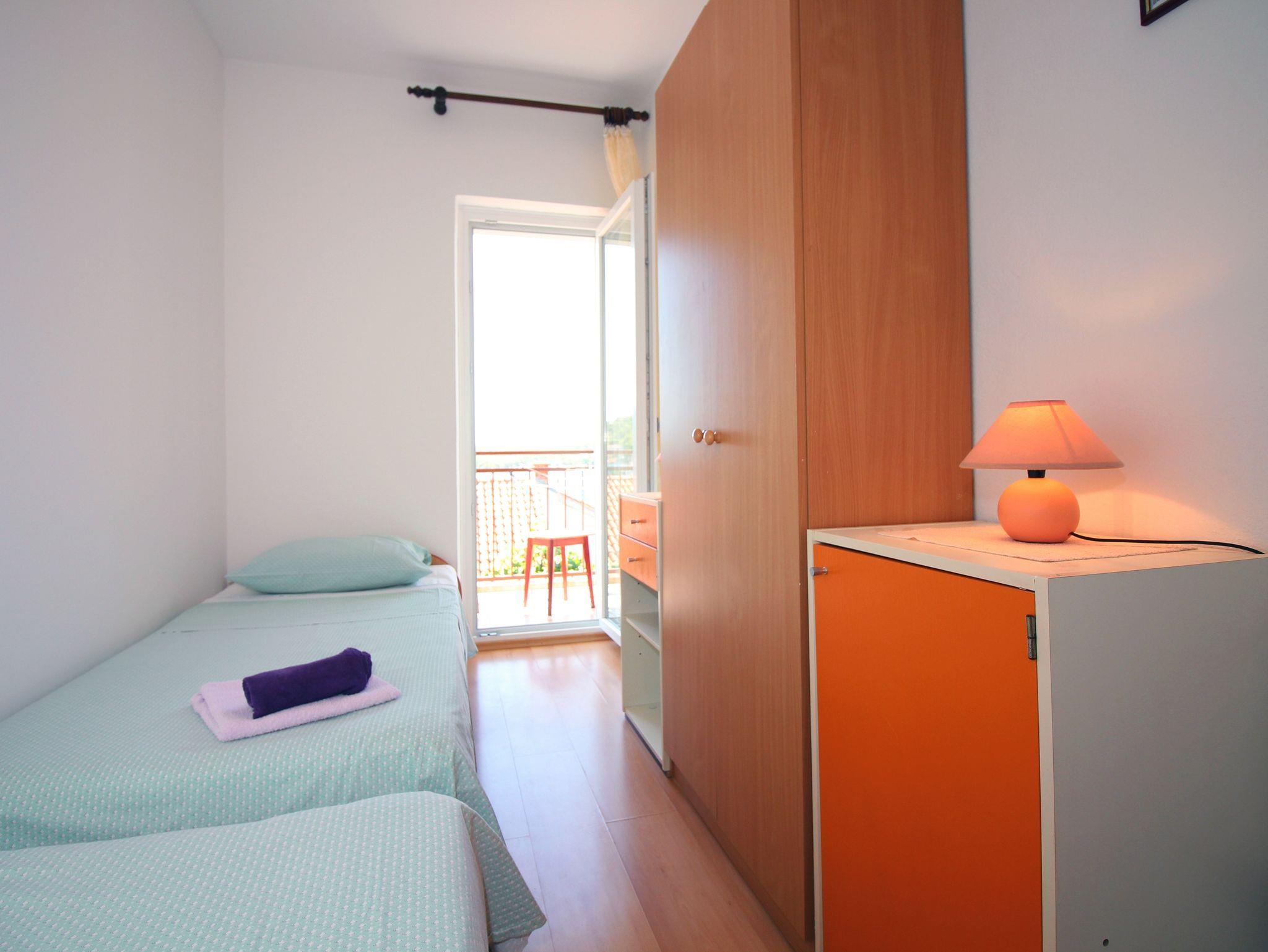 Ferienwohnung bietet Platz für 4 Gäste. Die Betten sind in Schlafzimmern, die es 2 gibt, innerhalb einer Gesamtfläche von 41m2, angeordnet. Die Gäste haben eine eigene Terrasse zur Verfügung, auf der sie in warmen Sommernächten genießen können. Das Apartment bietet Meerblick. Es ist erlaubt, Speisen auf dem Gemeinschafts-Grill vorzubereiten. In der Unterkunftseinheit besteht die Möglichkeit des Mitbringens von Haustieren gegen Aufpreis. IM PREIS INBEGRIFFEN: Kurtaxe, Endreinigung, Klimatisierung, Internet, Bootsanlegeplatz, Bügeleisen, Föhn. VERBINDLICHE ZUSÄTZLICHE KOSTEN: Aufzahlung für Kurzaufenthalte (prozentualer Zuschlag pro Nächtigungsanzahl: 30% - 1, 20% - 2, 10% - 3). UNVERBINDLICHE ZUSÄTZLICHE KOSTEN: Haustiere (5,00 € pro Nacht). Die Verfügbarkeit zusätzlicher Dienstleistungen in Ihrem reservierten Termin und die Preise derselben (falls nicht aufgeführt) müssen im Voraus überprüft werden. Zusätzliche Dienstleistungen die in der Zahlungsaufforderung nicht aufgeführt sind werden direkt beim Vermieter bezahlt, angenommen der Gast nutzt auch diese. Ermäßigung auf den Grundpreis: Gratistag 14=13 (bei einem Aufenthalt von 14 Tagen oder mehr erhalten Sie einen Gratistag für den Aufenthalt bis 31.12.26).