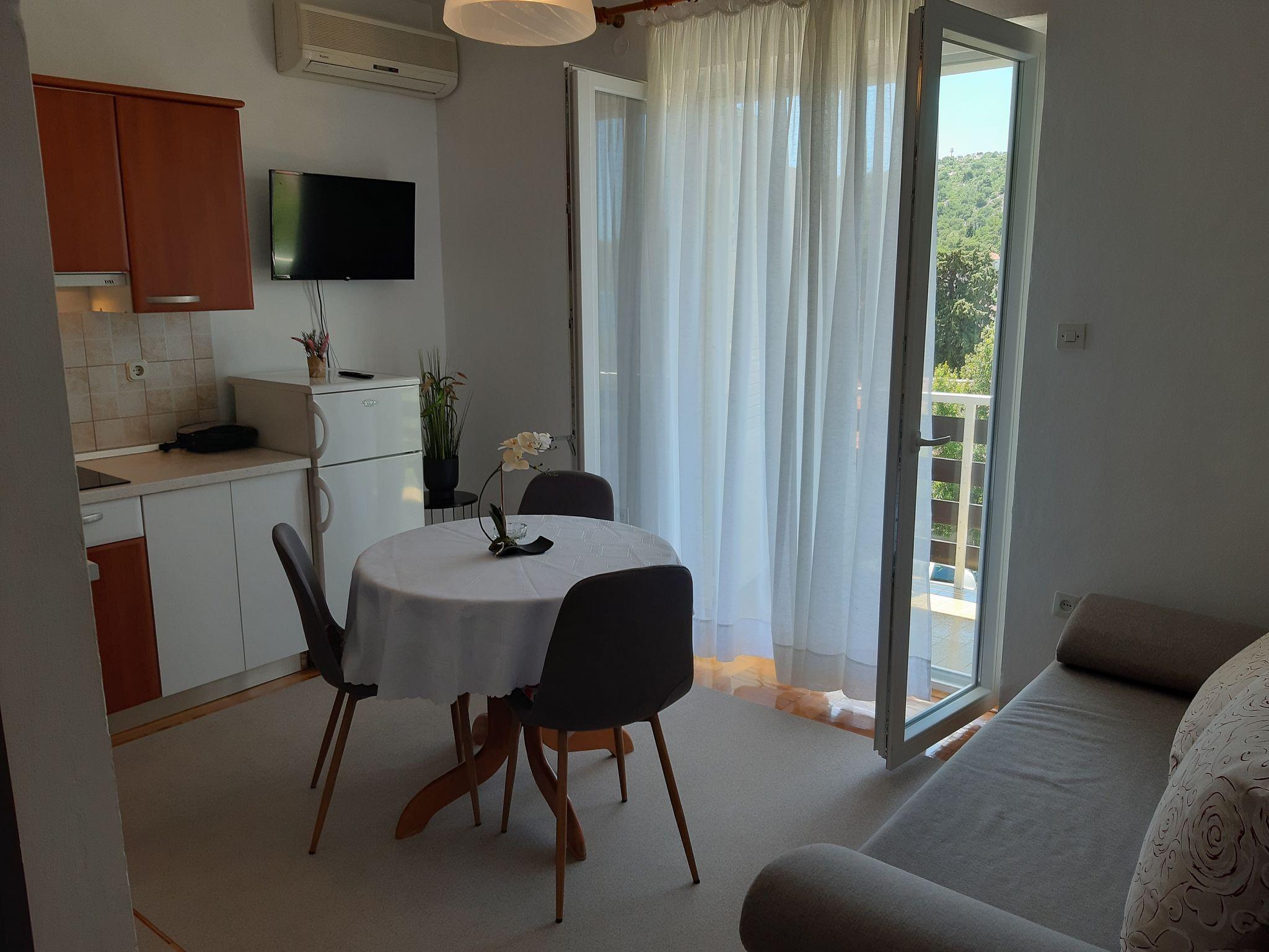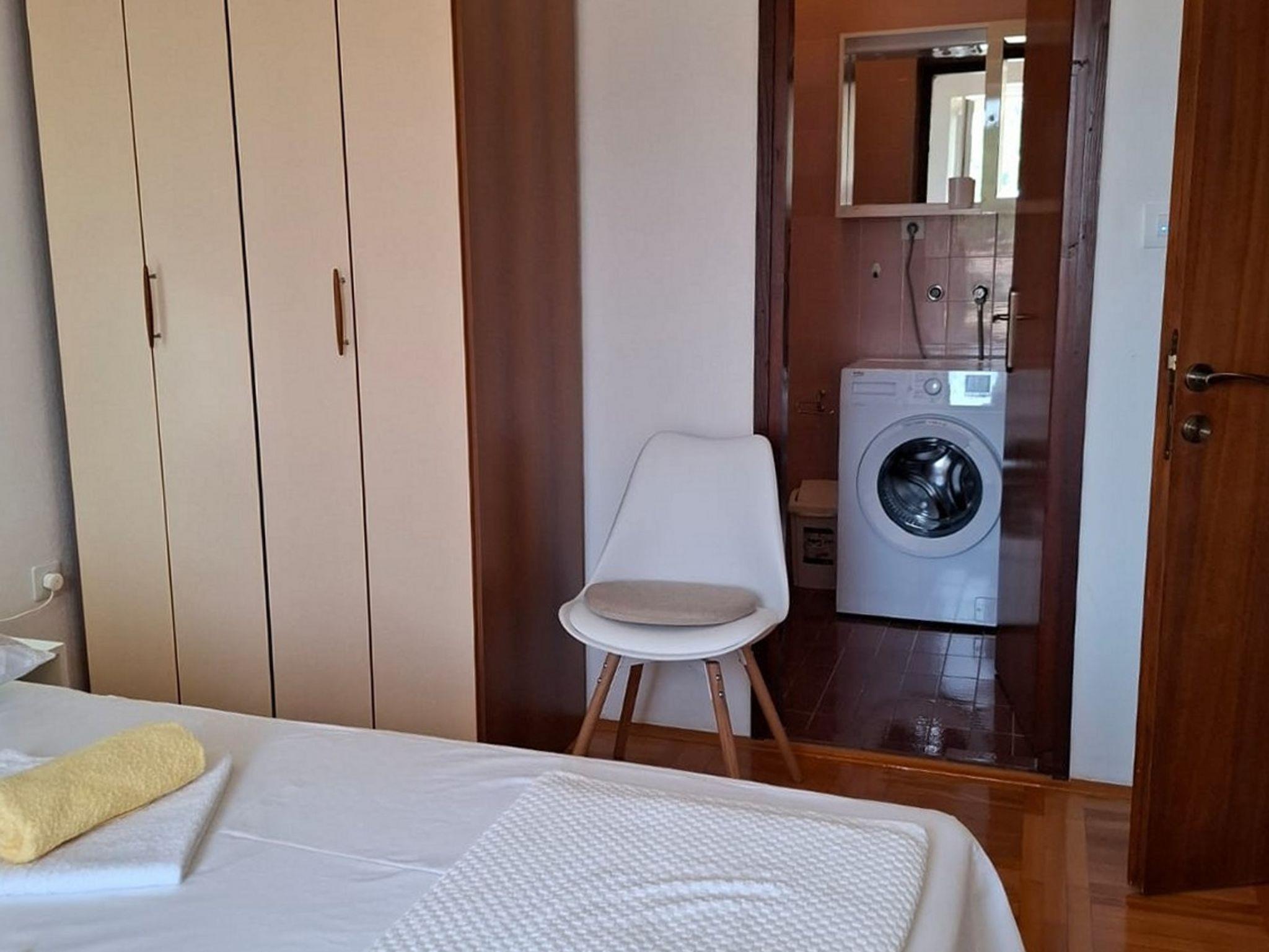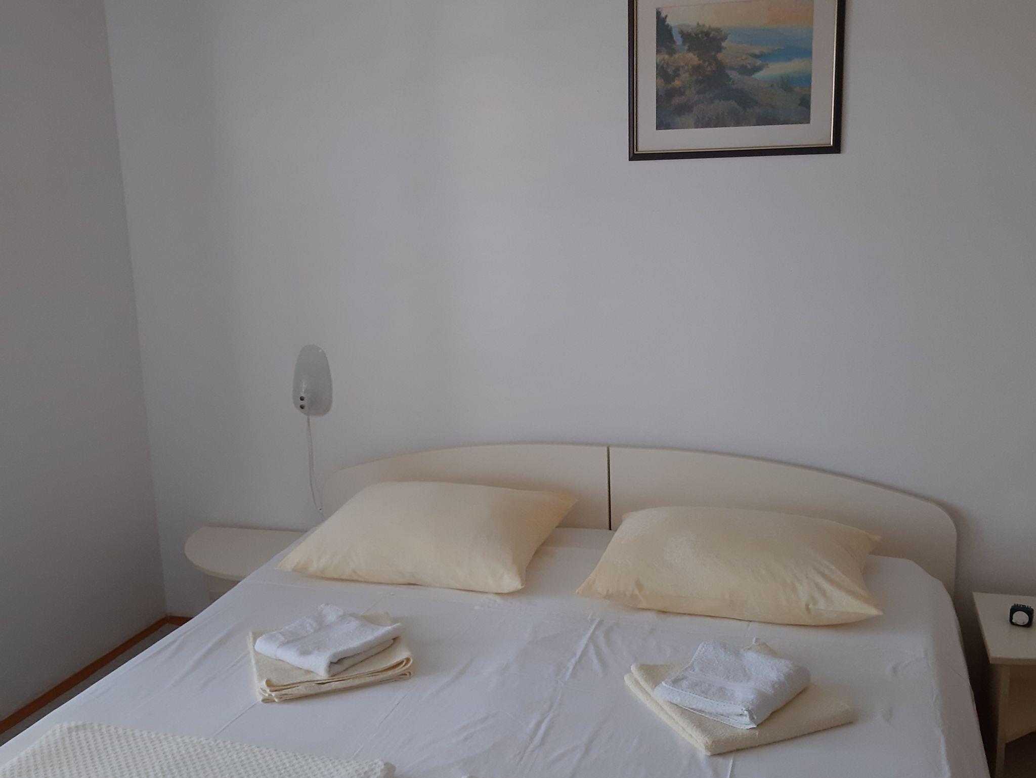 Ferienwohnung bietet Platz für 3 Gäste. Die Betten sind in Schlafzimmern, die es 1 gibt, innerhalb einer Gesamtfläche von 34m2, angeordnet. Die Gäste haben einen eigenen Balkon zur Verfügung, auf der sie in warmen Sommernächten genießen können. Das Apartment bietet Meerblick. Es ist erlaubt, Speisen auf dem Gemeinschafts-Grill vorzubereiten. IM PREIS INBEGRIFFEN: Kurtaxe, Endreinigung, Klimatisierung, Parkplatz, Internet, Bootsanlegeplatz, Bügeleisen, Bügelbrett, Föhn, tragbarer Grill, Sonnenschirm, Liegestühle. VERBINDLICHE ZUSÄTZLICHE KOSTEN: Aufzahlung für Kurzaufenthalte (prozentualer Zuschlag pro Nächtigungsanzahl: 30% - 1, 20% - 2, 10% - 3). Die Verfügbarkeit zusätzlicher Dienstleistungen in Ihrem reservierten Termin und die Preise derselben (falls nicht aufgeführt) müssen im Voraus überprüft werden. Zusätzliche Dienstleistungen die in der Zahlungsaufforderung nicht aufgeführt sind werden direkt beim Vermieter bezahlt, angenommen der Gast nutzt auch diese.