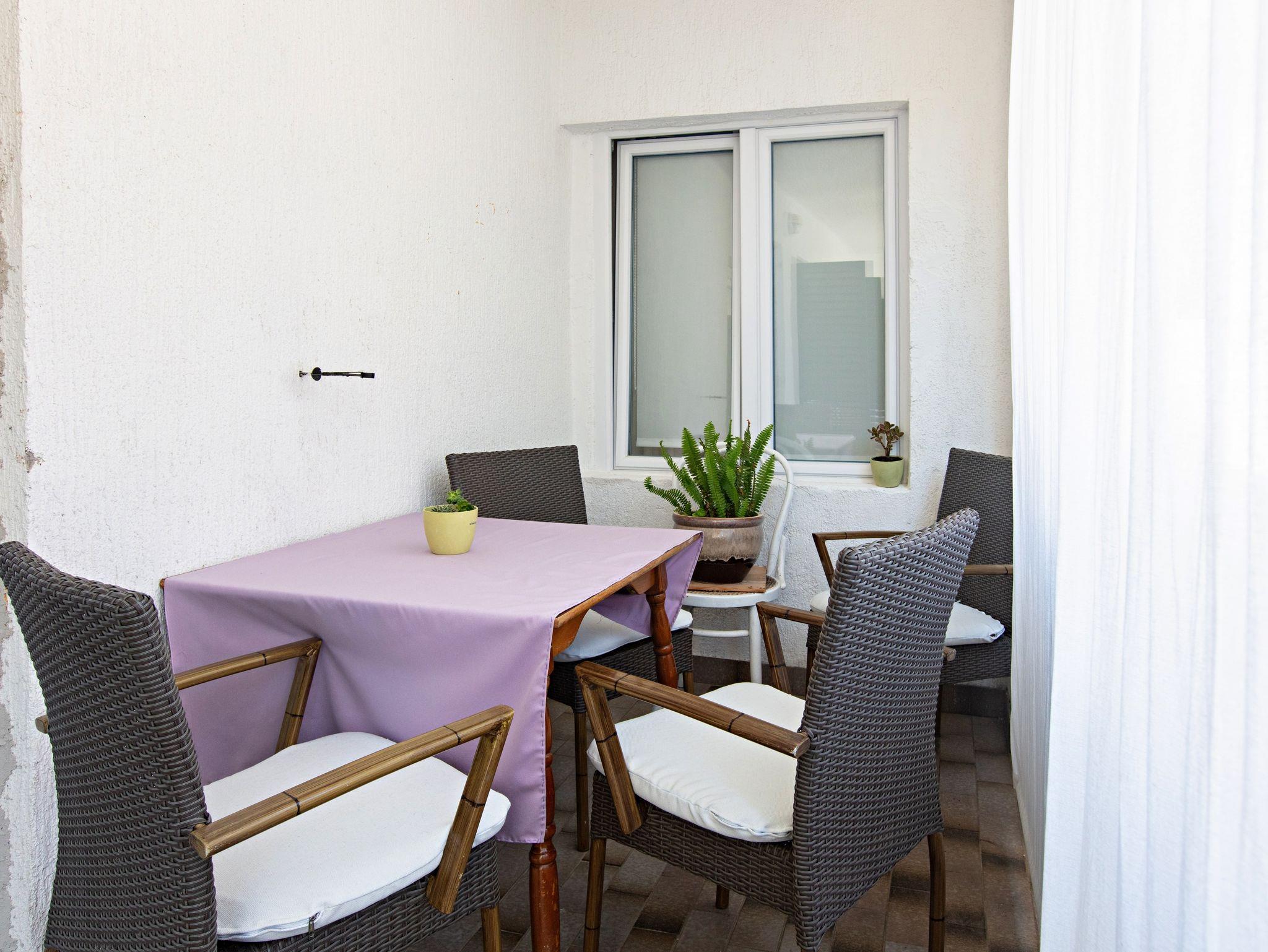 Ferienwohnung bietet Platz für 4 Gäste. Die Betten sind in Schlafzimmern, die es 2 gibt, innerhalb einer Gesamtfläche von 55m2, angeordnet. Die Gäste haben eine eigene Terrasse zur Verfügung, auf der sie in warmen Sommernächten genießen können. Es ist erlaubt, Speisen auf dem Gemeinschafts-Grill vorzubereiten. In der Unterkunftseinheit besteht die Möglichkeit des Mitbringens von Haustieren gegen Aufpreis. IM PREIS INBEGRIFFEN: Kurtaxe, Endreinigung, Klimatisierung, Internet, Kinderbett, Föhn. VERBINDLICHE ZUSÄTZLICHE KOSTEN: Aufzahlung für Kurzaufenthalte (prozentualer Zuschlag pro Nächtigungsanzahl: 30% - 1, 20% - 2, 10% - 3). UNVERBINDLICHE ZUSÄTZLICHE KOSTEN: Haustiere (5,00 € pro Nacht). Die Verfügbarkeit zusätzlicher Dienstleistungen in Ihrem reservierten Termin und die Preise derselben (falls nicht aufgeführt) müssen im Voraus überprüft werden. Zusätzliche Dienstleistungen die in der Zahlungsaufforderung nicht aufgeführt sind werden direkt beim Vermieter bezahlt, angenommen der Gast nutzt auch diese.