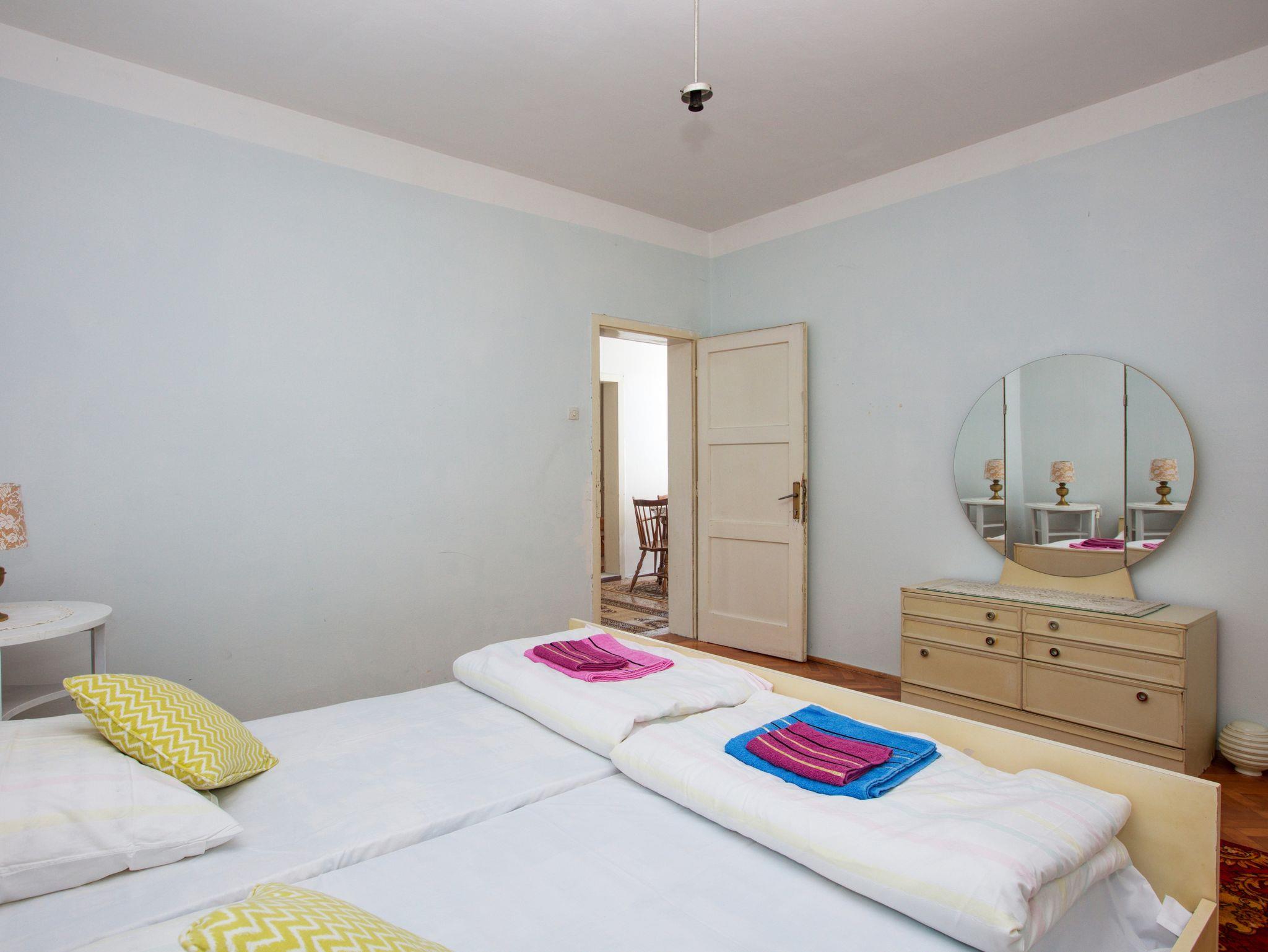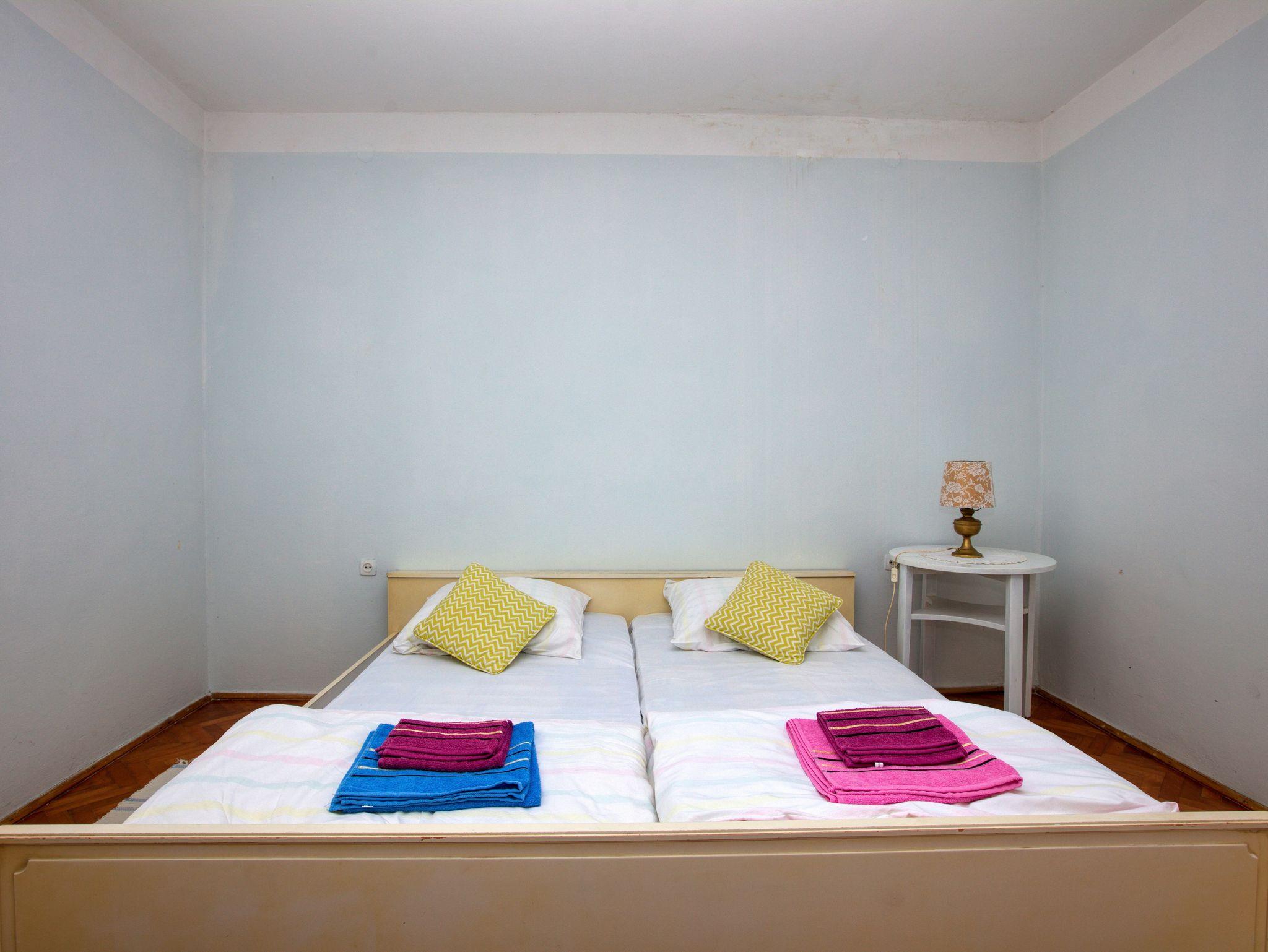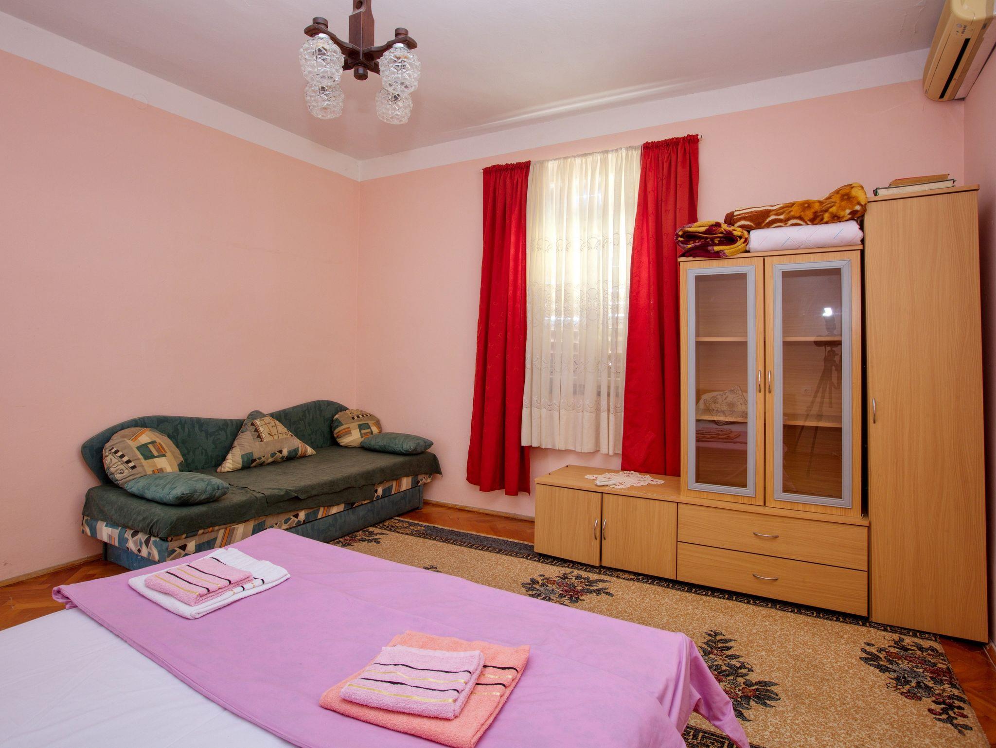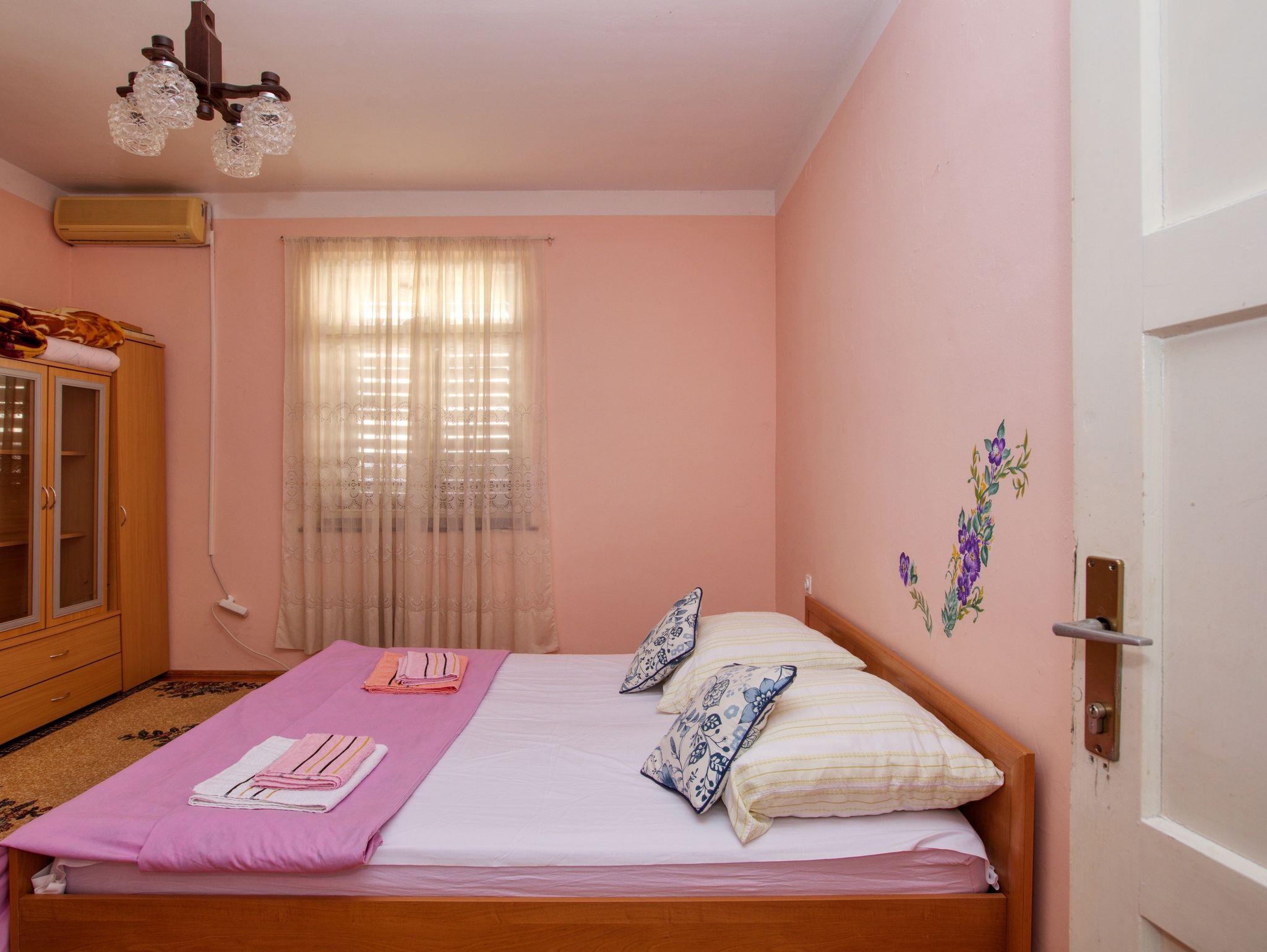 Ferienwohnung bietet Platz für 6 Gäste. Die Betten sind in Schlafzimmern, die es 3 gibt, innerhalb einer Gesamtfläche von 95m2, angeordnet. Die Gäste haben einen eigenen Balkon zur Verfügung, auf der sie in warmen Sommernächten genießen können. Für vollen Genuss und Entspannung gibt es einen privaten Grill für Gäste dieser Unterkunft. In der Unterkunftseinheit besteht die Möglichkeit des Mitbringens von Haustieren, und die Dienstleistung ist im Preis der Unterkunft enthalten. In der gebuchten Unterkunftseinheit zahlt man am Ort ein Depositum ( der Preis ist an der Internetseite angeführt ). IM PREIS INBEGRIFFEN: Kurtaxe, Endreinigung, Klimatisierung, Internet, Haustiere, Kinderbett, Bügeleisen, Bügelbrett, Föhn, 1 Bett für Kinder (im Preis enthalten). VERBINDLICHE ZUSÄTZLICHE KOSTEN: Kaution (150,00 € Einmalzahlung), Aufzahlung für Kurzaufenthalte (prozentualer Zuschlag pro Nächtigungsanzahl: 30% - 1, 20% - 2, 10% - 3). Die Verfügbarkeit zusätzlicher Dienstleistungen in Ihrem reservierten Termin und die Preise derselben (falls nicht aufgeführt) müssen im Voraus überprüft werden. Zusätzliche Dienstleistungen die in der Zahlungsaufforderung nicht aufgeführt sind werden direkt beim Vermieter bezahlt, angenommen der Gast nutzt auch diese. Ermäßigung auf den Grundpreis: Gratistag 14=13 (bei einem Aufenthalt von 14 Tagen oder mehr erhalten Sie einen Gratistag für den Aufenthalt bis 31.12.26).