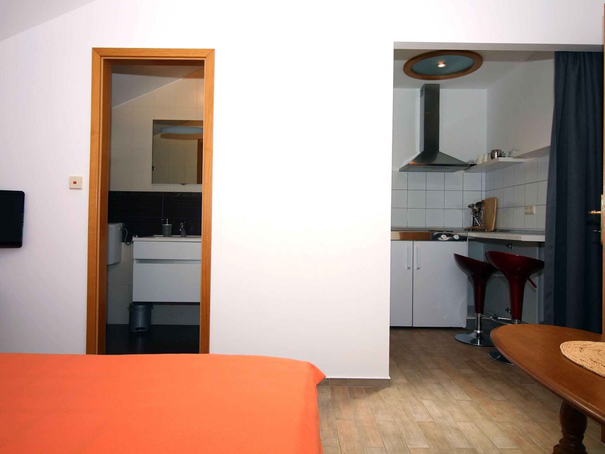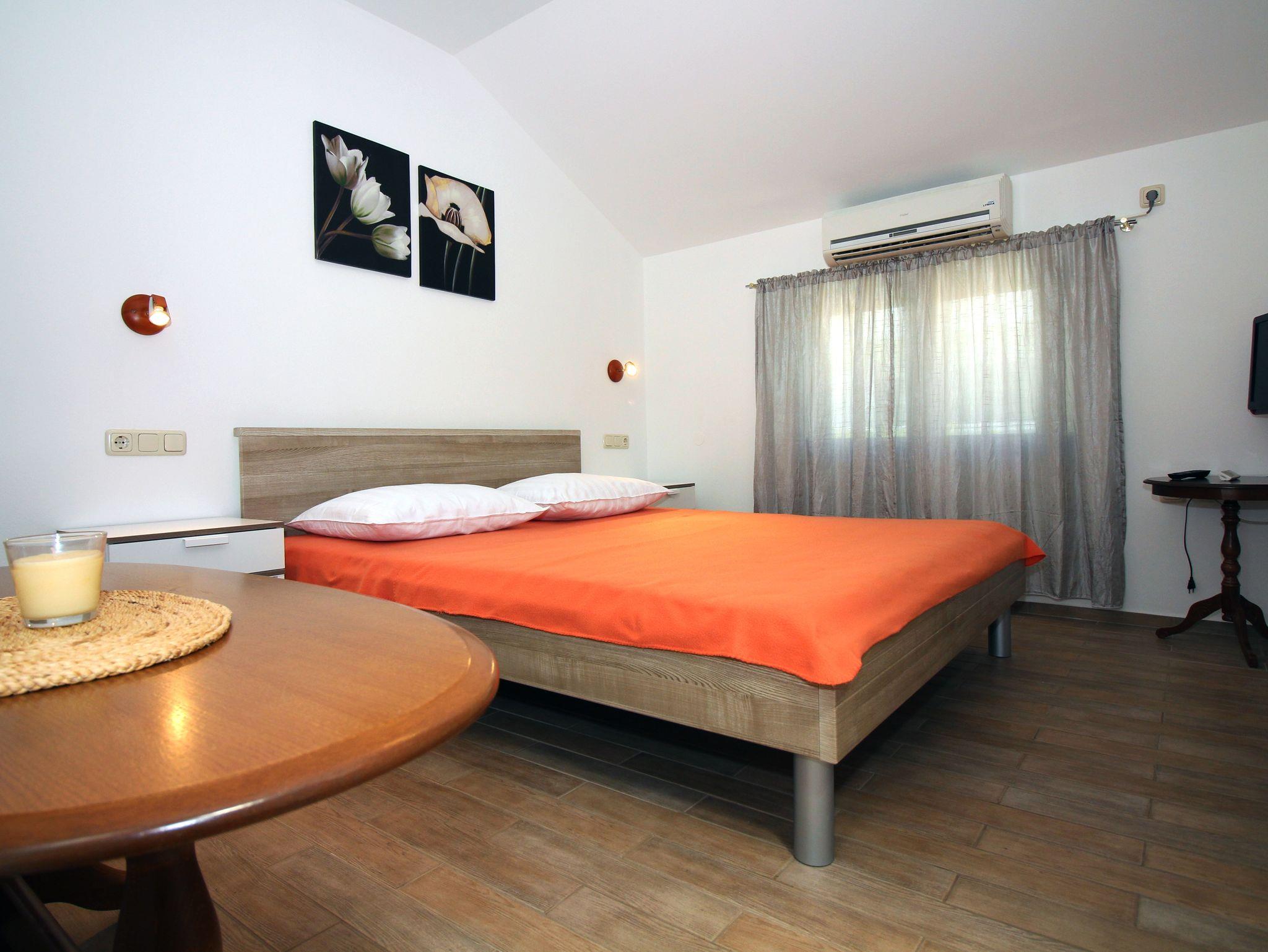 Studio bietet Platz für 2 Gäste. Die Betten sind in Schlafzimmern, die es 1 gibt, innerhalb einer Gesamtfläche von 19m2, angeordnet. Die Gäste haben einen eigenen Balkon zur Verfügung, auf der sie in warmen Sommernächten genießen können. Das Studio-Apartment bietet Meerblick. Es ist erlaubt, Speisen auf dem Gemeinschafts-Grill vorzubereiten. IM PREIS INBEGRIFFEN: Kurtaxe, Endreinigung, Klimatisierung, Parkplatz, Internet, Bootsanlegeplatz, Bügeleisen, Bügelbrett, Föhn, tragbarer Grill. VERBINDLICHE ZUSÄTZLICHE KOSTEN: Aufzahlung für Kurzaufenthalte (prozentualer Zuschlag pro Nächtigungsanzahl: 30% - 1, 20% - 2, 10% - 3). Die Verfügbarkeit zusätzlicher Dienstleistungen in Ihrem reservierten Termin und die Preise derselben (falls nicht aufgeführt) müssen im Voraus überprüft werden. Zusätzliche Dienstleistungen die in der Zahlungsaufforderung nicht aufgeführt sind werden direkt beim Vermieter bezahlt, angenommen der Gast nutzt auch diese. Ermäßigung auf den Grundpreis: Gratistag 28=25 (bei einem Aufenthalt von 28 oder mehr Tagen erhalten Sie 3 kostenlose Tage für den Aufenthalt bis 31.12.26).