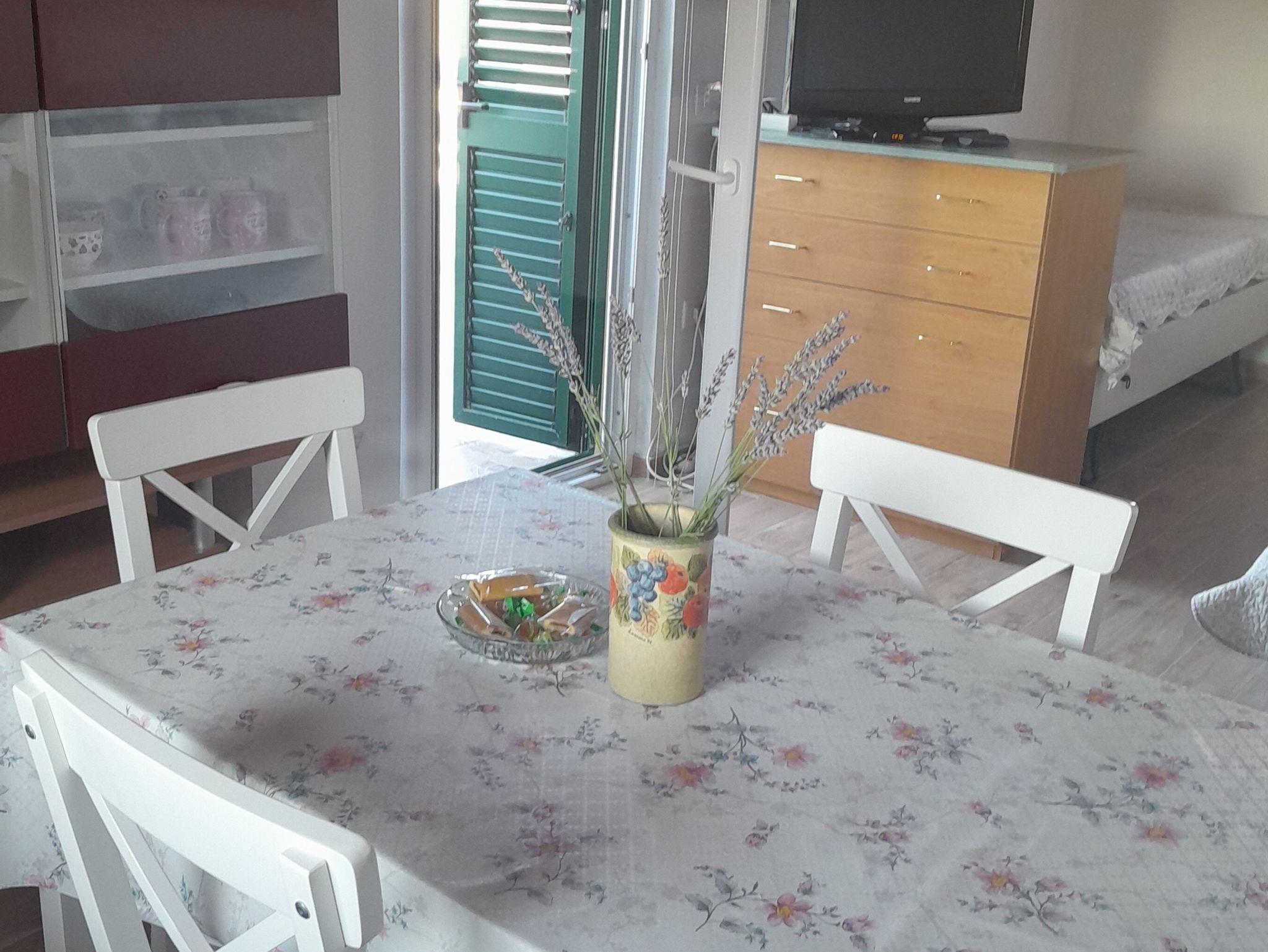 Ferienwohnung bietet Platz für 4 Gäste. Die Betten sind in Schlafzimmern, die es 1 gibt, und in Wohnzimmer, innerhalb einer Gesamtfläche von 33m2, angeordnet. Die Gäste haben eine eigene Terrasse zur Verfügung, auf der sie in warmen Sommernächten genießen können. Das Apartment bietet Meerblick. Es ist erlaubt, Speisen auf dem Gemeinschafts-Grill vorzubereiten. IM PREIS INBEGRIFFEN: Kurtaxe, Endreinigung, Klimatisierung, Zentralheizung, Parkplatz, Internet, Bügeleisen, Bügelbrett, Föhn. VERBINDLICHE ZUSÄTZLICHE KOSTEN: Aufzahlung für Kurzaufenthalte (prozentualer Zuschlag pro Nächtigungsanzahl: 30% - 1, 20% - 2, 10% - 3). Die Verfügbarkeit zusätzlicher Dienstleistungen in Ihrem reservierten Termin und die Preise derselben (falls nicht aufgeführt) müssen im Voraus überprüft werden. Zusätzliche Dienstleistungen die in der Zahlungsaufforderung nicht aufgeführt sind werden direkt beim Vermieter bezahlt, angenommen der Gast nutzt auch diese. Ermäßigung auf den Grundpreis: Gratistag 14=13 (bei einem Aufenthalt von 14 Tagen oder mehr erhalten Sie einen Gratistag für den Aufenthalt bis 31.12.26).